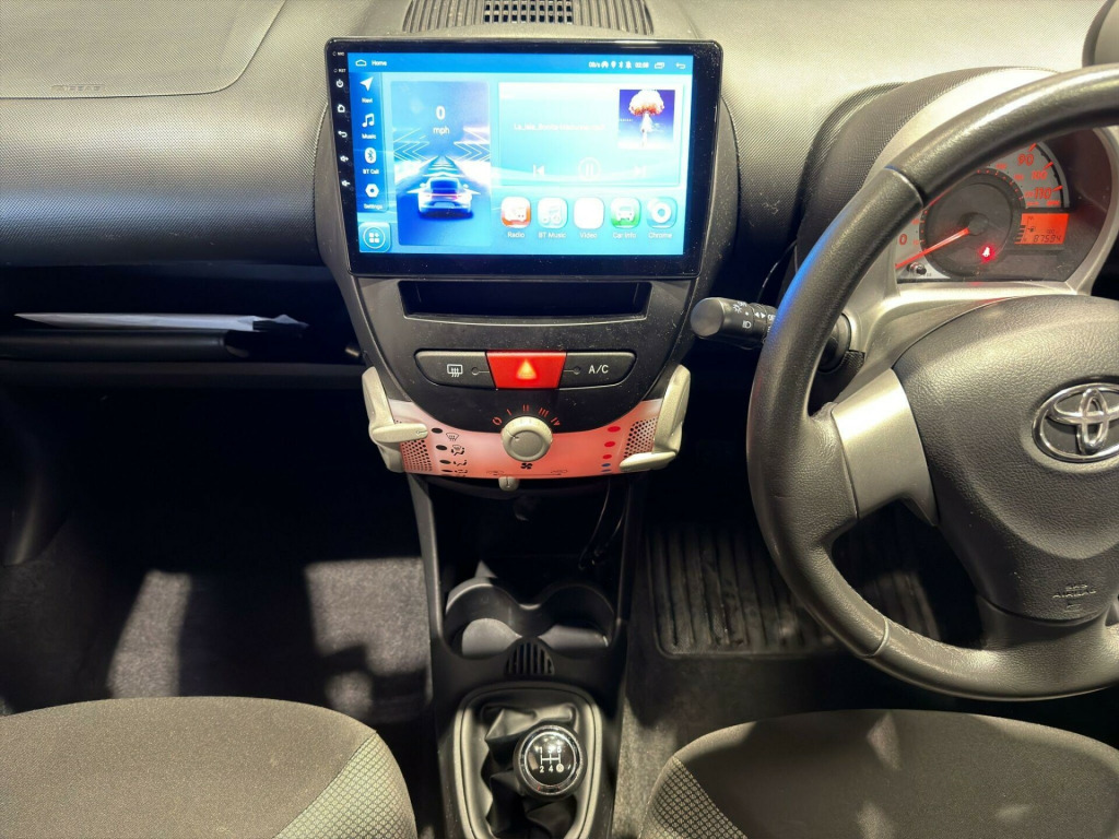 Proudly presenting our stunning Toyota Aygo, now available.This vehicle has been meticulously maintained since new, with full service history. Ensure peace of mind with our complementary warranty from our industry leading warranty partner. Key features and specification:- Cheap To Run And Insure- Only £20 A Year Road Tax- Full Service HistoryInterior Specification:- Upgraded Android Head Unit With CarPlay- Cloth Seats - Air ConditioningWith us, your new car undergoes a meticulous preparation process, including a three-stage hand wash, application of a protective hydrophobic coating. All of this only after our team have prepared and tested the vehicle mechanically and it's deemed ready for sale.Vehicle HistoryNone of our vehicles have any hidden stories. Enjoy peace of mind with a free HPI Check, providing you with a detailed history of your vehicle. Welcome to our Prestige AutoHaus. Setting a new standard for aftercare, we are always on hand to ensure your experience through your purchase is second to none.We offer Part exchange / Delivery / Finance / Payment by cash, bank transfer or crypto / Flexible viewings including evenings and more.Please call us on 07777 226687 chnology pack 1, xtraprotected pack, air conditioning, cloth - black, 14in alloy wheels - 6 spoke, 3-spoke leather steering wheel, abs - anti lock braking system, accessory power socket - front, air recirculation function, airbags - driver, airbags - front passenger, airbags - front passenger cut-off switch, body coloured door mirrors, bumpers - body coloured, csc - cornering stability control, child protection locks, cupholders - front, daytime running lights - led, digital clock, digital odometer with trip meter, door handles - body coloured, door inserts - moulded, doors - 3 position opening, driver and front passenger sun visors, ebd - electronic brakeforce distribution, electric windows - front, engine management warning, front fog lights, front grille - mesh effect, front wipers - twin speed and fixed intermittent, fuel indicator with low fuel warning, full size spare wheel, fully trimmed boot, glass - green tinted, headlights - electronic levelling, headrests - front intergrated, headrests - rear height adjustable, high mounted rear brake light, isofix child restraint system, interior light, leather gear shift knob, lights on warning, macpherson strut front suspension, oil maintenance warning light, power assisted steering - speed sensitive, rds with pty and eon settings, radio aerial - roof mounted, radio and cd player with aux in, rear door storage bins, rear parcel shelf - removable, rear pop out windows, rear privacy glass, rear storage bins, rear wipers - continual sweep, red tone rear light cluster, remote central locking, seat belt warning - driver, seats - 2 piece folding rear, seats - 50-50 split folding rear, seats - slide and recline adjustable drivers, seats - slide and recline adjustable front passengers, side impact beams, steering column - adjustable stepless tilt, steering column lock, steering wheel - leather, steering wheel 3-spoke with leather trim, storage - central console, storage bins - front doors, tachometer, torision beam rear suspension, transponder key engine immobiliser, vanity mirrors - driver and front passenger with cover, vehicle parts marking - major parts traceable to vin, water temperature indicator