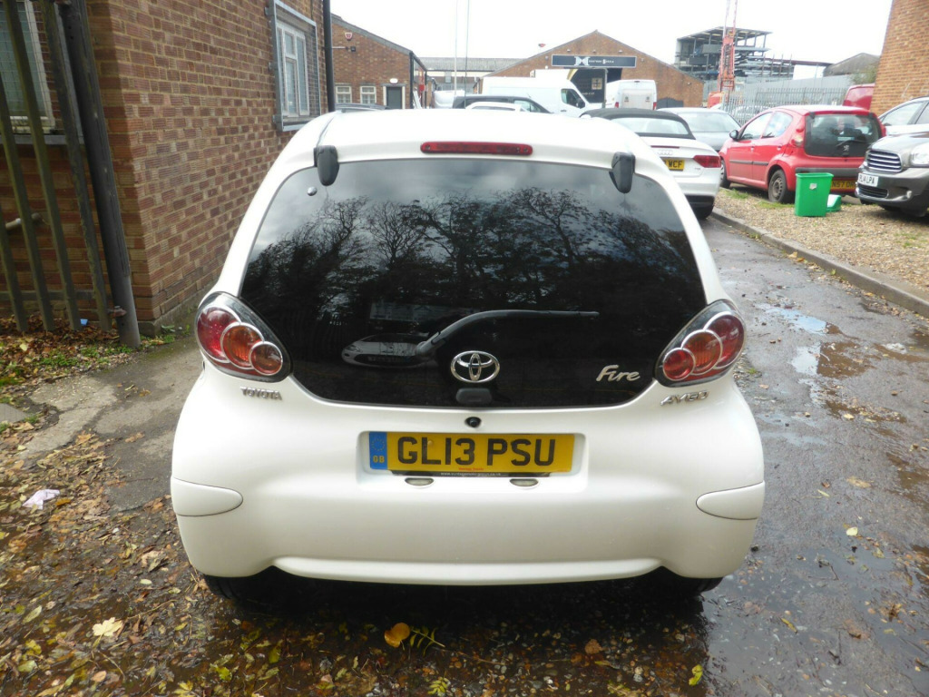 This 2013 Toyota AYGO 1.0 VVT-i Fire Euro 5 5dr Hatchback is currently available for £3,995 in Welwyn Garden City Hertfordshire with Petrol engine and Manual gearbox. For more information or to arrange a viewing, click here to send us an email using form below.