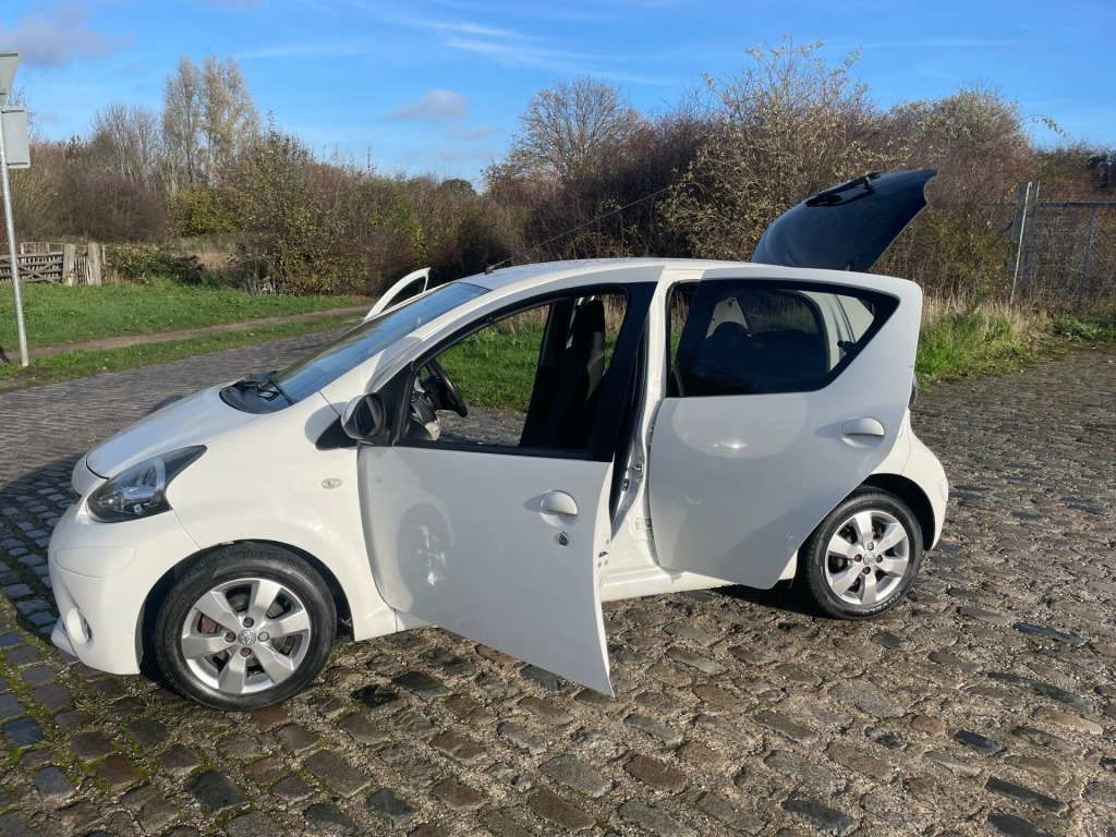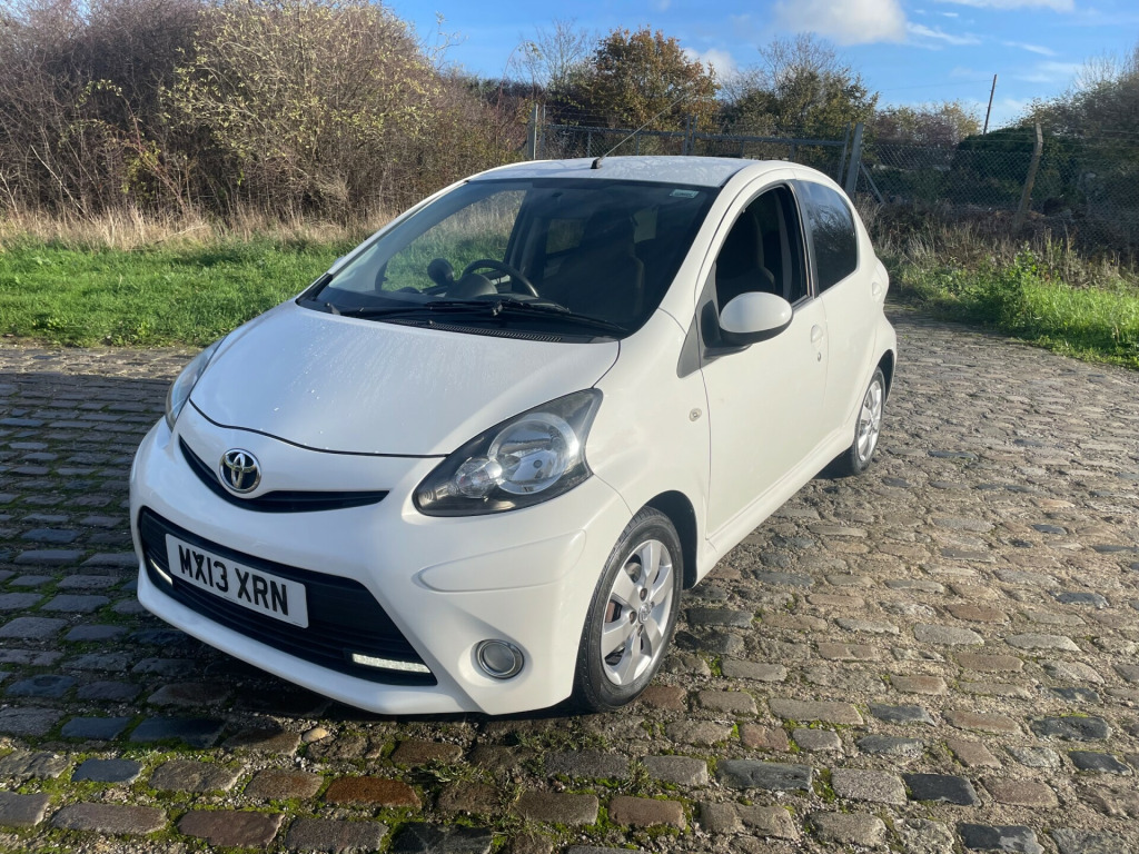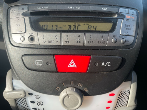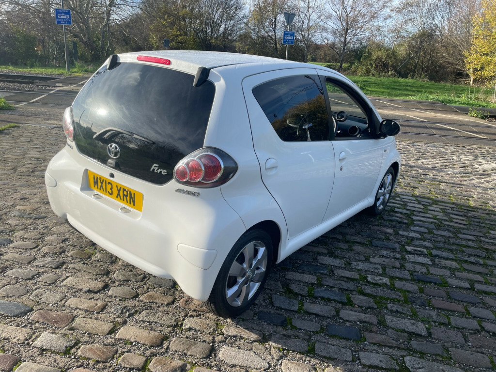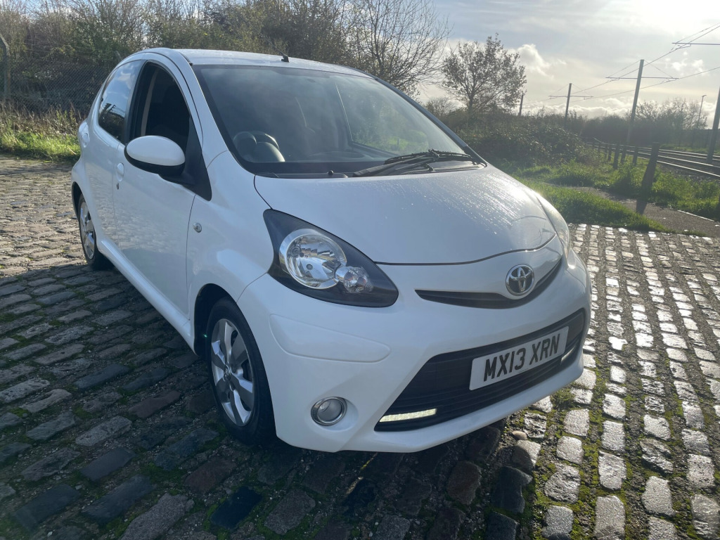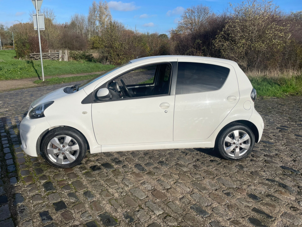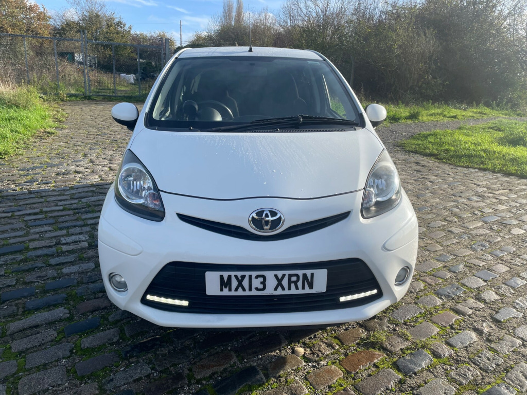 ULEZ Compliant - Low Insurance = Very Low Tax - 2013 Toyota Aygo 1.0 VVT-i Fire Hatchback with 58802 miles is a reliable and efficient choice for those in need of a city-friendly vehicle. Powered by a petrol engine with a manual transmission, this Euro 5 compliant car is ULEZ compliant, making it ideal for urban driving. With 4 seats and 5 doors, including features like 14in Alloy Wheels, Body Coloured Door Mirrors, and Bumpers, this hatchback offers both style and practicality. Its MOT is valid until 03/03/2026, providing peace of mind for the new owner. Whether navigating the city streets or hitting the open road, this Toyota Aygo is a versatile and dependable choice for any driver. Looked after by its current owner. Offered for sale in very good condition, serviced and MOT for 12 mths. For sale with parts and labour warranty 2 keys and full book pack. Finance in available. in alloy wheels - 6 spoke, body coloured door mirrors, bumpers - body coloured, door handles - body coloured, doors - 3 position opening, electric windows - front, front grille - mesh effect, full size spare wheel, glass - green tinted, rear pop out windows, rear privacy glass, rear wipers - continual sweep, red tone rear light cluster, 3-spoke leather steering wheel, air recirculation function, cupholders - front, digital clock, door inserts - moulded, driver and front passenger sun visors, front wipers - twin speed and fixed intermittent, fully trimmed boot, headrests - front intergrated, headrests - rear height adjustable, interior light, leather gear shift knob, rear door storage bins, rear parcel shelf - removable, rear storage bins, seats - 2 piece folding rear, seats - 50-50 split folding rear, seats - slide and recline adjustable drivers, seats - slide and recline adjustable front passengers, steering column - adjustable stepless tilt, steering wheel - leather, steering wheel 3-spoke with leather trim, storage - central console, storage bins - front doors, vanity mirrors - driver and front passenger with cover, abs - anti lock braking system, airbags - driver, airbags - front passenger, airbags - front passenger cut-off switch, csc - cornering stability control, child protection locks, ebd - electronic brakeforce distribution, isofix child restraint system, remote central locking, seat belt warning - driver, side impact beams, steering column lock, transponder key engine immobiliser, vehicle parts marking - major parts traceable to vin, accessory power socket - front, rds with pty and eon settings, radio aerial - roof mounted, radio and cd player with aux in, daytime running lights - led, front fog lights, headlights - electronic levelling, high mounted rear brake light, digital odometer with trip meter, engine management warning, fuel indicator with low fuel warning, lights on warning, macpherson strut front suspension, oil maintenance warning light, power assisted steering - speed sensitive, tachometer, torision beam rear suspension, water temperature indicator