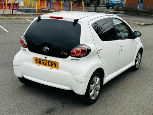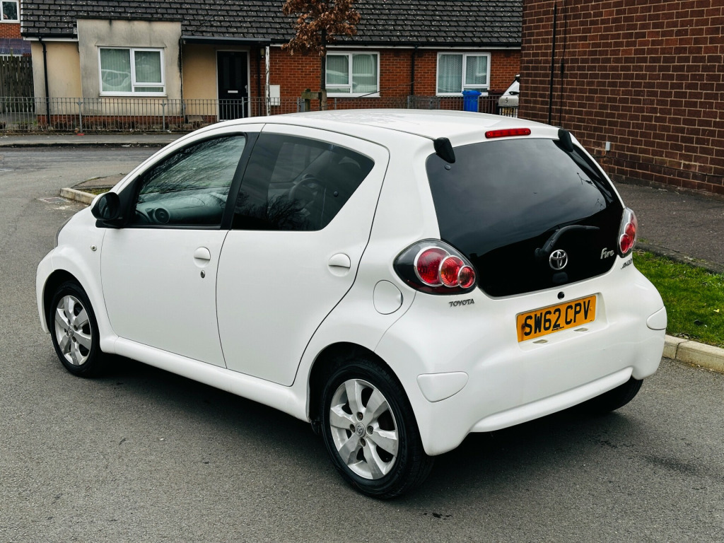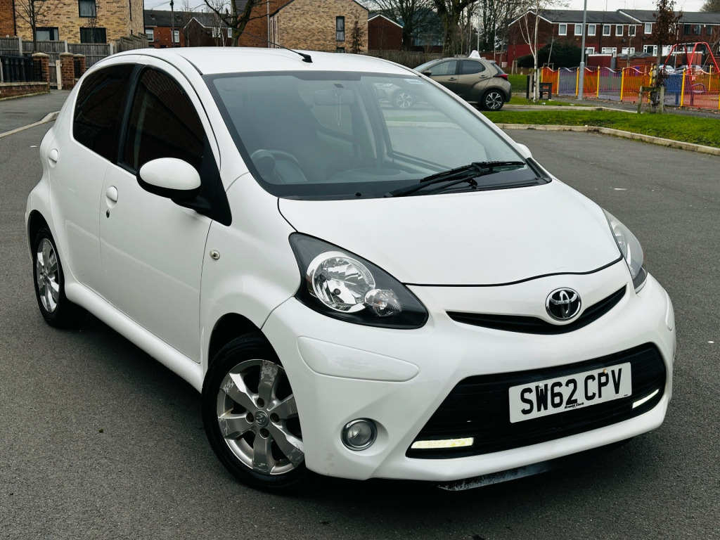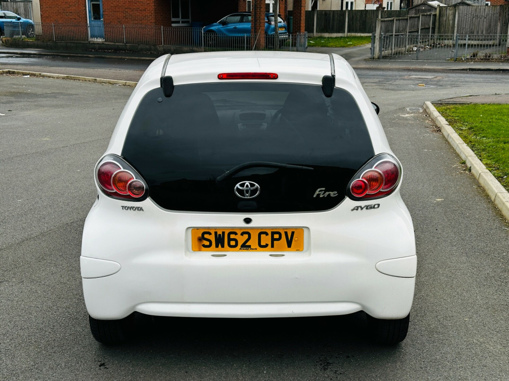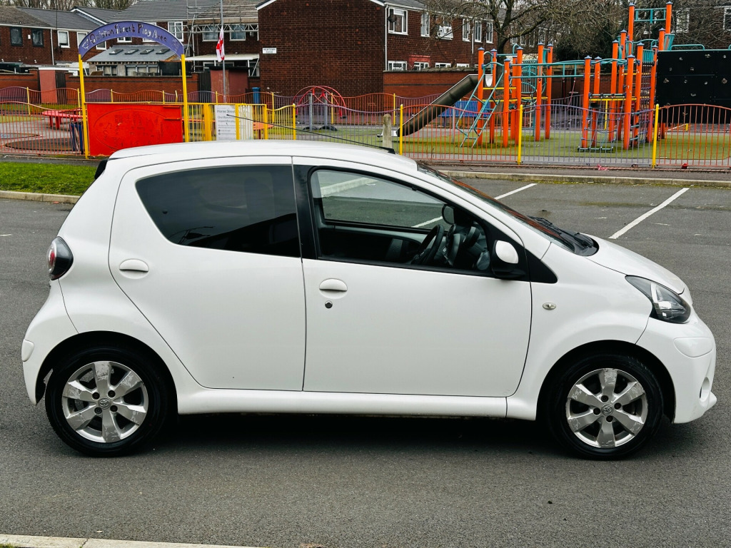 2012 Toyota Aygo 1.0 VVT-i Fire 48,200 Miles Full Service History ULEZ 2 OwnersReliance Autos Car are pleased to present this well-maintained 2012 Toyota Aygo 1.0 VVT-i Fire Hatchback, finished in excellent condition inside and out. With just 48,200 genuine miles and only 2 previous owners, this vehicle offers reliability, low running costs and practicality.Recently serviced, fully inspected, and supplied with a long MOT until 10/02/2027, this Aygo is ready to drive away with confidence.Vehicle Highlights:•Full Service History•MOT until 10/02/2027•2 Previous Owners•HPI Clear•2 Keys•ULEZ Compliant•3 Months Warranty (extendable up to 3 years)•Free delivery within 20 milesSpecification:•1.0 VVT-i Petrol Engine•Manual Transmission•5 Doors / 4 Seats•Excellent Fuel Economy•Low Insurance Group•14in Alloy Wheels•Body Coloured Door Mirrors and Bumpers•3 Position Opening Rear WindowsThis Toyota Aygo is an ideal choice for first-time drivers, city commuters or anyone looking for an economical and dependable hatchback with very low running costs.?Why Buy From Reliance Autos Car?All vehicles are carefully inspected prior to sale to ensure quality and reliability. We are committed to providing value, transparency and excellent customer service.What we offer:•Sales team available 7 days a week•Finance options available•All major debit and credit cards accepted•Part exchange welcome•Nationwide delivery available (free within 20 miles)Reliance Autos Car112 Clayton Lane, Openshaw, Manchester, M11 2AGCall or WhatsApp: 07836 242939Email: carsrelianceauto.co.ukContact us today to arrange a viewing or test drive. in alloy wheels - 6 spoke, body coloured door mirrors, bumpers - body coloured, door handles - body coloured, doors - 3 position opening, electric windows - front, front grille - mesh effect, full size spare wheel, glass - green tinted, rear pop out windows, rear privacy glass, rear wipers - continual sweep, red tone rear light cluster, 3-spoke leather steering wheel, air recirculation function, cupholders - front, digital clock, door inserts - moulded, driver and front passenger sun visors, front wipers - twin speed and fixed intermittent, fully trimmed boot, headrests - front intergrated, headrests - rear height adjustable, interior light, leather gear shift knob, rear door storage bins, rear parcel shelf - removable, rear storage bins, seats - 2 piece folding rear, seats - 50-50 split folding rear, seats - slide and recline adjustable drivers, seats - slide and recline adjustable front passengers, steering column - adjustable stepless tilt, steering wheel - leather, steering wheel 3-spoke with leather trim, storage - central console, storage bins - front doors, vanity mirrors - driver and front passenger with cover, abs - anti lock braking system, airbags - driver, airbags - front passenger, airbags - front passenger cut-off switch, csc - cornering stability control, child protection locks, ebd - electronic brakeforce distribution, isofix child restraint system, remote central locking, seat belt warning - driver, side impact beams, steering column lock, transponder key engine immobiliser, vehicle parts marking - major parts traceable to vin, accessory power socket - front, rds with pty and eon settings, radio aerial - roof mounted, radio and cd player with aux in, daytime running lights - led, front fog lights, headlights - electronic levelling, high mounted rear brake light, digital odometer with trip meter, engine management warning, fuel indicator with low fuel warning, lights on warning, macpherson strut front suspension, oil maintenance warning light, power assisted steering - speed sensitive, tachometer, torision beam rear suspension, water temperature indicator