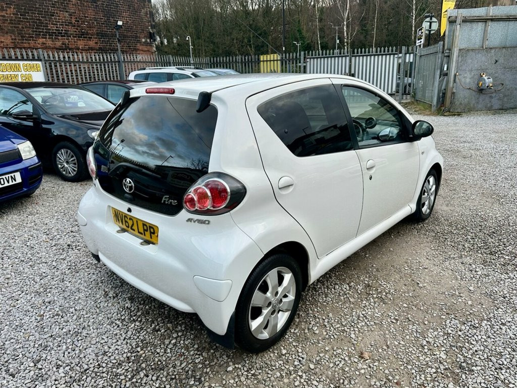 LPR MOTORS OF SHEFFIELD ARE EXCITED TO OFFER THE EVER POPULAR AND SOUGHT AFTER TOYOTA AYGO VVTI I FIRE A/C 998CC PETROL 5 DOOR HATCHBACK, LOW MILEAGE. FANTASTIC COLOUR COMBINATION, CIRRUS WHITE EXTERIOR WITH MESTIZO GREY CLOTH INTERIOR, LOW RUNNING COSTS WITH LOW INSURANCE AND £20 ROAD TAX WITH 2 KEYS PRESENT, IDEAL 1ST CAR OR FAMILY HATCHBACK, THE VEHICLE IS IN EXCELLENT CONDITION THROUGHOUT AS YOU CAN SEE FROM THE PHOTOS, VERY WELL MAINTAINED WITH LOTS OF INVOICES FOR ALL THE WORK CARRIED OUT OVER THE YEARS, SERVICE RECORD DOCUMENTED IN THE ORIGINAL SERVICE BOOK LAST SERVICED 18.12.2025 AT 76320 MILES, MOT 08.01.2027 WITH NO ADVISORY INFORMATION ALL TYRES IN GOOD ORDER. SO THE VEHICLE IS READY BTO DRIVE AWAY THE SAME DAY, FULLY HPI CLEAR ANY INSPECTION WELCOME, PLEASE CALL LPR MOTORS OF SHEFFIELD ON 0114 3273363 TO ARRANGE A VIEWING OR RESERVE, NEW ARRIVAL. 14in Alloy Wheels - 6 Spoke, 3-Spoke Leather Steering Wheel, ABS - Anti Lock Braking System, Accessory Power Socket - Front, Air Recirculation Function, Airbags - Driver, Airbags - Front Passenger, Airbags - Front Passenger Cut-Off Switch, Body Coloured Door Mirrors, Bumpers - Body Coloured, Child Protection Locks, CSC - Cornering Stability Control, Cupholders - Front, Daytime Running Lights - LED, Digital Clock, Digital Odometer with Trip Meter, Door Handles - Body Coloured, Door Inserts - Moulded, Doors - 3 Position Opening, Driver and Front Passenger Sun Visors, EBD - Electronic Brakeforce Distribution, Electric Windows - Front, Engine Management Warning, Front Fog Lights, Front Grille -