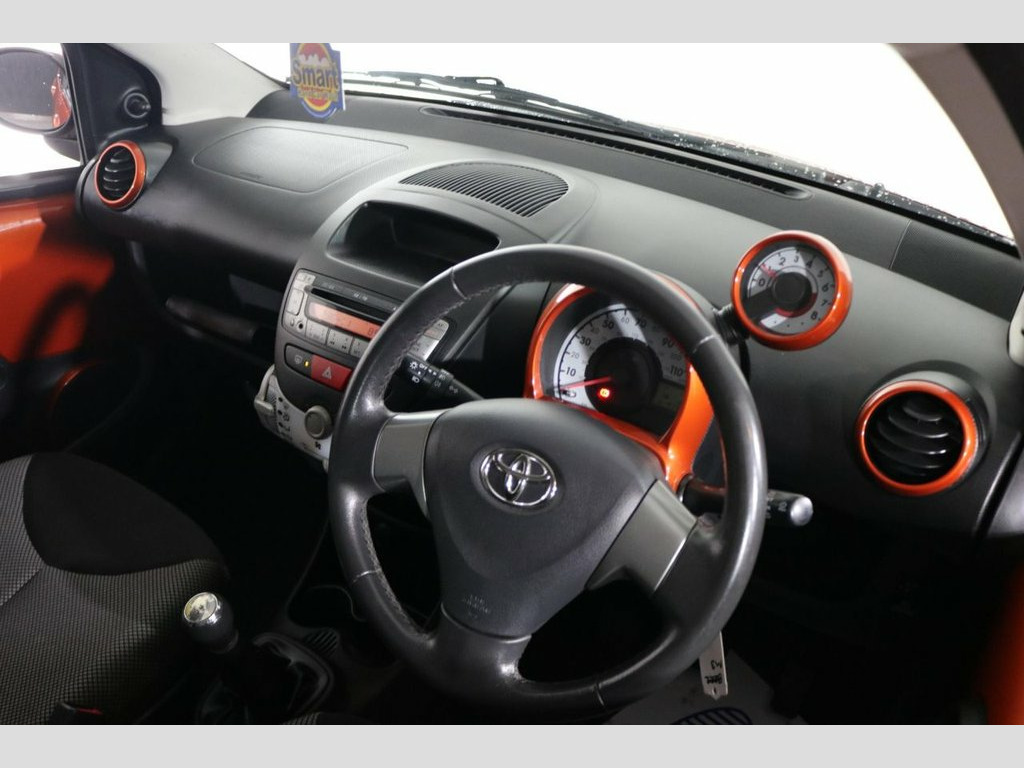 AWB Motors are pleased to present this stunning Toyota Aygo finished in Burnt Orange. Economical motoring being just £20 TAX, LOW INSURANCE GROUP and thanks to its Fuel Efficient Engine achieving 60+MPG. Perfect for listening to your favourite music either from your phone through the AUX port or simply using the CD Player. Drive in comfort whatever the weather with AIR CONDITIONING. Safe for your children with ISOFIX Anchorage Points. Other useful ancillaries include Electric Windows and Remote Central Locking. Buy with confidence as it has been maintained very well with Recent Service. 14in Alloy Wheels - 6 Spoke, 3-Spoke Leather Steering Wheel, ABS - Anti Lock Braking System, Accessory Power Socket - Front, Air Recirculation Function, Airbags - Driver, Airbags - Front Passenger, Airbags - Front Passenger Cut-Off Switch, Body Coloured Door Mirrors, Bumpers - Body Coloured, CSC - Cornering Stability Control, Child Protection Locks, Cupholders - Front, Daytime Running Lights - LED, Digital Clock, Digital Odometer with Trip Meter, Door Handles - Body Coloured, Door Inserts - Moulded, Doors - 3 Position Opening, Driver and Front Passenger Sun Visors, EBD - Electronic Brakeforce Distribution, Electric Windows - Front, Engine Management Warning, Front Fog Lights, Front Grille -