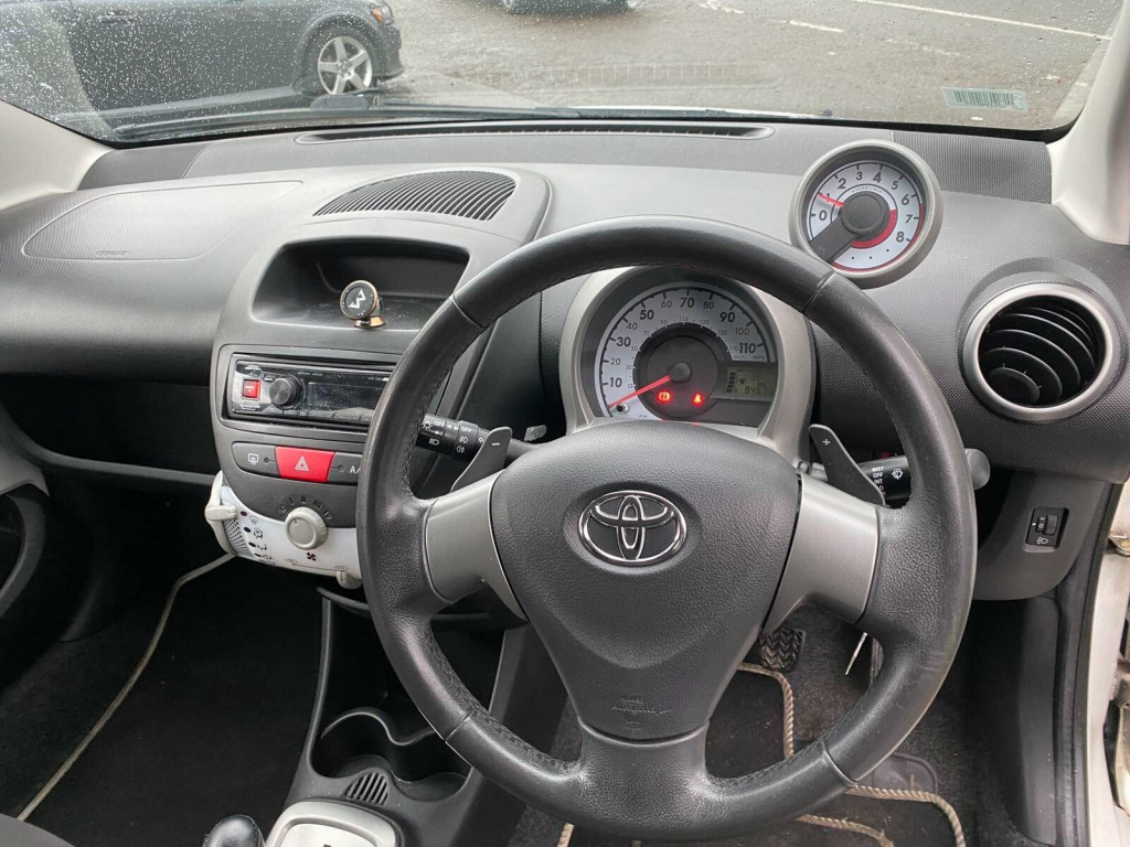 This 2012 Toyota AYGO VVT-i Fire is a remarkable find, having been cherished by just one owner from new and boasting a clear vehicle history check. This compact 1.0L petrol model, presented in the Fire trim, offers a comfortable interior featuring a console box with a sliding mechanism and a leather cover, alongside essential air conditioning to keep you cool. Its MOT is valid until June 2026, providing peace of mind for the road ahead, and it comes with partial service history.The AYGO VVT-i Fire stands out with its exceptional fuel economy, achieving an impressive 63 miles per gallon, which is significantly better than many other vehicles in its class. Furthermore, its low CO2 emissions and low insurance group rating make it an economical choice for everyday driving, contributing to lower running costs. This combination of efficiency, affordability, and careful ownership makes this AYGO a particularly attractive option. in alloy wheels - 6 spoke, 3-spoke leather steering wheel, abs - anti lock braking system, accessory power socket - front, air conditioning, air recirculation function, airbags - driver, airbags - front passenger, airbags - front passenger cut-off switch, body coloured door mirrors, bumpers - body coloured, csc - cornering stability control, child protection locks, console box sliding mechanism, console box with leather cover, cupholders - front, daytime running lights - led, digital clock, digital odometer with trip meter, door handles - body coloured, door inserts - moulded, doors - 3 position opening, driver and front passenger sun visors, ebd - electronic brakeforce distribution, electric windows - front, engine management warning, front grille - mesh effect, front wipers - twin speed and fixed intermittent, fuel indicator with low fuel warning, full size spare wheel, fully trimmed boot, glass - green tinted, headlights - electronic levelling, headrests - front intergrated, headrests - rear height adjustable, high mounted rear brake light, isofix child restraint system, interior light, leather gear shift knob, lights on warning, macpherson strut front suspension, oil maintenance warning light, power assisted steering - speed sensitive, rds with pty and eon settings, radio aerial - roof mounted, radio and cd player with aux in, rear door storage bins, rear parcel shelf - removable, rear pop out windows, rear privacy glass, rear storage bins, rear wipers - continual sweep, red tone rear light cluster, remote central locking, seat belt warning - driver, seats - 2 piece folding rear, seats - 50-50 split folding rear, seats - slide and recline adjustable drivers, seats - slide and recline adjustable front passengers, side impact beams, steering column - adjustable stepless tilt, steering column lock, steering wheel 3-spoke with leather trim, storage - central console, storage bins - front doors, torision beam rear suspension, transponder key engine immobiliser, vanity mirrors - driver and front passenger with cover, vehicle parts marking - major parts traceable to vin, water temperature indicator, technology pack 1