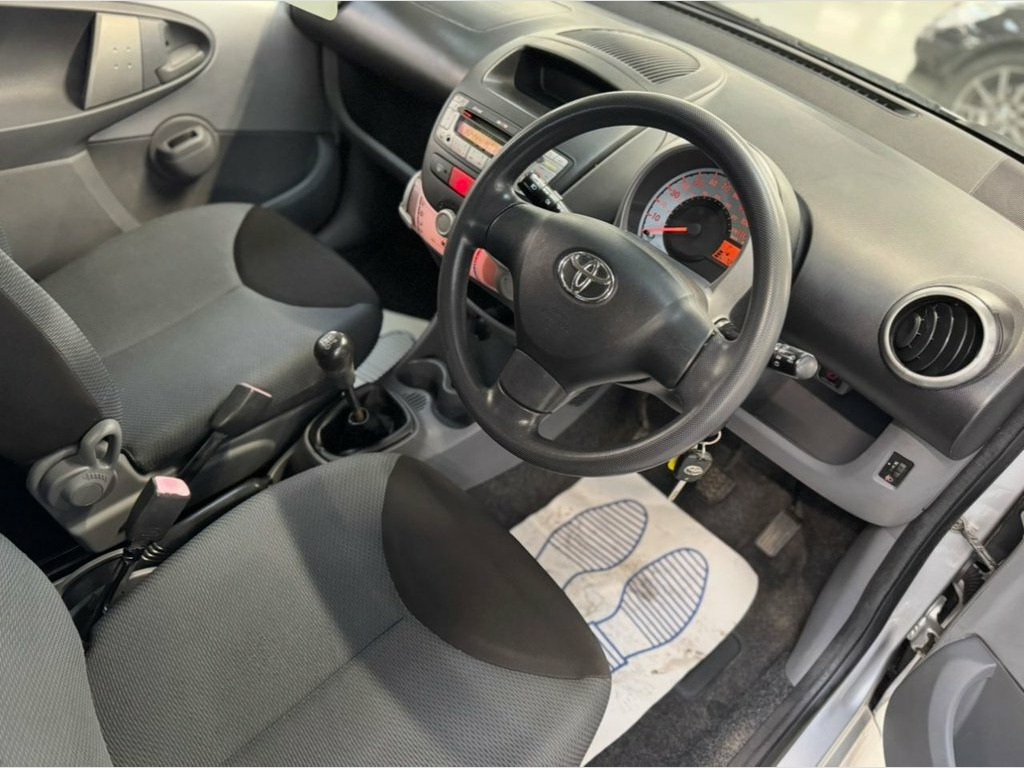 EXCELLENT CONDITION, 2 KEYS, FULL HPI CLEAR, FULL SERVICE HISTORY, MOT TILL 28/11/2026, ULEZ FREE, CHEAP TO RUN - MEDIA CONNECTIVITY, CD PLAYER/PHONE/RADIO/USB, ONBOARD TRIP COMPUTER, ELECTRIC WINDOWS, (AC) AIR CON, TOYOTA INTELLIGENT SAFETY, PREMIUM WHEELS, PREMIUM TYRES, ECO DYNAMICS. READY TO GO! 128 POINT CHECK, INSPECTED & APPROVED, NATIONWIDE HOME DELIVERY AVAILABLE. LOW RATE FINANCE AVAILABLE! PART EXCHANGE WELCOME, SAME DAY DRIVE AWAY. ALL MAJOR CARDS ACCEPTED, READY TO DRIVE AWAY NOW! INDOOR SHOWROOM, EST 1974, CAFE ON SITE. FULL WARRANTY PROVIDED ON ALL CARS FOR YOUR COMPLETE PEACE OF MIND! Crystal Silver, Paint- Metallic, Vehicle Stability Control & Curtain , Air Conditioning, AYGO customised Pack, AYGO Style Pack, AYGO Protected Pack, Aygo Xtra Protected Pack, 14in Steel Wheels