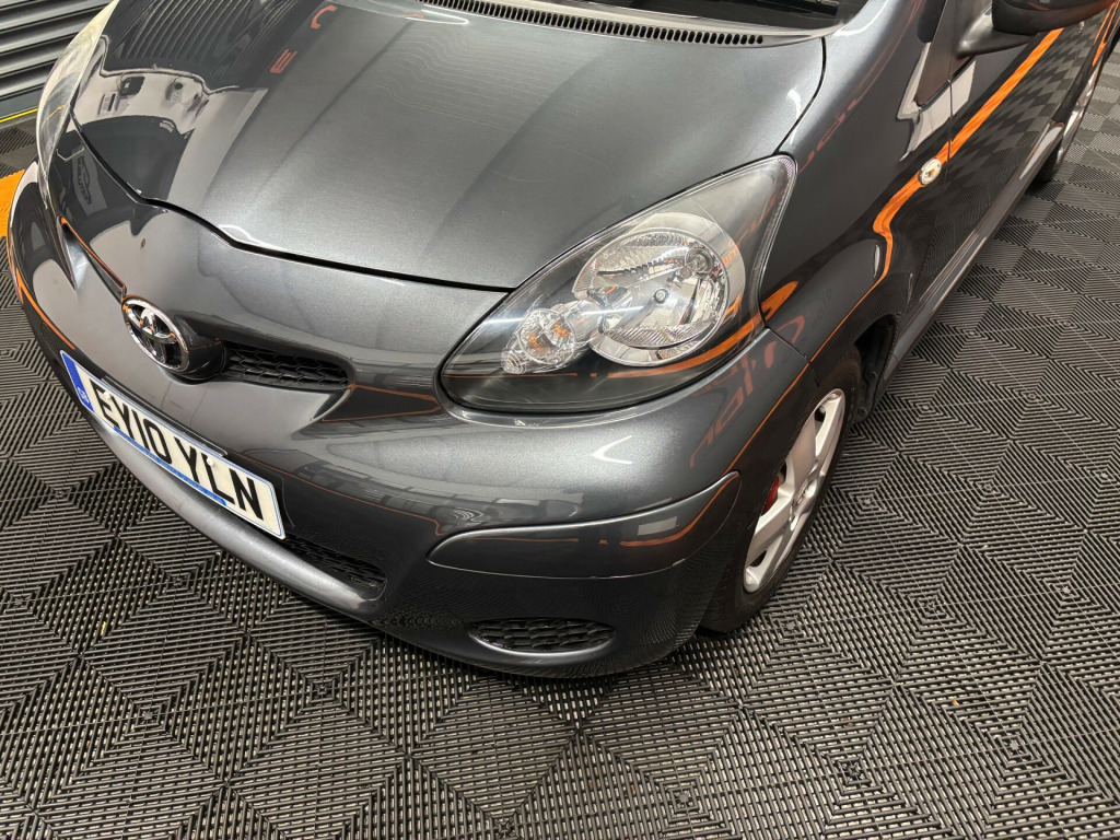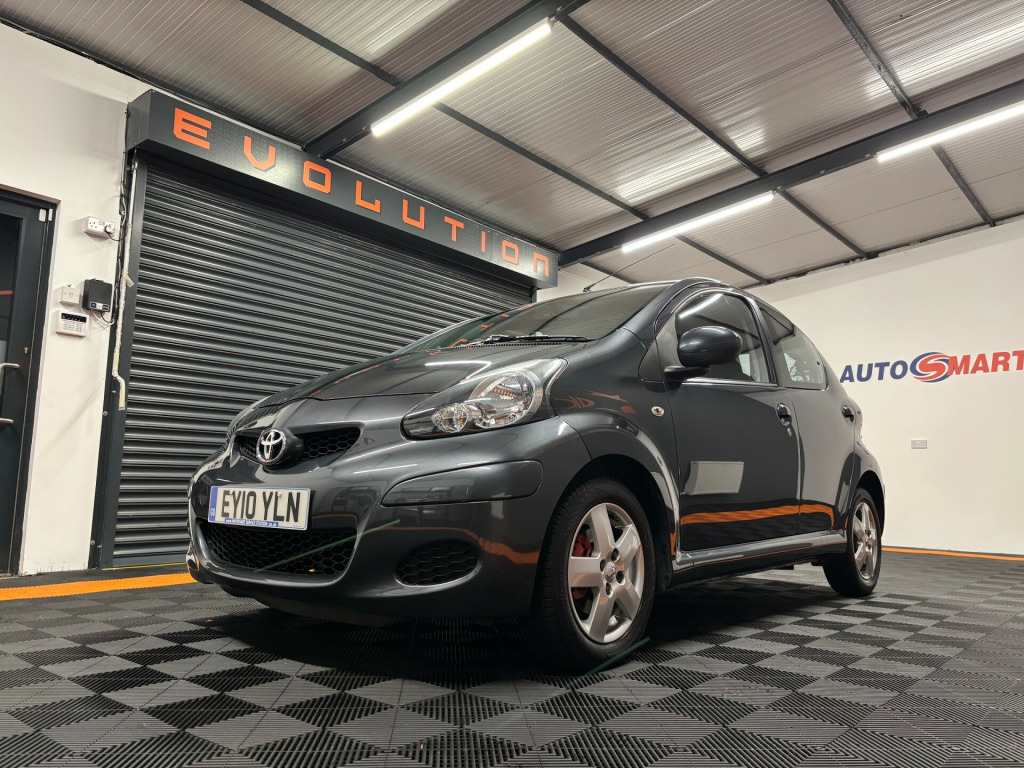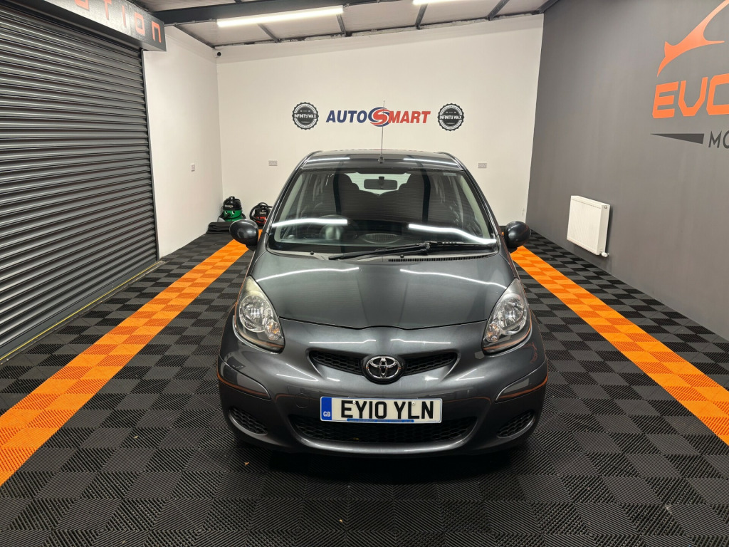 Toyota Aygo 1.0 VVT-i + MMT Automatic 5dr Hatchback.. Registered - 01/03/2010 (10-reg).. 29,000 miles.. Full service history (12 x service stamps).. Just serviced - September 2025.. MOT - September 2026.. 1 year MOT - no advisories.. 1 former keeper from new.. 3 x keys.. HPI clear with full print-out.. 1 owner from new.. 14 inch alloys - fitted with great tyres all round.. Air conditioning.. Full size spare wheel with tool kit.. AUX input.. Factory fitted CD player.. Grade 2 - immaculate condition inside and out (very scarce).. Great little automatic hatchback with extremely low running costs.. Only £20 per year road tax.. Ideal first car or city hatchback..