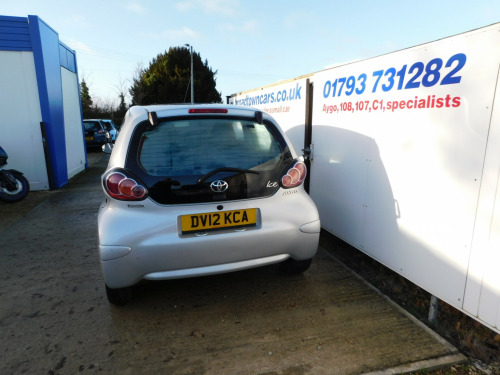 This 2012 Toyota AYGO 1.0 VVT-i Ice Hatchback is currently available for £6,199 in Swindon Wiltshire with Petrol engine and Auto Clutch Manual gearbox. For more information or to arrange a viewing, click here to send us an email using form below.