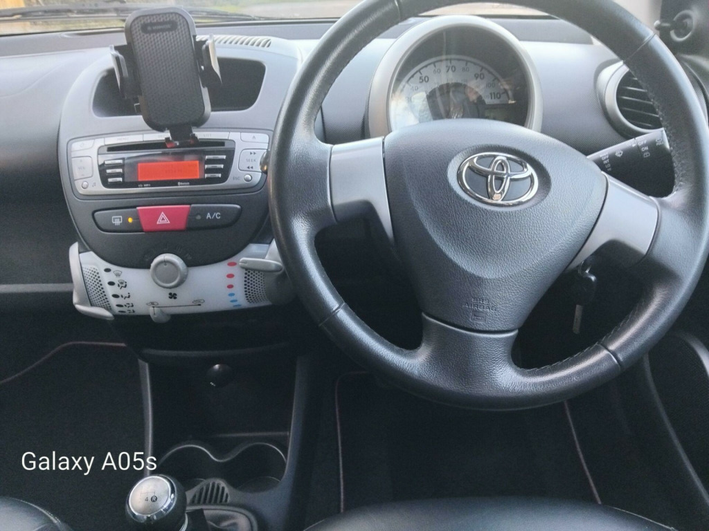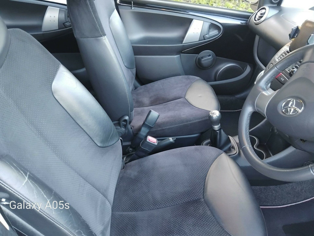 Into stock highly popular sought after Toyota Aygo in satin black with lovely low miles only 52000 miles with full service history, has a brand new mot no advisory This lovely Aygo 5 door is in excellent condition throughout freshly valeted!IT provides a quiet smooth really economical faultless drive and with only 20 pounds a year tax to help with the economy!Hpi clear,3mnths warranty,finance available and we provide an excellent after service,and finally why not look at our great company reviews for final peace of mind!All viewings by appointment only and you won't be disappointed when you do!Great price as confirmed by Auto trader! cantara and leather - dark grey, 3-spoke leather steering wheel, abs - anti lock braking system, accessory power socket - front, air conditioning, air recirculation function, airbags - driver, airbags - front passenger, airbags - front passenger cut-off switch, bluetooth connectivity, body coloured door mirrors, bumpers - body coloured, csc - cornering stability control, child protection locks, cupholders - front, dab ready, daytime running lights - led, digital clock, digital odometer with trip meter, door handles - body coloured, door inserts - moulded, doors - 3 position opening, driver and front passenger sun visors, ebd - electronic brakeforce distribution, electric windows - front, engine management warning, enhanced 4 speaker audio system, front grille - mesh effect, front wipers - twin speed and fixed intermittent, fuel indicator with low fuel warning, full size spare wheel, fully trimmed boot, glass - green tinted, headlights - electronic levelling, headrests - front intergrated, headrests - rear height adjustable, high mounted rear brake light, isofix child restraint system, interior light, leather gear shift knob, lights on warning, macpherson strut front suspension, oil maintenance warning light, power assisted steering - speed sensitive, rds with pty and eon settings, radio aerial - roof mounted, radio and cd player with aux in, rear door storage bins, rear parcel shelf - removable, rear pop out windows, rear storage bins, rear wipers - continual sweep, red tone rear light cluster, remote central locking, seat belt warning - driver, seats - 2 piece folding rear, seats - 50-50 split folding rear, seats - slide and recline adjustable drivers, seats - slide and recline adjustable front passengers, side impact beams, steering column - adjustable stepless tilt, steering column lock, steering wheel 3-spoke with leather trim, storage - central console, storage bins - front doors, torision beam rear suspension, transponder key engine immobiliser, usb connection, vanity mirrors - driver and front passenger with cover, vehicle parts marking - major parts traceable to vin, water temperature indicator