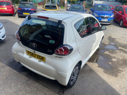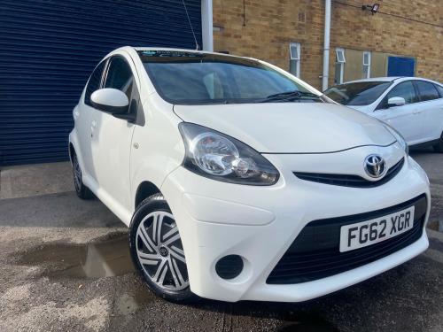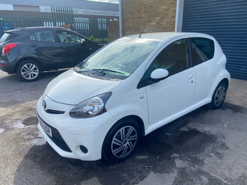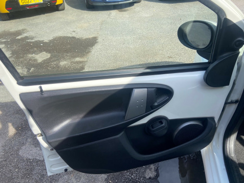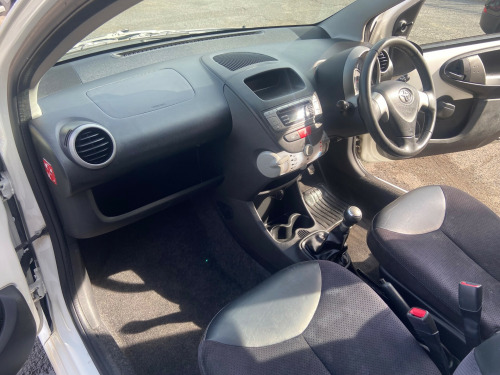 This 2012 Toyota Aygo 1.0 VVT-i Ice Hatchback has covered 100000 miles and runs on petrol, with an MOT valid until 19/10/2025. With 4 seats and 5 doors, this hatchback is ULEZ compliant, making it ideal for city driving. Features include a 3-Spoke Leather Steering Wheel, Air Conditioning, Air Recirculation Function, Cupholders at the front, and a Digital Clock. Powered by a Euro 5 engine delivering 67 ps, this manual vehicle offers efficiency and practicality in a stylish package.. 12 months MOT. Service History, last at 09/2025. 2 Previous Owners. 2 Keys. HPI clear spoke leather steering wheel, air conditioning, air recirculation function, cupholders - front, digital clock, door inserts - moulded, driver and front passenger sun visors, front wipers - twin speed and fixed intermittent, fully trimmed boot, headrests - front intergrated, headrests - rear height adjustable, interior light, leather gear shift knob, rear door storage bins, rear parcel shelf - removable, rear storage bins, seats - 2 piece folding rear, seats - 50-50 split folding rear, seats - slide and recline adjustable drivers, seats - slide and recline adjustable front passengers, steering column - adjustable stepless tilt, steering wheel 3-spoke with leather trim, storage - central console, storage bins - front doors, vanity mirrors - driver and front passenger with cover, abs - anti lock braking system, airbags - driver, airbags - front passenger, airbags - front passenger cut-off switch, csc - cornering stability control, child protection locks, ebd - electronic brakeforce distribution, isofix child restraint system, remote central locking, seat belt warning - driver, side impact beams, steering column lock, transponder key engine immobiliser, vehicle parts marking - major parts traceable to vin, accessory power socket - front, bluetooth connectivity, dab ready, enhanced 4 speaker audio system, rds with pty and eon settings, radio aerial - roof mounted, radio and cd player with aux in, usb connection, body coloured door mirrors, bumpers - body coloured, door handles - body coloured, doors - 3 position opening, electric windows - front, front grille - mesh effect, full size spare wheel, glass - green tinted, rear pop out windows, rear wipers - continual sweep, red tone rear light cluster, daytime running lights - led, headlights - electronic levelling, high mounted rear brake light, digital odometer with trip meter, engine management warning, fuel indicator with low fuel warning, lights on warning, macpherson strut front suspension, oil maintenance warning light, power assisted steering - speed sensitive, torision beam rear suspension, water temperature indicator