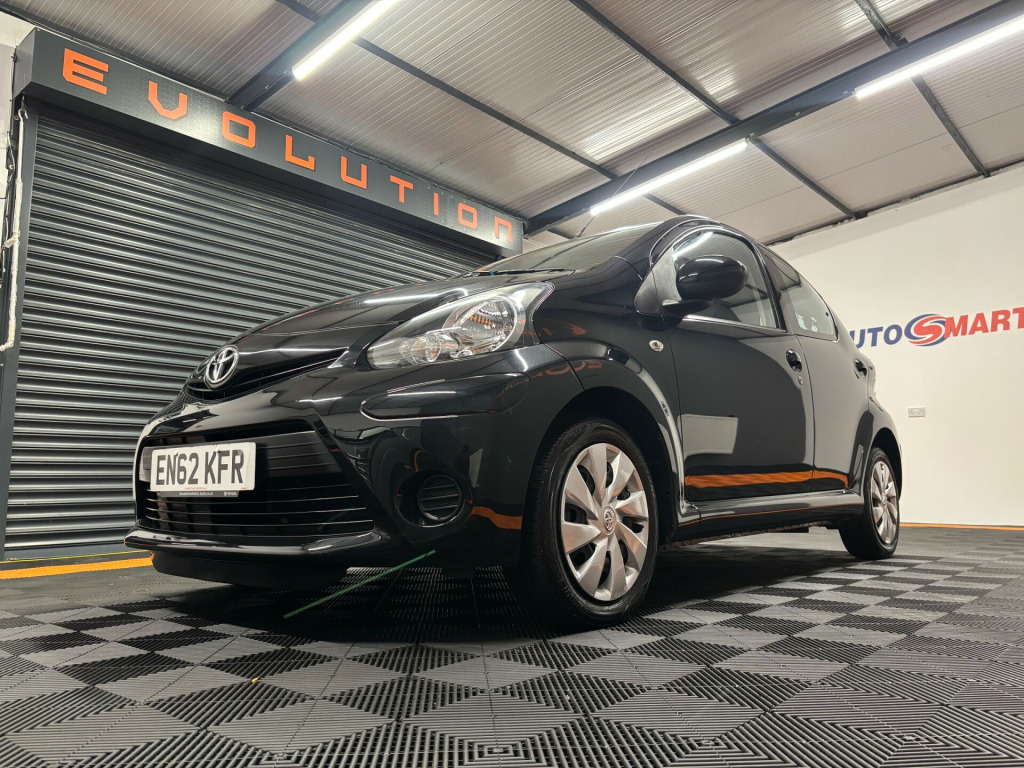 Toyota Aygo 1.0 VVT-i Ice 5dr Hatchback.. Registered - 16/02/2013 (62-reg).. Only 12,000 miles (warranted mileage - guaranteed with HPI certificate).. Full Toyota main dealer service records with no expense spared (11 x Toyota service stamps).. Just serviced - November 2025.. MOT - November 2026.. 1 year MOT - no advisories.. Very clean MOT history.. 1 former keeper from new.. 2 x keys.. Half leather interior.. Air conditioning.. Bluetooth.. Factory fitted CD player with AUX input.. Grade 2 - immaculate condition.. HPI clear with print-out.. Full detailed valet has been carried out.. Power assisted steering.. ABS.. Alarm / central locking.. Electric windows.. Full size spare wheel.. Ideal little city car with extremely low running costs - would suit first time drivers.. Only £20 per year road tax.. Lowest insurance group.. 70+ MPG.. Sourced from London for extreme quality - underside is like new with no corrosion.. Grade 2 condition similar to a 2024 plate Scottish car (very important to future MOT tests).. Super reliable little car.. Outstanding inside and out.. Up to 2 years warranty available with the UK's best award winning warranty company.. FINANCE AVAILABLE..