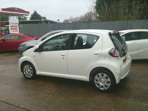 Wow fantastic little Auto just arrived, group 3 insurance, figures of 70 mpg on a run and £20 road tax, This 2013 Toyota AYGO VVT-i Ice presents an exceptional opportunity with its remarkably low mileage of just 42,860 miles. very low running cost make it even more attractive ! only group 3 insurance, fantastic on fuel and of course This compact 1.0L petrol model, in its Ice trim, offers a blend of practicality and comfort. It comes equipped with essential features such as Air Conditioning to keep you cool and Bluetooth Connectivity for seamless handsfree calls and music streaming on the go.The AYGO VVT-i Ice stands out with its impressive fuel economy, achieving an outstanding 63 miles per gallon, which is significantly better than many other vehicles in its class. Furthermore, its low CO2 emissions and low insurance group rating indicate that running costs are kept to a minimum, making it an economical and sensible choice for everyday driving.1411mo. 3-Spoke Leather Steering Wheel, ABS - Anti Lock Braking System, Accessory Power Socket - Front, Air Conditioning, Air Recirculation Function, Airbags - Driver, Airbags - Front Passenger, Airbags - Front Passenger Cut-Off Switch, Bluetooth Connectivity, Body Coloured Door Mirrors, Bumpers - Body Coloured, CSC - Cornering Stability Control, Child Protection Locks, Console Box Sliding Mechanism, Console Box with Leather Cover, Cupholders - Front, DAB Ready, Daytime Running Lights - LED, Digital Clock, Digital Odometer with Trip Meter, Door Handles - Body Coloured, Door Inserts - Moulded, Doors - 3 Position Opening, Driver and Front Passenger Sun Visors, EBD - Electronic Brakeforce Distribution, Electric Windows - Front, Engine Management Warning, Enhanced 4 Speaker Audio System, Front Grille - Mesh Effect, Front Wipers - Twin Speed and Fixed Intermittent, Fuel Indicator with Low Fuel Warning, Full Size Spare Wheel, Fully Trimmed Boot, Glass - Green Tinted, Headlights - Electronic Levelling, Headrests - Front Intergrated, Headrests - Rear Height Adjustable, High Mounted Rear Brake Light, ISOFIX Child Restraint System, Interior Light, Leather Gear Shift Knob, Lights On Warning, MacPherson Strut Front Suspension, Oil Maintenance Warning Light, Power Assisted Steering - Speed Sensitive, RDS with PTY and EON Settings, Radio Aerial - Roof Mounted, Radio and CD Player with Aux In, Rear Door Storage Bins, Rear Parcel Shelf - Removable, Rear Pop Out Windows, Rear Storage Bins, Rear Wipers - Continual Sweep, Red Tone Rear Light Cluster, Remote Central Locking, Seat Belt Warning - Driver, Seats - 2 Piece Folding Rear, Seats - 50-50 Split Folding Rear, Seats - Slide and Recline Adjustable Drivers, Seats - Slide and Recline Adjustable Front Passengers, Side Impact Beams, Steering Column - Adjustable Stepless Tilt, Steering Column Lock, Steering Wheel 3-Spoke with Leather Trim, Storage - Central Console, Storage Bins - Front Doors, Torision Beam Rear Suspension, Transponder Key Engine Immobiliser, USB Connection, Vanity Mirrors - Driver and Front Passenger with Cover, Vehicle Parts Marking - Major Parts Traceable to VIN, Water Temperature Indicator.