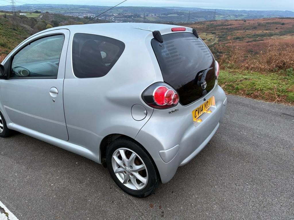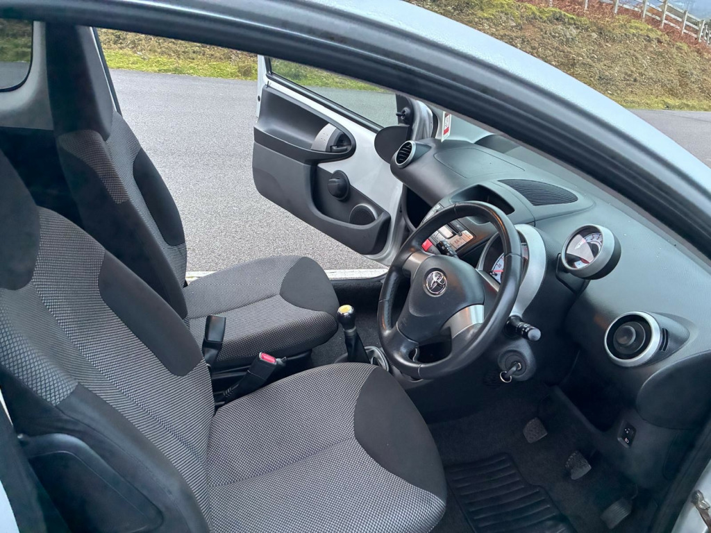 This 2014 Toyota Aygo 1.0 VVT-i Mode Hatchback is a sleek and efficient vehicle with only 47026 miles on the odometer. Powered by a petrol engine and equipped with a manual transmission, this Euro 5 compliant car is perfect for city driving and long journeys. With MOT valid until 26/06/2026, you can enjoy peace of mind knowing that this reliable hatchback meets all safety and emissions standards. Boasting 4 seats and 3 doors, this Aygo is spacious and convenient, while also being ULEZ compliant, making it an ideal choice for urban environments. This stylish vehicle also comes with 14in Alloy Wheels, electric windows, body-coloured bumpers, door mirrors, and handles, ensuring that you drive in both comfort and style. Don't miss out on the opportunity to own this well-maintained and practical hatchback. in alloy wheels - 8 spoke, body coloured door mirrors, bumpers - body coloured, door handles - body coloured, electric windows - front, front grille - mesh effect, full size spare wheel, glass - green tinted, privacy glass - rear, rear pop out windows, rear wipers - continual sweep, red tone rear light cluster, abs - anti lock braking system, airbags - curtain, airbags - driver, airbags - front passenger, airbags - front passenger cut-off switch, airbags - front side, csc - cornering stability control, child protection locks, ebd - electronic brakeforce distribution, isofix child restraint system, remote central locking, seat belt warning - driver, seat belt warning - front passenger, steering column lock, transponder key engine immobiliser, vsc - vehicle stability control, accessory power socket - front, aux input, rds with pty and eon settings, radio aerial - roof mounted, radio and cd player, speakers x4, air recirculation function, cupholders - front, digital clock, door inserts - moulded, driver and front passenger sun visors, front wipers - twin speed and fixed intermittent, fully trimmed boot, headrests - front intergrated, headrests - rear height adjustable, interior light, leather gear shift knob, leather steering wheel and gear shift, rear door storage bins, rear parcel shelf - removable, rear storage bins, seats - 50-50 split folding rear, seats - slide and recline adjustable drivers, seats - slide and recline adjustable front passengers, steering column - adjustable stepless tilt, storage - central console, storage bins - front doors, vanity mirrors - driver and front passenger with cover, daytime running lights - led, front fog lights, headlights - electronic levelling, high mounted rear brake light, digital odometer with trip meter, electric power steering - eps, lights on warning, tachometer