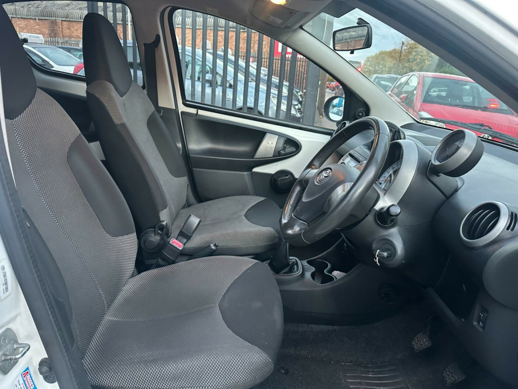 This 2013 Toyota AYGO VVT-i Move is a superb example of a well maintained compact car. Powered by an efficient 1.0 litre petrol engine, this AYGO offers a smooth and responsive driving experience. It comes equipped with desirable features such as air conditioning to keep you comfortable in all weather, and Bluetooth connectivity for seamless handsfree calls and music streaming.The AYGO Move is designed with economy and practicality in mind. It boasts an impressive fuel economy of up to 66 miles per gallon, making it an excellent choice for cost conscious drivers. Furthermore, its low CO2 emissions and placement in a low insurance group highlight its affordability and environmental consideration compared to many other vehicles in its class. in steel wheels, abs - anti lock braking system, accessory power socket - front, air conditioning, air recirculation function, airbags - curtain, airbags - driver, airbags - front passenger, airbags - front passenger cut-off switch, airbags - front side, aux input, bluetooth connectivity, body coloured door mirrors, bumpers - body coloured, csc - cornering stability control, child protection locks, cupholders - front, dab ready, digital clock, digital odometer with trip meter, door handles - body coloured, door inserts - moulded, driver and front passenger sun visors, ebd - electronic brakeforce distribution, electric power steering - eps, electric windows - front, front grille - mesh effect, front wipers - twin speed and fixed intermittent, full size spare wheel, fully trimmed boot, glass - green tinted, headlights - electronic levelling, headrests - front intergrated, headrests - rear height adjustable, high mounted rear brake light, isofix child restraint system, interior light, leather gear shift knob, leather steering wheel and gear shift, lights on warning, privacy glass - rear, rds with pty and eon settings, radio aerial - roof mounted, radio and cd player, rear door storage bins, rear parcel shelf - removable, rear pop out windows, rear storage bins, rear wipers - continual sweep, red tone rear light cluster, remote central locking, seat belt warning - driver, seat belt warning - front passenger, seats - 50-50 split folding rear, seats - slide and recline adjustable drivers, seats - slide and recline adjustable front passengers, speakers x4, steering column - adjustable stepless tilt, steering column lock, storage - central console, storage bins - front doors, tachometer, tomtom navigation, transponder key engine immobiliser, usb and ipod integration, vsc - vehicle stability control, vanity mirrors - driver and front passenger with cover