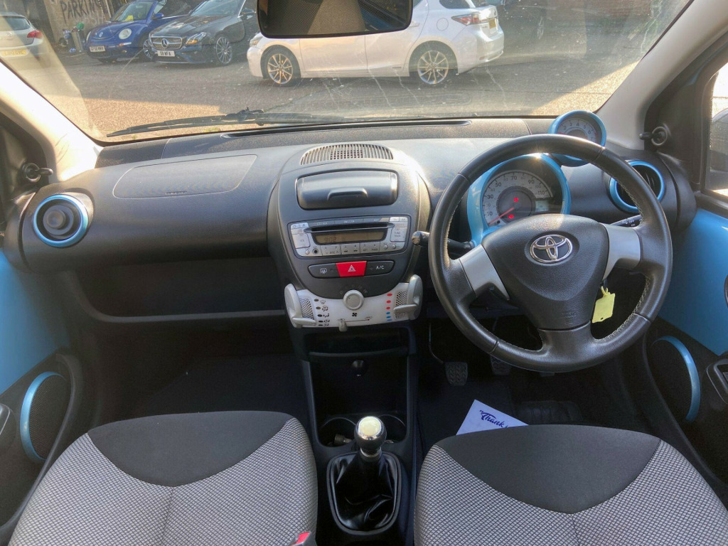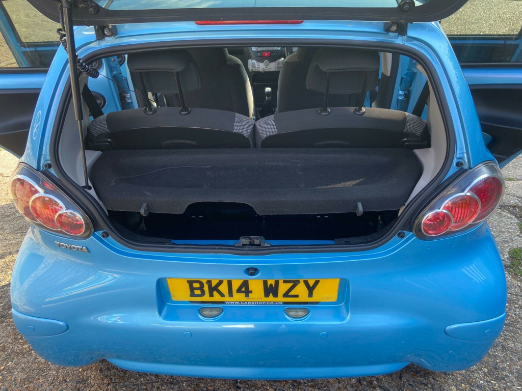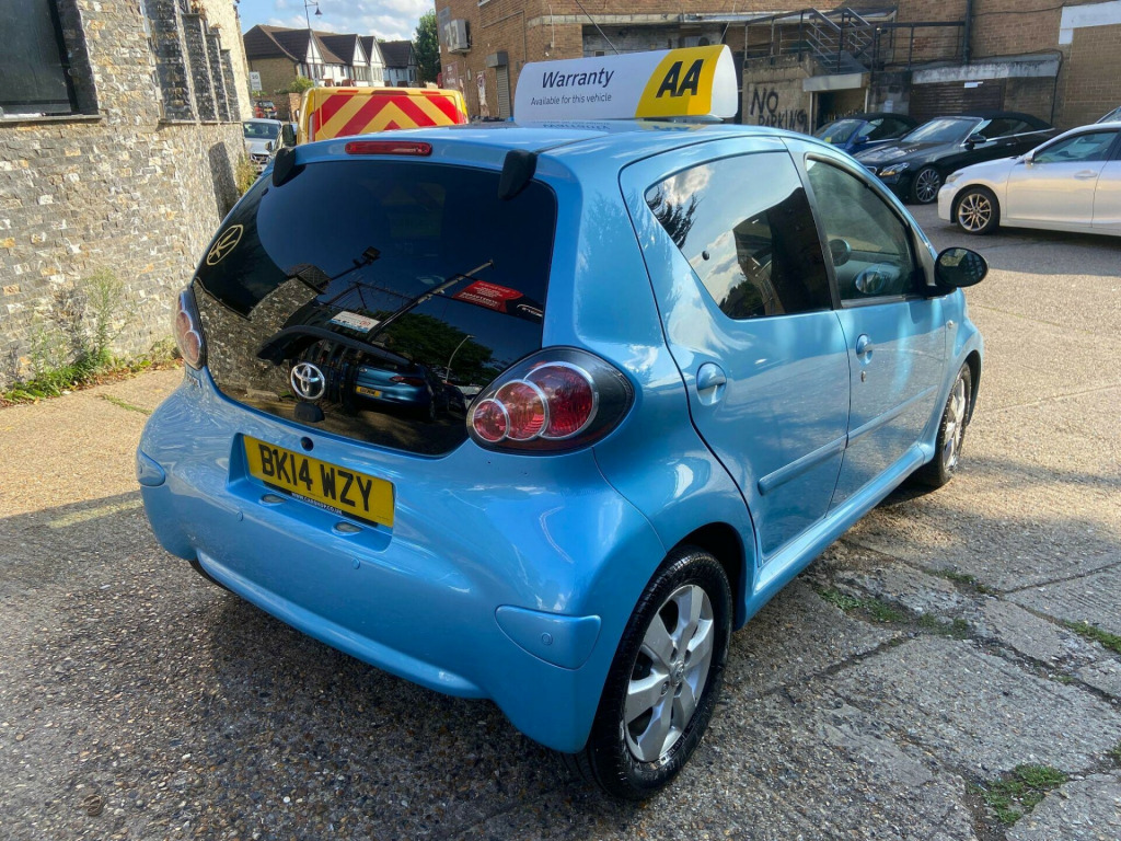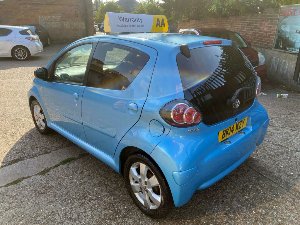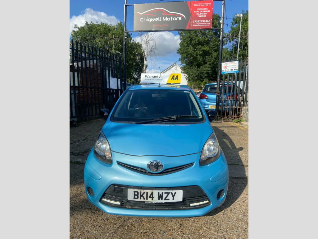 Toyota AYGO 1.0 VVT-i Move Euro 5 5dr BK14WZY 2014 (14) 47,000 miles? Petrol ?? Manual Blue 3 Owners ? ULEZ CompliantThis brilliant little Toyota AYGO is the perfect city careconomical, compact, and super easy to drive. With just 47k miles, it's been well cared for and is ideal for first-time drivers, commuters, or anyone looking for a reliable, budget-friendly hatchback. Only £20 annual road tax and ULEZ compliant, so you can drive into city centres with no extra charges.Why Buy from Chigwell Motors Ltd?We are a trusted, family-run dealership in East London with over 15 years of experience. All vehicles come with:?? Minimum 6-Month MOT?? Fresh Service & Pre-Sale Inspection?? Warranty Included?? Same Day Drive Away Available?? Click & Collect or Nationwide Delivery?? Fixed Pricing - No Admin Fees?? Finance from 7.9% APR Available 688-690 Chigwell Road, Woodford Green, Essex IG8 8AH Call/Text/WhatsApp: 07392 792466 www.chigwellmotors.co.uk chigwellmotorshotmail.com in steel wheels, abs - anti lock braking system, accessory power socket - front, air conditioning, air recirculation function, airbags - curtain, airbags - driver, airbags - front passenger, airbags - front passenger cut-off switch, airbags - front side, aux input, bluetooth connectivity, body coloured door mirrors, bumpers - body coloured, csc - cornering stability control, child protection locks, cupholders - front, dab ready, digital clock, digital odometer with trip meter, door handles - body coloured, door inserts - moulded, driver and front passenger sun visors, ebd - electronic brakeforce distribution, electric power steering - eps, electric windows - front, front grille - mesh effect, front wipers - twin speed and fixed intermittent, full size spare wheel, fully trimmed boot, glass - green tinted, headlights - electronic levelling, headrests - front intergrated, headrests - rear height adjustable, high mounted rear brake light, isofix child restraint system, interior light, leather gear shift knob, leather steering wheel and gear shift, lights on warning, privacy glass - rear, rds with pty and eon settings, radio aerial - roof mounted, radio and cd player, rear door storage bins, rear parcel shelf - removable, rear pop out windows, rear storage bins, rear wipers - continual sweep, red tone rear light cluster, remote central locking, seat belt warning - driver, seat belt warning - front passenger, seats - 50-50 split folding rear, seats - slide and recline adjustable drivers, seats - slide and recline adjustable front passengers, speakers x4, steering column - adjustable stepless tilt, steering column lock, storage - central console, storage bins - front doors, tachometer, tomtom navigation, transponder key engine immobiliser, usb and ipod integration, vsc - vehicle stability control, vanity mirrors - driver and front passenger with cover