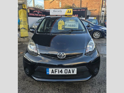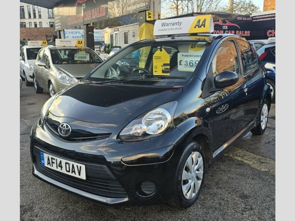 Here we have for sale a lovely 2014 toyota aygo move in a lovely metallic black. It is the small 1.0L petrol engine which is great for new or first drivers as they are cheap to insure and very economical to run. It has covered very low mileage for its age of just over 62000 miles backed by some service. It will come with a full 12month mot with no advisories and a full service from ourselves upon purchase. Very clean car both cosmetically and mechanically. This 2014 Toyota AYGO VVT-i Move is presented with a recent service completed in November 2025 at 62,700 miles, offering peace of mind alongside its 12 months MOT provided on purchase. This well maintained example features a 1.0L petrol engine and comes with a 3 month warranty for added security. The Move trim level includes essential features such as air conditioning to keep you comfortable and Bluetooth connectivity for seamless phone integration and audio streaming. The AYGO VVT-i Move stands out with its impressive fuel economy, achieving a remarkable 66 miles per gallon, which is significantly better than many other vehicles in its class. Furthermore, its low CO2 emissions and low insurance group rating make it an exceptionally economical choice for everyday driving, helping to keep your running costs down. This combination of efficiency and affordability makes it a sensible option for many drivers. Here at chorlton car sales we strive to deliver 100% customer satisfaction to all our customers therefore we offer a ful Amba Cloth - Black, Ostrava - Black, Protection Pack, Design Pack, Alloy Wheels, 14in Alloy Wheels - Antibes, 14in Steel Wheels, ABS - Anti Lock Braking System, Accessory Power Socket - Front, Air Conditioning, Air Recirculation Function, Airbags - Curtain, Airbags - Driver, Airbags - Front Passenger, Airbags - Front Passenger Cut-Off Switch, Airbags - Front Side, Aux Input, Bluetooth Connectivity, Body Coloured Door Mirrors, Bumpers - Body Coloured, CSC - Cornering Stability Control, Child Protection Locks, Cupholders - Front, DAB Ready, Digital Clock, Digital Odometer with Trip Meter, Door Handles - Body Coloured, Door Inserts - Moulded, Driver and Front Passenger Sun Visors, EBD - Electro