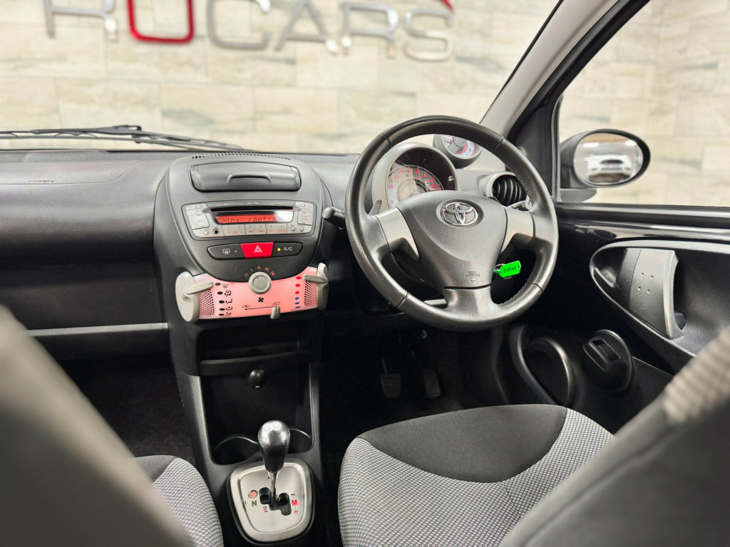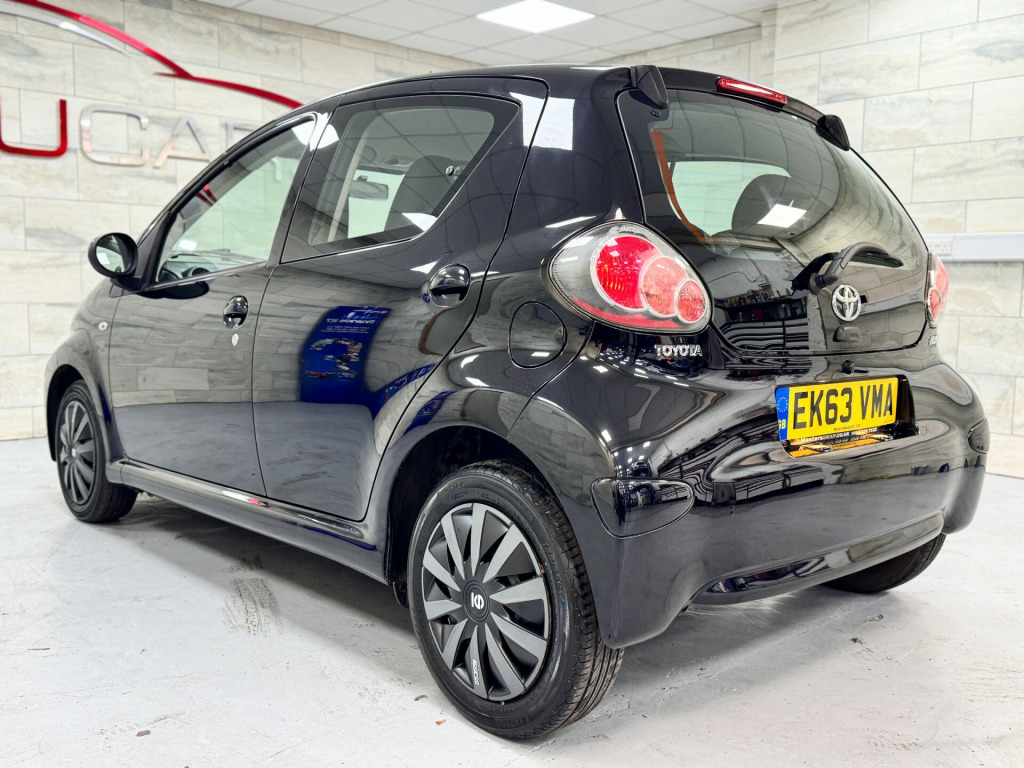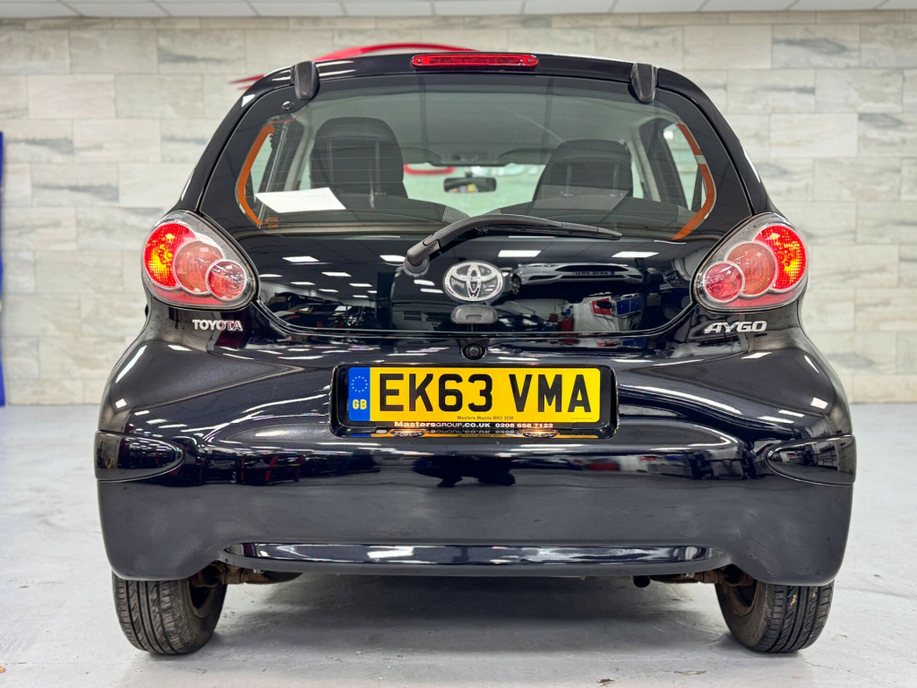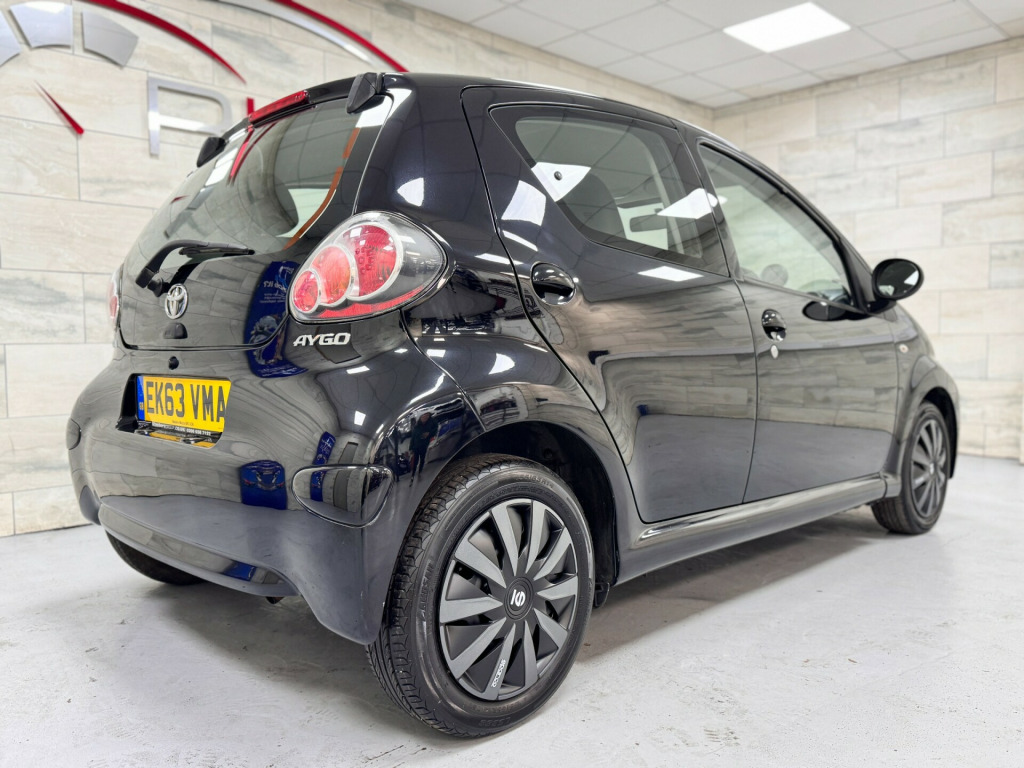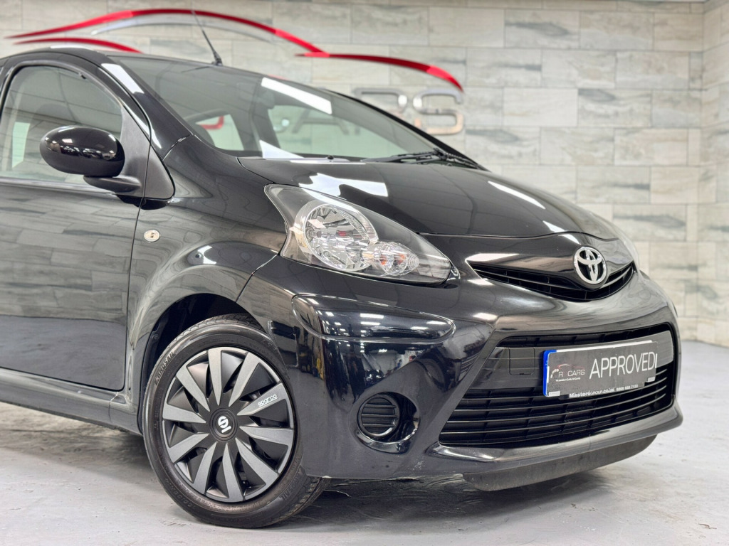 A fantastic opportunity to purchase a very clean & well cared for example which comes supplied with full service & NEW MOT!This 2013 '63' Toyota Aygo Move MMT is finished in Tempest Black with Black/Grey interior.SPECIFICATION - Tom Tom Navigationc preparation Air Conditioning Paddle Shift Remote central locking Sparco Wheel trims & much more!MAINTENANCE -The car will come with a new MOT, full health check & Service MORE ABOUT THE CAR - The car is lovely throughout. The spec is great, and the overall condition is fantastic & of course it drives without fault.WHATS INCLUDED - The car will come with a new MOT, fully valeted & 3 Months Ultimate Warranty included. We have 1 key, clear HPI report and all paperwork.,VIDEO - https://youtu.be/MA82tJOIhps FINANCE AVAILABLE - We are fully regulated by the FCA & work with multiple brokers & lenders.R U Cars Loughborough is a family run business, selling quality used vehicles since 2013. Visit www.RUCARS.co.uk for more information in steel wheels, body coloured door mirrors, bumpers - body coloured, door handles - body coloured, electric windows - front, front grille - mesh effect, full size spare wheel, glass - green tinted, privacy glass - rear, rear pop out windows, rear wipers - continual sweep, red tone rear light cluster, abs - anti lock braking system, airbags - curtain, airbags - driver, airbags - front passenger, airbags - front passenger cut-off switch, airbags - front side, csc - cornering stability control, child protection locks, ebd - electronic brakeforce distribution, isofix child restraint system, remote central locking, seat belt warning - driver, seat belt warning - front passenger, steering column lock, transponder key engine immobiliser, vsc - vehicle stability control, accessory power socket - front, aux input, bluetooth connectivity, dab ready, rds with pty and eon settings, radio aerial - roof mounted, radio and cd player, speakers x4, tomtom navigation, usb and ipod integration, air conditioning, air recirculation function, console box sliding mechanism, console box with leather cover, cupholders - front, digital clock, door inserts - moulded, driver and front passenger sun visors, front wipers - twin speed and fixed intermittent, fully trimmed boot, headrests - front intergrated, headrests - rear height adjustable, interior light, leather gear shift knob, leather steering wheel and gear shift, rear door storage bins, rear parcel shelf - removable, rear storage bins, seats - 50-50 split folding rear, seats - slide and recline adjustable drivers, seats - slide and recline adjustable front passengers, steering column - adjustable stepless tilt, storage - central console, storage bins - front doors, vanity mirrors - driver and front passenger with cover, digital odometer with trip meter, electric power steering - eps, lights on warning, tachometer, headlights - electronic levelling, high mounted rear brake light