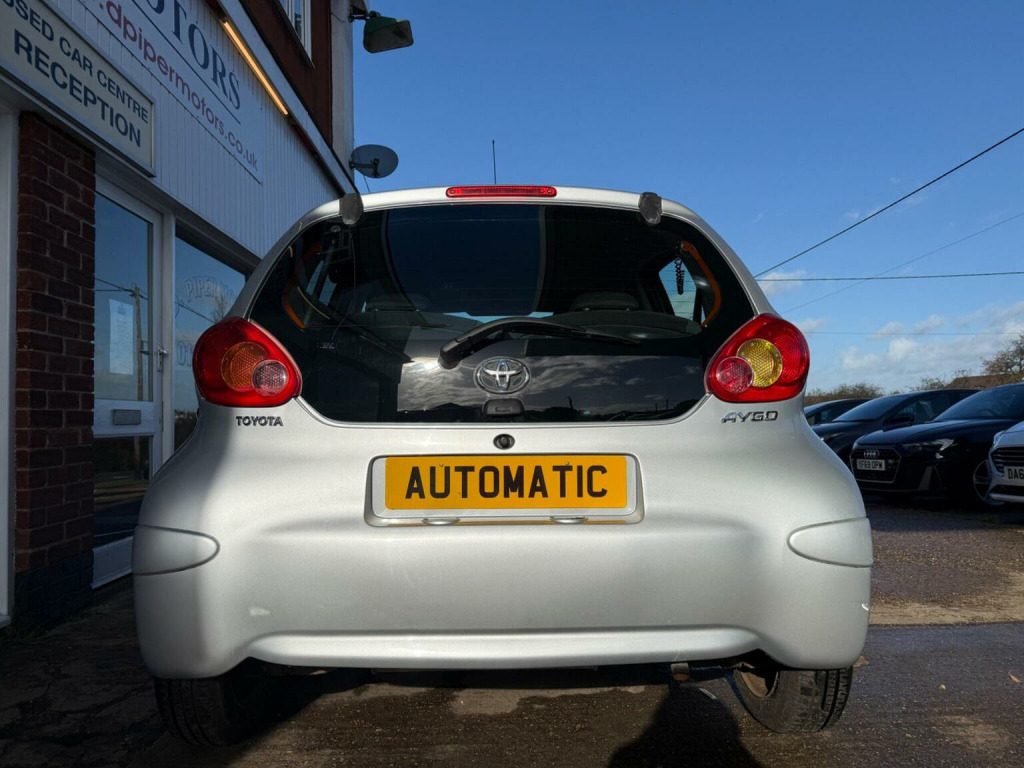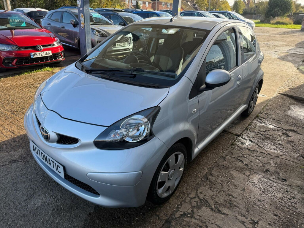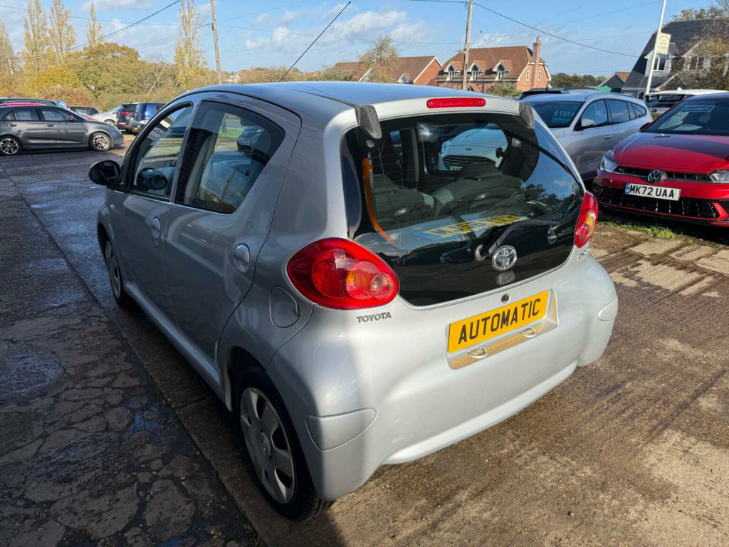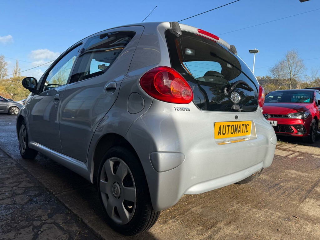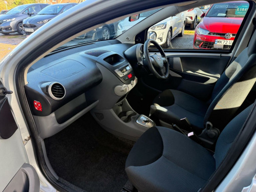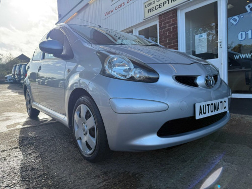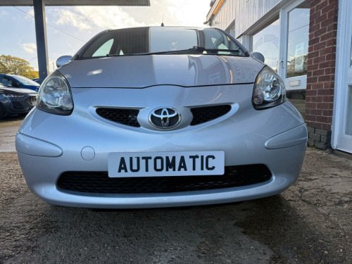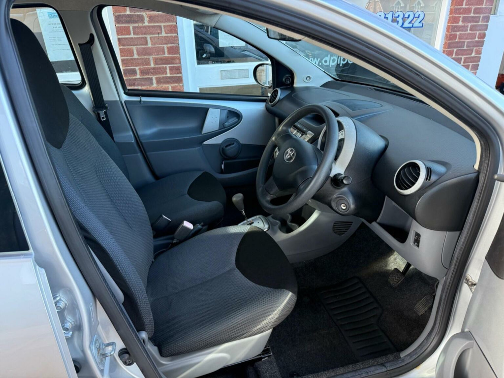 We have for you a Toyota AYGO 1.0 VVT-i + Automatic 5 door hatchback in Metallic silver with grey trim covered just 38,000 miles with full service history and one former owner from new