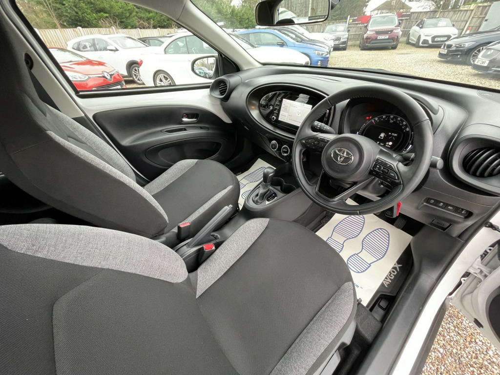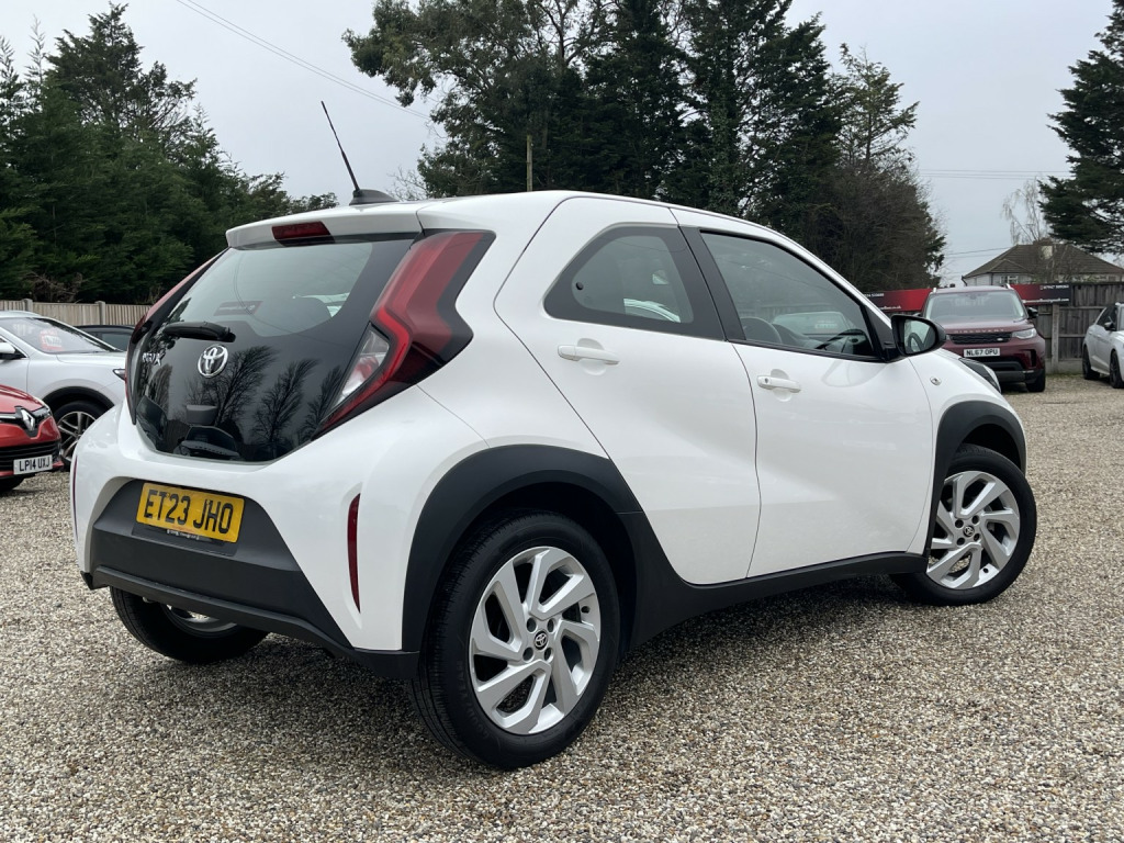 Essex Car Fleet is delighted to present this superb 2023 Toyota Aygo X 1.0 VVT-i Pure Automatic, finished in crisp white and having covered just 11,000 miles. Stylish, economical, and packed with modern technology, this Aygo X is the perfect city car with a confident crossover-inspired design. Its smooth automatic transmission and efficient 1.0-litre engine make every journey effortless, whether youre commuting, shopping, or heading out on longer trips. Inside, the well-appointed cabin features a 7-inch Toyota Touch Multimedia System with Apple CarPlay and Android Auto, Bluetooth connectivity, DAB digital radio, and a 4.2-inch colour multi-information display. The leather steering wheel with integrated audio and phone controls keeps everything within easy reach, while manual air conditioning ensures comfort in all seasons. Front and rear electric features, quality trim, and height-adjustable seating add to the refined driving experience. Safety is a major highlight, with Toyota Safety Sense providing Pre-Collision System with Emergency Steering Assist, Lane Departure Alert, Intelligent Adaptive Cruise Control, Hill Start Assist, Traction Control, Vehicle Stability Control, tyre pressure monitoring, and six airbags, giving you complete peace of mind on every journey. Parking and manoeuvring are made simple thanks to the integrated reversing camera and excellent visibility. Externally, this Aygo X stands out with its smart 17-inch alloy wheels, gloss black door mirrors, black wheel arch mouldings, body-coloured bumpers and door handles, LED light guides, and modern front grille design, giving it a sporty and contemporary appearance. Practicality is equally impressive, offering split-folding rear seats, ISOFIX child seat points, rear headrests, ample storage compartments, a rear wiper and heated rear screen, heated electric mirrors, USB connectivity, and a versatile boot space suitable for everyday use. With just 11,000 miles, a full modern specification, low running costs, and Toyotas renowned reliability, this Aygo X represents an excellent opportunity for first-time drivers, urban commuters, or anyone seeking a stylish and dependable automatic hatchback. With our location based in Battlesbridge in Essex, Enjoy haggle-free buying experience where you can drive away the same day of prior arranged appointment. Please see our website for details. Call now or enquire online for a no-obligation test drive, finance quote or part-exchange valuation, 5 Star Dealer, Finance Available, Delivery Available, Part exchange Available, all cars are supplied with a 3 months warranty, 12 months MOT. Please call all a member of the team on 01268 572992 and we will be delighted to help you move your enquiry forward 5 Star Dealer, Finance Available, Delivery Available. , Our preparation team have inspected to the highest level possible for the age and mileage of vehicle, You can rest assured your car has been cared for to our highest Standard. With our location based in Battlesbridge in Essex you can enjoy a haggle-free buying experience where you can drive away the same day if prior arranged appointment. £150 admin fee applies, please see our website for details.