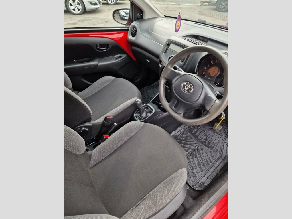 2015 (65) TOYOTA AYGO 1.0 VVT-I X 5d is offered to you for sale in Darlington, County Durham, finished in red this used TOYOTA AYGO 1.0 VVT-I X 5d is one of many handpicked used cars that used car dealer Darlington Car & Commercial, Darlington, County Durham have available for sale. We are a family-owned company that prides itself on the quality of vehicles and all of them are carefully chosen, handpicked examples that are always HPI Clear for your peace of mind. We offer all the usual used Car Dealer facilities such as Low-rate finance and extended warranties and operate a no-pressure environment where you can relax and enjoy good old-fashioned service with a smile. 14in Steel Wheels - 9-Spoke, Black Carbon Effect Diffuser, Door Handles - Carbon Effect, Door Mirrors - Black, Door Mirrors - Carbon Textured, Front Power Windows, Front x-tension - Carbon Effect, Rear Spoiler, Rear Window Defogger, Tyre Repair Kit, Unpainted X, ABS - Anti Lock Braking System, Airbags - Curtain, Airbags - Driver, Airbags - Front Passenger, Airbags - Front Passenger Cut-Off Switch, Airbags - Front Side, EBS - Emergency Brake Signal, HAC - Hill Start Assist Control, ISOFIX Child Restraint System, Immobiliser, Remote Central Locking, Seat Belt Warning - Driver, Seat Belt Warning - Front Passenger, Seat Belt Warning - Rear, Tyre Pressure Warning System, VSC - Vehicle Stability C