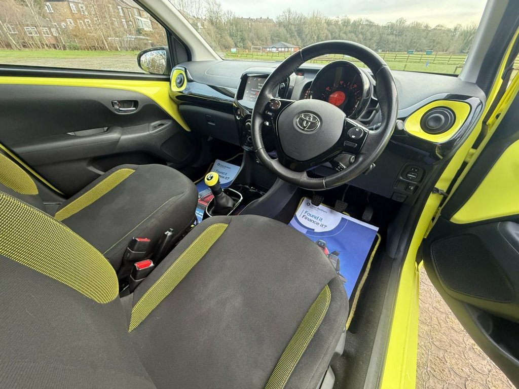This 2016 Toyota AYGO VVT-i x-cite 3 presents an exceptional ownership proposition with its remarkably low mileage of just 33,000 miles, especially for a vehicle of its age. Having been cared for by only two owners and boasting a clear vehicle history check, this AYGO is a testament to its well maintained past, supported by partial service history. Under the bonnet, a responsive 1.0L petrol engine powers this Euro 6 compliant model, ensuring efficiency without compromising on performance. The appeal of this AYGO x-cite 3 is further enhanced by its impressive fuel economy, achieving an outstanding 69 miles per gallon, which is significantly better than many other vehicles in its class. This, combined with its low CO2 emissions and placement in a low insurance group, makes it a remarkably economical choice for everyday driving. These factors collectively highlight how this particular AYGO offers a more cost effective and environmentally conscious motoring experience. 15in Alloy Wheels - 5 Double-Spoke - Glo, 3-Spoke Leather Steering Wheel, ABS - Anti Lock Braking System, AM-FM Radio, Air Conditioning, Air Vent Surrounds - Yellow Fizz, Airbags - Curtain, Airbags - Driver, Airbags - Front Passenger, Airbags - Front Passenger Cut-Off Switch, Airbags - Front Side, Bluetooth Connectivity, Centre Console - Gloss Black, Chrome Inside Door Handles, Clean Air Filter, Cupholders - Front, Cupholders - Rear, DAB Digital Radio, Daytime Running Lights - LED, Door Handles - Body Coloured, Door Mirrors - Gloss Black, Driver and Passenger Sun Visors with Mir, EBS - Emergency Brake Signal, Electric Power Steering - EPS, Electric and Heated Door Mirrors, Floor Mats with Ye