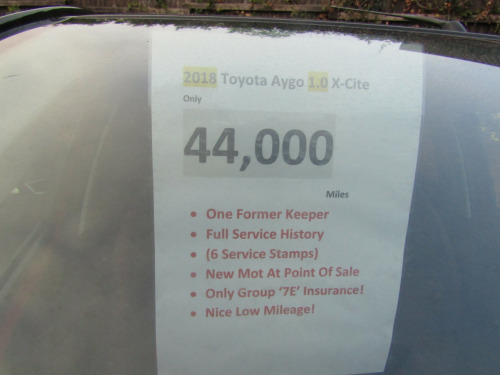 This 2018 Toyota AYGO 1.0 VVT-i x-cite 4 Red Bi-Tone One Former Keeper, Only 44,000 Genuine Mile Hatchback is currently available for £7,295 in Gillingham Kent with Petrol engine and Manual gearbox. For more information or to arrange a viewing, click here to send us an email using form below.