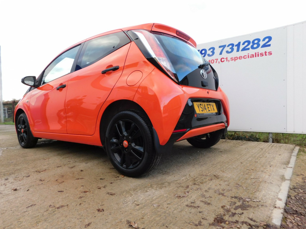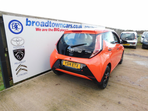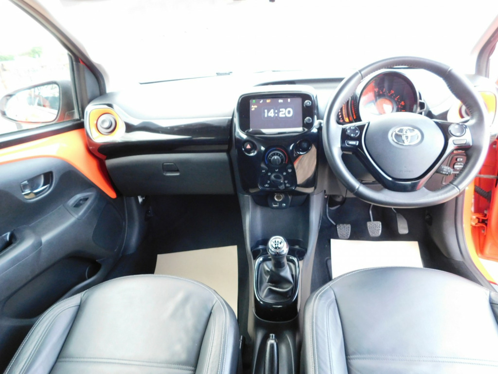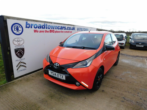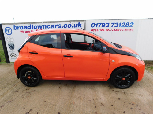 SatNav, bluetooth touch screen radio with USB & Aux inputs, air con, full leather trim, 5 speed, adj. seat /steering ABS, traction control, colour coded dash trim, remote c/locking, e/windows, e/mirrors, isofix, child locks, multi air bags, black alloys, keyless entry, reversing camera & rear parking sensors, front fog lights, day time running lights, New Clutch just fitted by us, 2 keys, service history, 5 door in the stunning pop orange - MONSTER SPEC !! - We Have Many More Cars NOT ADVERTISED – Please Click The Link Through To OUR WEB SITE To See ALL OUR STOCK - We Always Have Up To 30 Aygo, 107 & C1 In Stock. With Hundreds Handled We Are Experts In All Aspects Of These Fantastic Small Cars. With One Of The Best Selections In The Area We Feel Well Placed To Offer You Free Expert Advice On All Aspects Of Your New Car. We Are A Family Owned And Run Business Established Since 1968, A Fact We Are Very Proud Of. Find Us Easily 6 miles From J16 Of The M4 ( For Sat Nav Use SN4 7RB) Here At Broad Town We Not Only Sell Cars But Repair Them As Well, Unlike A Lot Of Our Competitors We Are A Proper Garage, We Run Our Own Workshops And MOT Testing On Site. This Means You Have The Peace Of Mind Knowing That It Has Been Inspected By Our Own Technicians. All Cars Come With A Pre Delivery Service And Inspection (PDi) New Or Minimum Of 6 Months MOT, And 3 Month Warranty, Most Major Debit & Credit Cards Are Accepted. Please Use The Link To Click Thorough To Our Web Site broadtowncars.co.uk Here You Can Find Out All About Us, Our Cars And All Those Extra Little Bits That You Really Want To Know ! You Can Also Follow Us On Facebook For Regular Updates Of New Cars Coming In, Just Look For Broad Town Cars