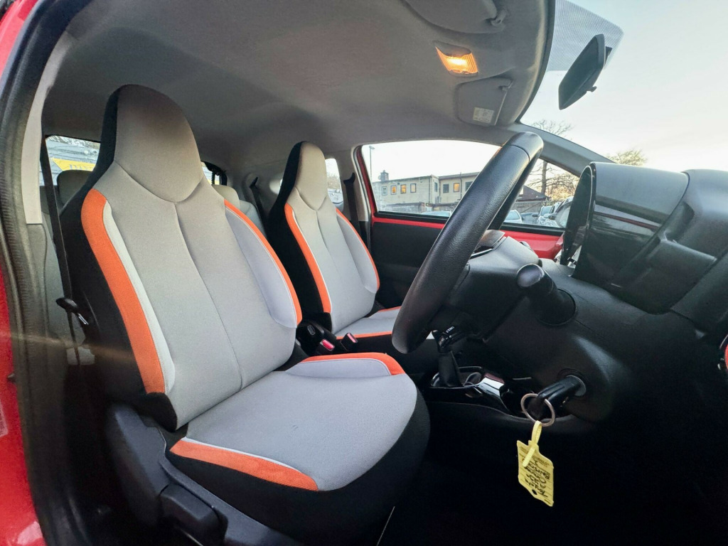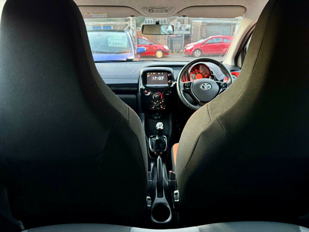 |||| THE USED CAR: |||| Pavillion Car Sales is pleased to offer an excellent example of a Toyota AYGO in the VVT-i x-cite Trim!This sleek orange hatchback is well equipped with lots of great features including air conditioning, Bluetooth connectivity for calls and music, a rear view camera, a 7-inch x-touch screen, DAB radio, stylish black roof decals, and more. The 1.0L petrol engine delivers an impressive 69mpg, boasting 69bhp. With as little as £20 annual road tax (Paid till December 2026) and ULEZ compliance, this practical and economical choice invites you for a test drive.|||| THE HISTORY: |||| Well MaintainedHaving only 1 FORMER KEEPER, this used car has been well maintained inside and out. A thorough mechanical inspection has been carried out and comprehsnive service history is provided as follows (4 Total Services) 1st at 7390, 2nd at 12083, 3rd at 17878, 4th DONE at Current Mileage (inc Break Pads/Discs Change to Front + 4 BRAND NEW TYRES).|||| WHAT'S INCLUDED: |||| Benefits & Peace of MindExperience peace of mind with a LONG MOT till 27/11/2026 (Advisories Done/Free), 12 months complimentary AA breakdown cover, and a 3-month warranty extendable to a nationwide 36 months with the AA. 5-day drive away cover is available, and we can assist with road tax. 2 keys.|||| ABOUT US: |||| The Family Run & Award-Winning Used Car DealershipWelcome to Pavillion Car Sales – a multi-award-winning, family-run car dealership with over a decade of expertise. We have used cars for sale in Brighton & Crawley. As an AA-authorized and Trading Standards-approved used car dealership, we're committed to offering high-quality second-hand vehicles at competitive prices. Each car undergoes a meticulous selection process to meet our high standards, finding you a perfect balance between quality, reliability, and value. Beyond our extensive selection of used cars for sale, our services ensure a seamless and stress-free experience, including a pressure-free family-like environment, and professional valeting.PAVILION CAR SALES – Crawley - READY TO GO. 15in Alloy Wheels - 5 Double-Spoke - Gloss Black with Orange Centre Caps, 3-Spoke Leather Steering Wheel, ABS - Anti Lock Braking System, AM-FM Radio, Air Conditioning, Air Vent Surrounds - Orange Twist, Airbags - Curtain, Airbags - Driver, Airbags - Front Passenger, Airbags - Front Passenger Cut-Off Switch, Airbags - Front Side, Bluetooth Connectivity, Bluetooth Music Streaming, Carpet Mats, Centre Console - Gloss Black, Chrome Insert on Gear Shift, Chrome Inside Door Handles, Clean Air Filter, Cupholders - Front, Cupholders - Rear, DAB Digital Radio, Daytime Running Lights - LED, Door Handles - Gloss Black, Door Mirrors - Gloss Black, Driver and Front Passenger Sun Visors, EBS - Emergency Brake Signal, Electric Power Steering - EPS, Electric and Heated Door Mirrors, Front 12V Power Outlet, Front Console Box, Front Fog Lights, Front Power Windows, Front x-tension - Black, Gear Shift Surround - Gloss Black, Gloss Black Dashboard, Gloss Black Diffuser, Gloss Black Front X, Glovebox, HAC - Hill Start Assist Control, Headlights - Halogen, High Mounted Rear Brake Light, ISOFIX Child Restraint System, Immobiliser, Instrument Panel - Piano Black, Interior Light, Intermittent Windscreen Wipers, Leather Gear Shift Knob, Mirror Link, Mirror on Sun Visors, Rear Headrests, Rear Spoiler, Rear View Camera, Rear Window Defogger, Reclining and Sliding Front Seats, Remote Central Locking, Roof Decals - Full Roof Black, Seat Belt Warning - Driver, Seat Belt Warning - Front Passenger, Seat Belt Warning - Rear, Seats - 50-50 Split Folding Rear, Seats - Drivers Height Adjustment, Speakers x4, Speed Limiter, Steering Wheel - Audio Controls, Steering Wheel - Manual Tilt Adjustment, Steering Wheel - Multifunction, Storage - Door Pockets, Sunvisor - Driver and Passenger with Cover and Light, Tachometer, Tonneau Cover - Retractable, Tyre Pressure Warning System, Tyre Repair Kit, USB and Aux In, VSC - Vehicle Stability Control, x-touch - 7in Touch Screen. Part service history
