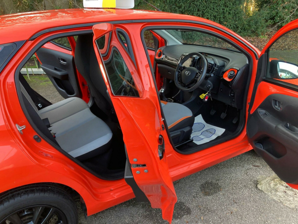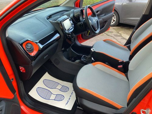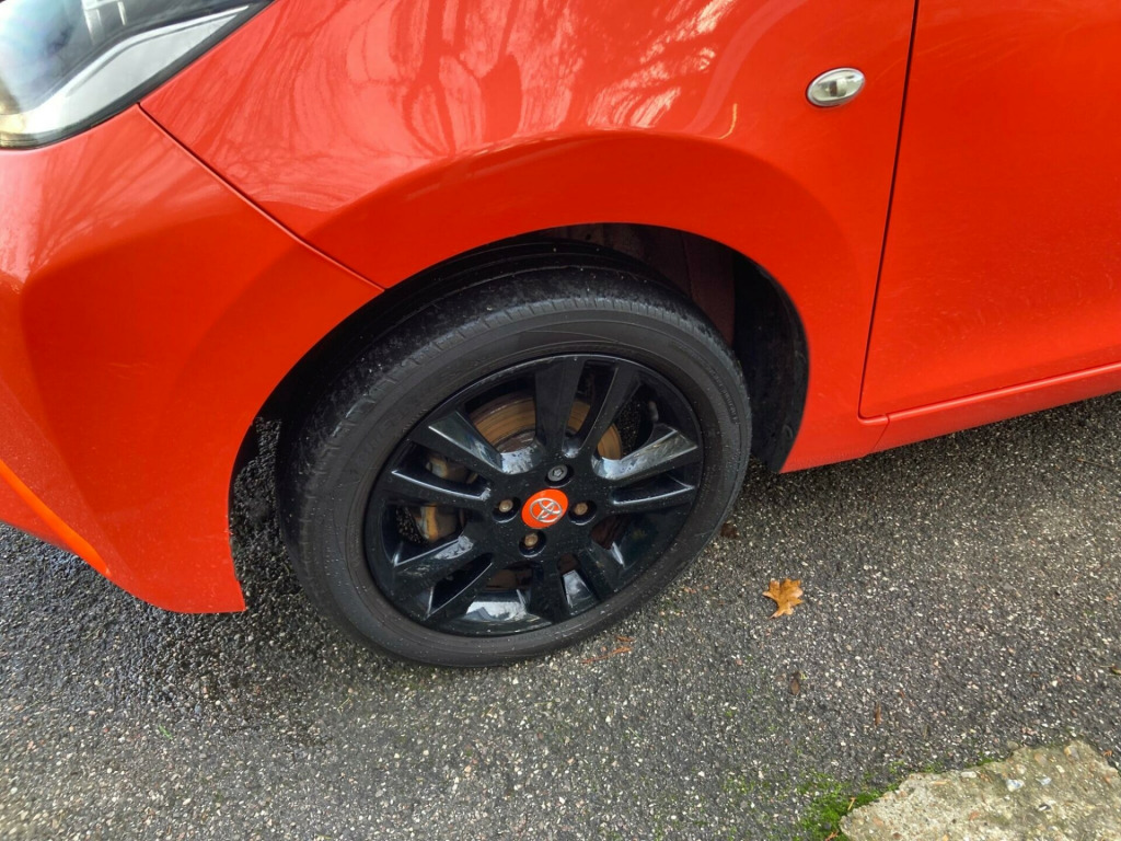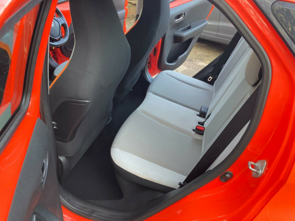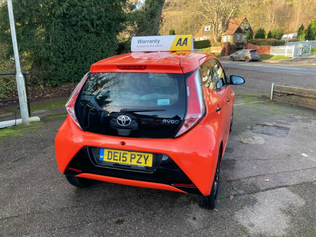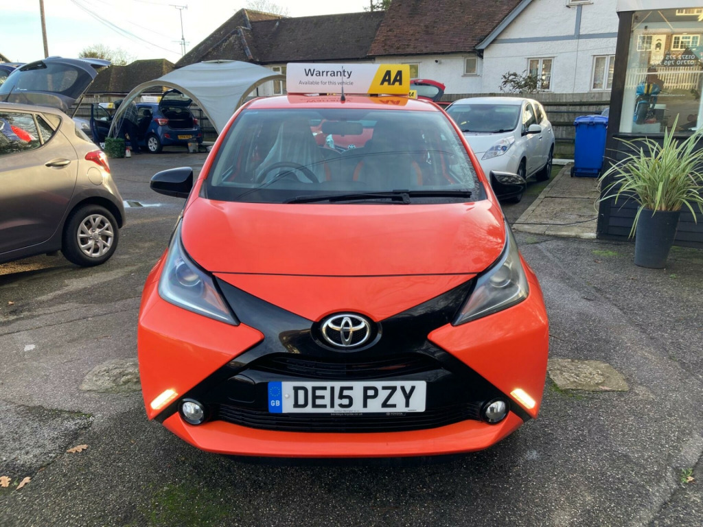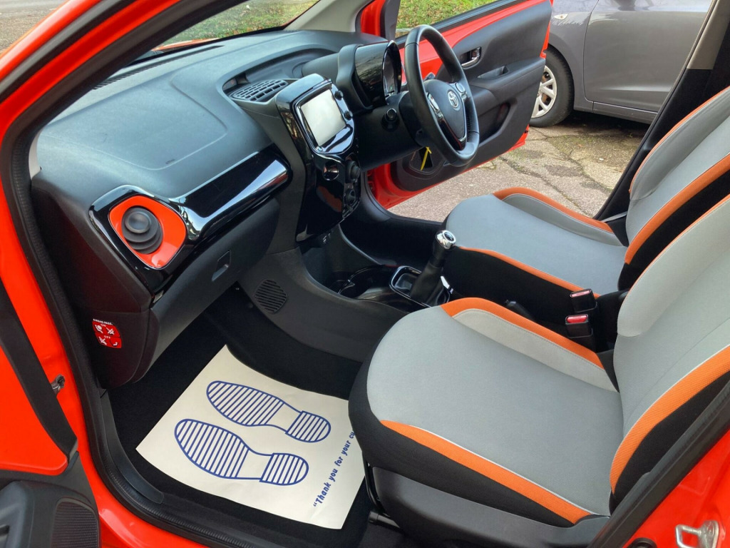 This 2015 Toyota AYGO VVT-i x-cite presents an exceptional ownership proposition, having been cherished by just one owner from new and boasting remarkably low mileage of only 38,666 miles. This compact and stylish hatchback is powered by an efficient 1.0L petrol engine, making it an ideal choice for city driving and beyond. The x-cite trim level comes equipped with a suite of convenient features, including a rear view camera with parking assistance, Bluetooth connectivity for hands free calls and music streaming, and air conditioning to ensure a comfortable cabin environment in all conditions.The benefits of choosing this particular AYGO are clear, with its impressive fuel economy of 69 mpg highlighting its cost effectiveness for everyday use. Furthermore, its low insurance group and low CO2 emissions mean that running costs are kept to a minimum, making it a sensible and economical option compared to many other vehicles in its class. This combination of low mileage, single ownership, and excellent running costs makes this Toyota AYGO a standout choice. in alloy wheels - 5 double-spoke - gloss black with orange centre caps, 3-spoke leather steering wheel, abs - anti lock braking system, am-fm radio, air conditioning, air vent surrounds - orange twist, airbags - curtain, airbags - driver, airbags - front passenger, airbags - front passenger cut-off switch, airbags - front side, bluetooth connectivity, bluetooth music streaming, carpet mats, centre console - gloss black, chrome insert on gear shift, chrome inside door handles, clean air filter, cupholders - front, cupholders - rear, dab digital radio, daytime running lights - led, door handles - gloss black, door mirrors - gloss black, driver and front passenger sun visors, ebs - emergency brake signal, electric power steering - eps, electric and heated door mirrors, front 12v power outlet, front console box, front fog lights, front power windows, front x-tension - black, gear shift surround - gloss black, gloss black dashboard, gloss black diffuser, gloss black front x, glovebox, hac - hill start assist control, headlights - halogen, high mounted rear brake light, isofix child restraint system, immobiliser, instrument panel - piano black, interior light, intermittent windscreen wipers, leather gear shift knob, mirror link, mirror on sun visors, rear headrests, rear spoiler, rear view camera, rear window defogger, reclining and sliding front seats, remote central locking, seat belt warning - driver, seat belt warning - front passenger, seat belt warning - rear, seats - 50-50 split folding rear, seats - drivers height adjustment, speakers x4, speed limiter, steering wheel - audio controls, steering wheel - manual tilt adjustment, steering wheel - multifunction, storage - door pockets, sunvisor - driver and passenger with cover and light, tachometer, tonneau cover - retractable, tyre pressure warning system, tyre repair kit, usb and aux in, vsc - vehicle stability control, x-touch - 7in touch screen, x-nav, zest fabric - light grey with orange and white bolsters