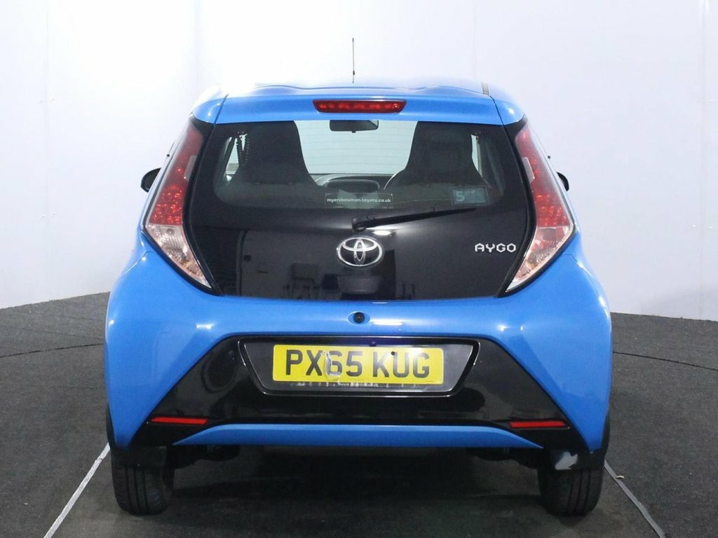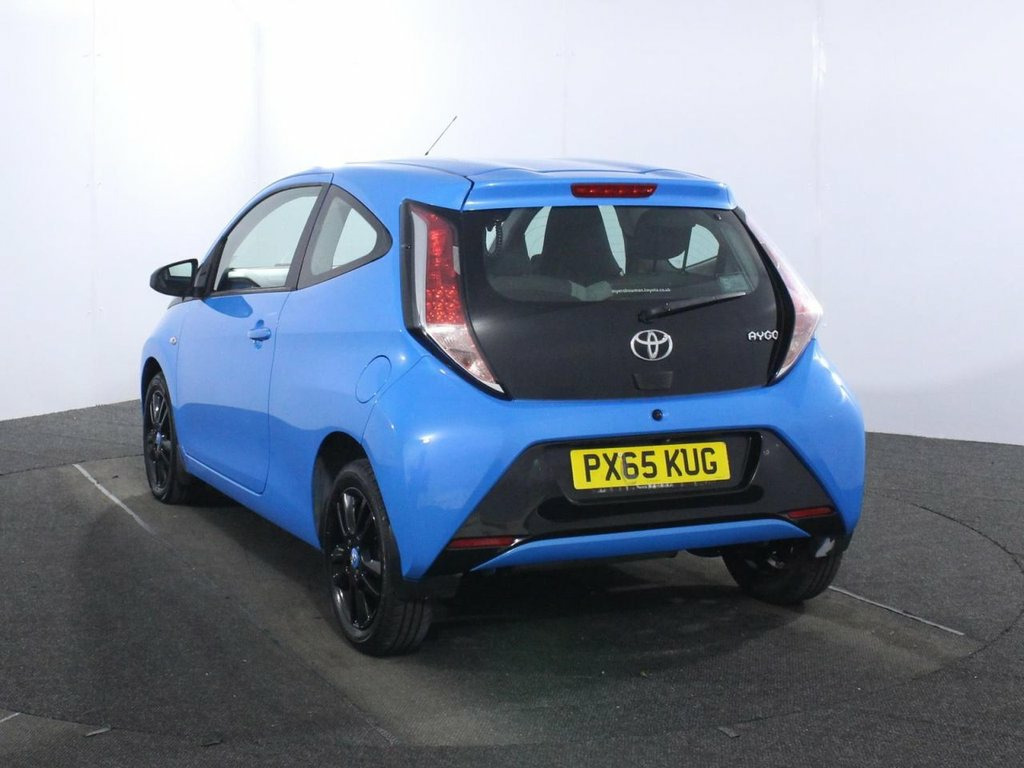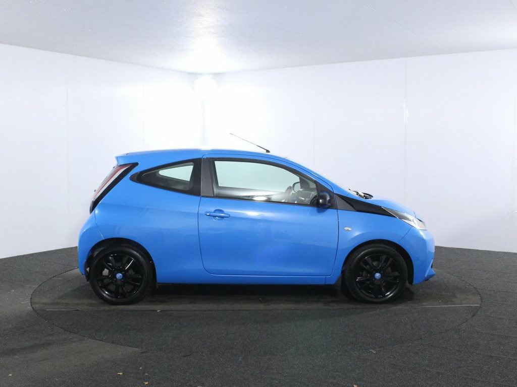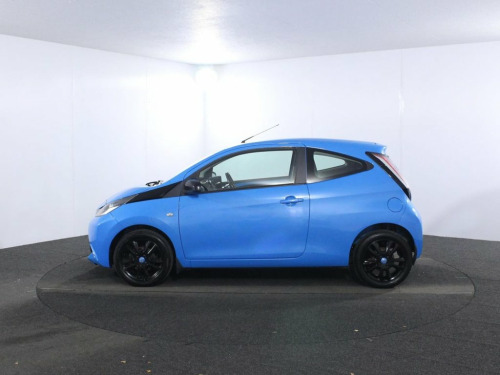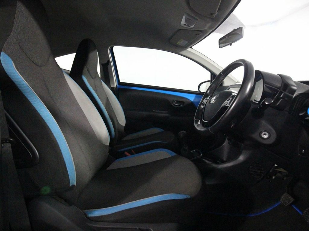 Comprehensive service history with 6 services. Last serviced at 66,315 miles. Introducing the 2015 Toyota Aygo 1.0 VVT-i x-cite, a vibrant and stylish 3-door city hatchback designed for urban efficiency and modern appeal. Finished with gloss black 15-inch 5 double-spoke alloy wheels featuring cyan splash centre caps, gloss black door mirrors, and a sporty rear spoiler, this Euro 6 petrol manual stands out with LED daytime running lights and projector halogen headlights with LED tracer lights. The gloss black dashboard, front X diffuser, and gear shift surround add a unique touch to the trendy exterior. Powered by a fuel-efficient 1.0-litre petrol engine producing 68ps, the Aygo x-cite offers nimble and economical performance with start-stop technology. Key features include a 7-inch x-touch touchscreen multimedia system with DAB digital radio, Bluetooth connectivity, a rearview camera, USB and AUX inputs, and hill start assist control. Safety is well-covered with multiple airbags, ABS with electronic brakeforce distribution, vehicle stability control, and a tyre pressure warning system. Inside, the cabin offers practical comfort with reclining front seats, a 50-50 split-folding rear seat, height and sliding adjustable driver seat, and a multifunction steering wheel with audio controls. Additional conveniences include front power windows, remote central locking, retractable tonneau cover, and ample storage with front door pockets and a central console. The 2015 Toyota Aygo 1. 15in Alloy Wheels - 5 Double-Spoke - Glo, 3-Spoke Leather Steering Wheel, ABS - Anti Lock Braking System, Air Conditioning, Air Vent Surrounds - Cyan Splash, Airbags - Curtain, Airbags - Driver, Airbags - Front Passenger, Airbags - Front Passenger Cut-Off Switch, Airbags - Front Side, AM-FM Radio, Bluetooth Connectivity, Centre Console - Gloss Black, Chrome Insert on Gear Shift, Chrome Inside Door Handles, Clean Air Filter, Cupholders - Front, Cupholders - Rear, Cyan Splash Alloy Wheel Centre Caps, DAB Digital Radio, Daytime Running Lights - LED, Door Handles - Body Coloured, Door Mirrors - Gloss Black, Driver and Passenger Sun Visors with Mir, EBS - Emergency Brake Signal, Electric and Heat