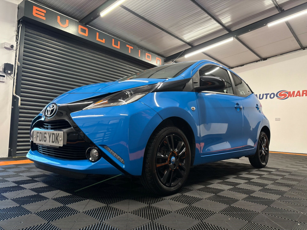 Toyota Aygo 1.0 VVT-i X-Cite 2 5dr Hatchback.. Registered - 27/05/2016 (16-reg)., 62,000 miles.. Toyota main dealer service history.. Just serviced.. MOT - October 2026.. 2 former keepers from new.. 2 x keys.. 16 inch gloss black alloys - fitted with great tyres all round.. 7 inch media screen with reversing camera.. Bluetooth.. USB input.. AUX input.. ISO-FIX child seat anchor points.. Tyre inflation kit.. Colour combination interior.. Grade 1 immaculate condition.. Stunning colour.. Power assisted steering.. ABS.. Alarm / central locking.. Electric windows.. Air conditioning.. Ideal little hatchback with extremely low running costs.. £20 per year road tax.. Low insurance group.. 65+ MPG.. Ideal first car..