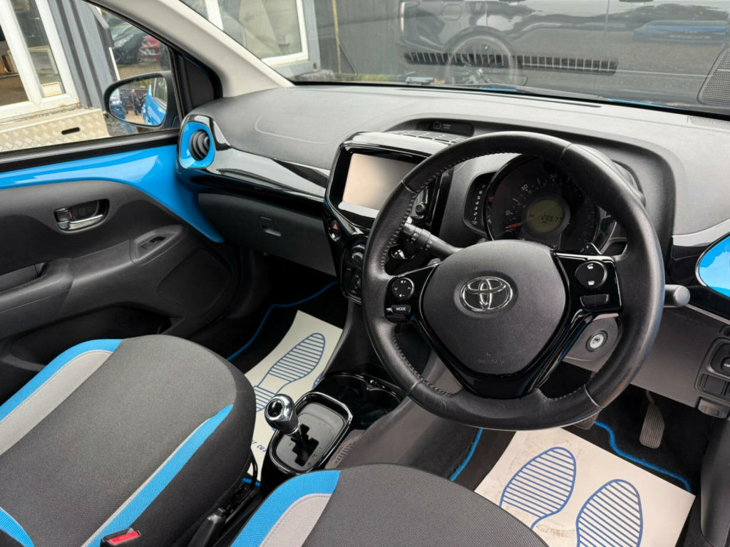 This 2016 Toyota AYGO VVT-i x-cite presents an exceptional ownership proposition with its remarkably low 22,000 miles and a single owner from new, all confirmed by a clear vehicle history check. This stylish AYGO, powered by an efficient 1.0L Euro 6 compliant petrol engine, offers a comfortable and connected driving experience. Inside, you'll find essential features such as air conditioning to keep you cool, and for added convenience, it boasts Bluetooth connectivity for both music streaming and handsfree calls, alongside a rear view camera to assist with parking.The appeal of this AYGO x-cite is further enhanced by its impressive fuel economy, achieving a remarkable 67 miles per gallon, which is significantly better than many other vehicles in its class. This, combined with its low CO2 emissions and low insurance group rating, makes it an incredibly economical choice for everyday driving. These highlights demonstrate how this particular AYGO offers a more cost effective and environmentally friendly ownership experience.. 15in Alloy Wheels - 5 Double-Spoke - Gloss Black with Orange Centre Caps, 3-Spoke Leather Steering Wheel, ABS - Anti Lock Braking System, AM-FM Radio, Air Conditioning, Air Vent Surrounds - Orange Twist, Airbags - Curtain, Airbags - Driver, Airbags - Front Passenger, Airbags - Front Passenger Cut-Off Switch, Airbags - Front Side, Bluetooth Connectivity, Bluetooth Music Streaming, Carpet Mats, Centre Console - Gloss Black, Chrome Insert on Gear Shift, Chrome Inside Door Handles, Clean Air Filter, Cupholders - Front, Cupholders - Rear, DAB Digital Radio, Daytime Running Lights - LED, Door Handles - Gloss Black, Door Mirrors - Gloss Black, Driver and Front Passenger Sun Visors, EBS - Emergency Brake Signal, Electric Power Steering - EPS, Electric and Heated Door Mirrors, Front 12V Power Outlet, Front Console Box, Front Fog Lights, Front Power Windows, Front x-tension - Black, Gear Shift Surround - Gloss Black, Gloss Black Dashboard, Gloss Black Diffuser, Gloss Black Front X, Glovebox, HAC - Hill Start Assist Control, Headlights - Halogen, High Mounted Rear Brake Light, ISOFIX Child Restraint System, Immobiliser, Instrument Panel - Piano Black, Interior Light, Intermittent Windscreen Wipers, Leather Gear Shift Knob, Mirror Link, Mirror on Sun Visors, Rear Headrests, Rear Spoiler, Rear View Camera, Rear Window Defogger, Reclining and Sliding Front Seats, Remote Central Locking, Seat Belt Warning - Driver, Seat Belt Warning - Front Passenger, Seat Belt Warning - Rear, Seats - 50-50 Split Folding Rear, Seats - Drivers Height Adjustment, Speakers x4, Steering Wheel - Audio Controls, Steering Wheel - Manual Tilt Adjustment, Steering Wheel - Multifunction, Storage - Door Pockets, Sunvisor - Driver and Passenger with Cover and Light, Tachometer, Tonneau Cover - Retractable, Tyre Pressure Warning System, Tyre Repair Kit, USB and Aux In, VSC - Vehicle Stability Control, x-touch - 7in Touch Screen.
