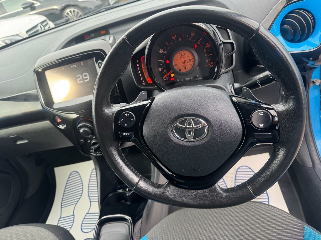 we are delighted to offer you a fantastic example of Toyota AYGO 1.0 VVT-i x-cite x-shift Euro 6 5dr Automatic , full toyota dealer service history, 9 services. 6 months nationwide warranty and breakdown cover, MOT valid until 28 July 2026, 4 GOOD tyres, good spec with big media screen sat nav, rear view camera, Bluetooth USB audio lots more, RUNS AND DRIVES NICE AND SMOOTH, GOOD CONDITION INSIDE AND OUT, hpi clear, warranted mileage, full vosa history, comes with all document spare key and spare wheel, all our cars are inspected and full valeted, inspection test drive and part exchange welcome, all major credit debt and online payments accepted, nationwide delivery available, please visit our website www.motorvillageltd.co.uk