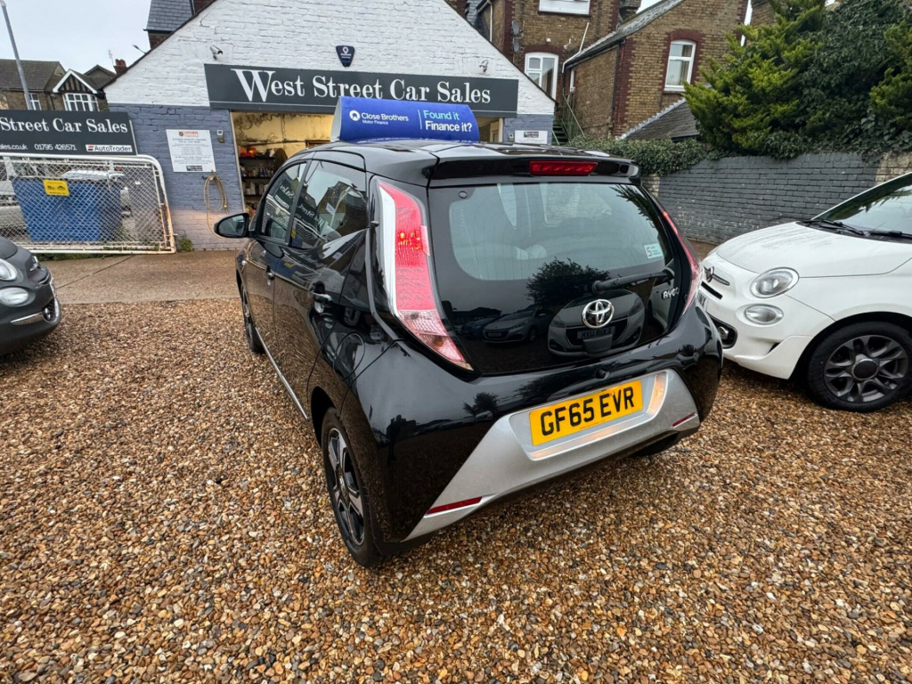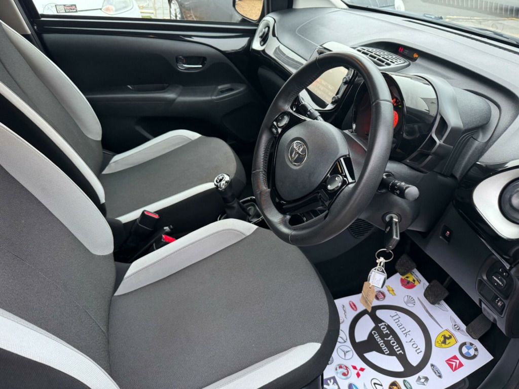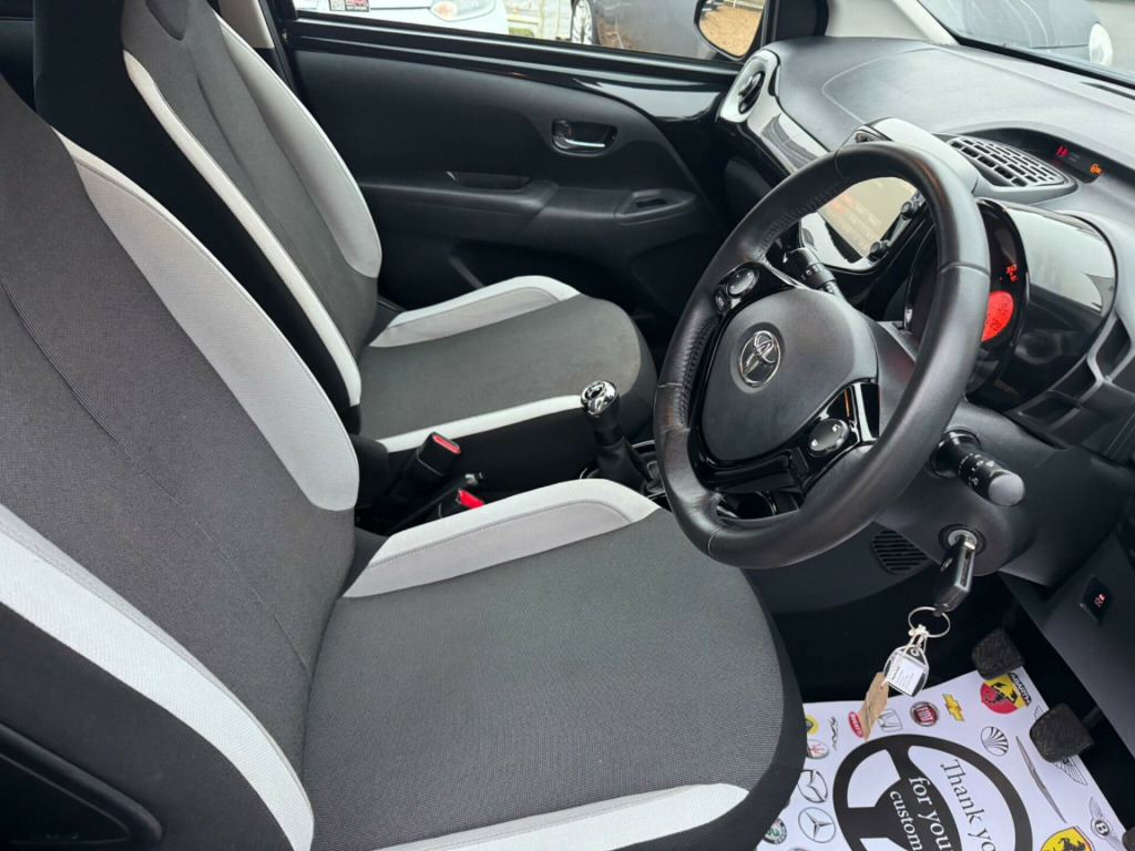 2015 Toyota AYGO VVT-i x-elusive , with Full Toyota Service history and only 60,294 miles. 2 keys, fully HPI clear, and only £20 per year road tax. Toyota service carried out as follows 14,514 miles 21,823 miles 32,918 miles 37,714 miles 39,328 miles 45,572 miles 52,962 miles 58,980 miles 59,407 miles Toyotas 1.0L economical petrol engine, ULEZ compliant so no charge, £20 road tax for 12 months , x-clusiv trim model comes with a useful rear view camera for easier parking, and Bluetooth connectivity for music streaming and handsfree calls. Enjoy the convenience of automatic air conditioning for a comfortable cabin temperature, and a dusk sensor that automatically turns on the headlights when it gets dark. West Street Car Sales LTD Key Features & Highlights:? HPI clear ? Full main dealer service history ?£20 road tax? 2 keys ? reverse camera LONG MOT (Drive worry-free with a valid MOT in place).All cars come recently serviced. ?Warranty packages: 3 Months, 6 Months 12 Months or 15 months Available (including Parts & Labour).Driveway Insurance Arranged at cost: Get on the road hassle-free from day one. All vehicles are HPI Clear?: Verified clean history for worry free ownership. All Used Vehicles are Subject to an indemnity Fee £199*Delivery available to make your buying process that bit more convenient.Part Exchange Welcome: Upgrade to a newer car using your current car as a down payment. Finance your next purchase in house with our multiple market options. All Mechanical Inspections welcomed for your full piece of mind. With our expert knowledge in our industry We price our cars in line with their age mileage and condition. ??For further details or to arrange a test drive please do not hesitate to give us a call and a friendly member of our sales team will be more than happy to help you.01795426571 weststreetcarsales6971gmail.comwww.weststreetcarsales.co.uk in alloy wheels - 5 spoke - machine-faced black centre cap and chrome surround, 3-spoke leather steering wheel, abs - anti lock braking system, am-fm radio, air vent surrounds - silver grey, airbags - curtain, airbags - driver, airbags - front passenger, airbags - front passenger cut-off switch, airbags - front side, automatic air conditioning, bluetooth connectivity, bluetooth music streaming, body coloured door mirrors, carpet mats, centre console - gloss black, chrome insert on gear shift, chrome inside door handles, clean air filter, cupholders - front, cupholders - rear, dab digital radio, daytime running lights - led, door handles - body coloured, driver and front passenger sun visors, dusk sensor, ebs - emergency brake signal, electric power steering - eps, electric and heated door mirrors, front 12v power outlet, front console box, front fog lights, front power windows, front x-tension - super chrome, gear shift surround - gloss black, gloss black dashboard, glovebox, hac - hill start assist control, headlights - halogen, high mounted rear brake light, isofix child restraint system, immobiliser, instrument panel - piano black, interior light, intermittent windscreen wipers, leather gear shift knob, mirror link, mirror on sun visors, rear headrests, rear spoiler, rear view camera, rear window defogger, reclining and sliding front seats, remote central locking, seat belt warning - driver, seat belt warning - front passenger, seat belt warning - rear, seats - 50-50 split folding rear, seats - drivers height adjustment, speakers x4, speed limiter, steering wheel - audio controls, steering wheel - manual tilt adjustment, steering wheel - multifunction, storage - door pockets, sunvisor - driver and passenger with cover and light, super chrome diffuser, super chrome front x, tachometer, tonneau cover - retractable, tyre pressure warning system, tyre repair kit, usb and aux in, vsc - vehicle stability control, x-touch - 7in touch screen