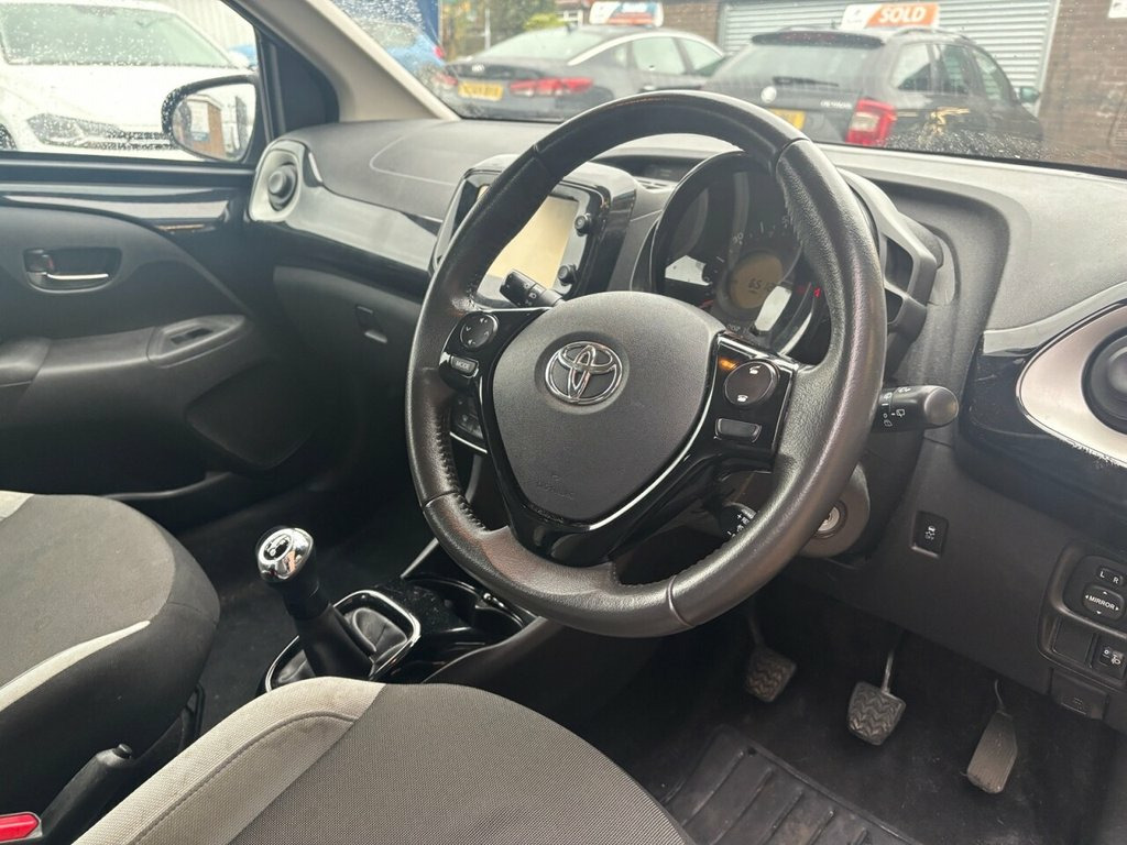 Scott's of Leeds used Car Sales are pleased to offer this TOYOTA AYGO 1.0 VVT-i x-clusiv Hatchback 5 Door Petrol Manual in Black. The car is in good condition throughout, in the best colour combination and a great specification including Cruise control, Bluetooth, AUX and USB, alloy wheels, reverse camera, isofix, and much much more. The car will be supplied with an up to date service record having just been serviced in our Workshop, an MOT until November 2026 and 2 Keys ready to drive away. £20 Road Tax and great MPG. 3 MONTH NATIONWIDE WARRANTY provided with all vehicles. NATIONWIDE DELIVERY also available. A guaranteed 12 Months MOT can be added for an extra £100. DISCLAIMER: The above specification is true and correct. Any other specification listed elsewhere can sometimes be incorrect. Please check with Sales Executive to clarify this if needed prior to purchase. 15in Alloy Wheels - 5 Spoke - Machine-Fa, 3-Spoke Leather Steering Wheel, ABS - Anti Lock Braking System, AM-FM Radio, Air Vent Surrounds - Silver Grey, Airbags - Curtain, Airbags - Driver, Airbags - Front Passenger, Airbags - Front Passenger Cut-Off Switch, Airbags - Front Side, Automatic Air Conditioning, Bluetooth Connectivity, Bluetooth Music Streaming, Body Coloured Door Mirrors, Carpet Mats, Centre Console - Gloss Black, Chrome Insert on Gear Shift, Chrome Inside Door Handles, Clean Air Filter, Cupholders - Front, Cupholders - Rear, DAB Digital Radio, Daytime Running Lights - LED, Door Handles - Body Coloured, Driver and Front Passenger Sun Visors, Dusk Sensor, EBS - Emergency Brake Si