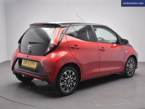 The Toyota Aygo 1.0 VVT-i x-clusiv combines a responsive 1.0-litre petrol engine with 69hp, delivering 0-62mph in 14.2 seconds and up to 65.7mpg in this front-wheel-drive setup with a precise 5-speed manual transmission. The x-clusiv trim offers a stylish blend of features and fun with 15-inch alloy wheels and a modern interior for lively urban motoring Navigate effortlessly with Bluetooth, ensuring seamless connectivity on every journey. Parking is a breeze thanks to the reverse camera and parking sensors, providing clear visibility and confidence in tight spaces. Stay comfortable with climate control, offering personalized cooling year-round. Cruise control with speed limiter enhances relaxation on highways. The push-button start adds daily convenience. The spacious five-door hatchback design includes a 251-litre boot for practicality. 15in Alloy Wheels - Machine-Faced - Silv, 3-Spoke Leather Steering Wheel, 4 Seat Capacity, 4 Speaker Sound System, 7in x-touch Multimedia System, ABS - Anti Lock Braking System, Analogue Tachometer, Auto Headlights, Automatic Air Conditioning, Carpet Mats with Highlights, Chrome Insert on Gear Shift, Clean Air Filter, Cupholder - Front and Rear, DAB Digital Radio, Data Communication Module, Daytime Running Lights - LED and Rear LE, Door Handles - Body Coloured, Door Mirrors - Black, Electric Front Windows, Electric Power Steering - EPS, Electrically Adjustable Heated Door Mirr, Emergency Brake-Light Signal - EBS - Haz, Front 12V Power Outlet, Front Fog Lights, Front Passenger Airbag On-Off S