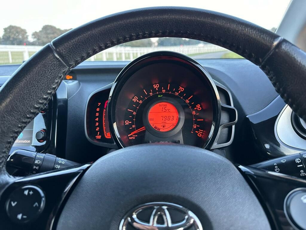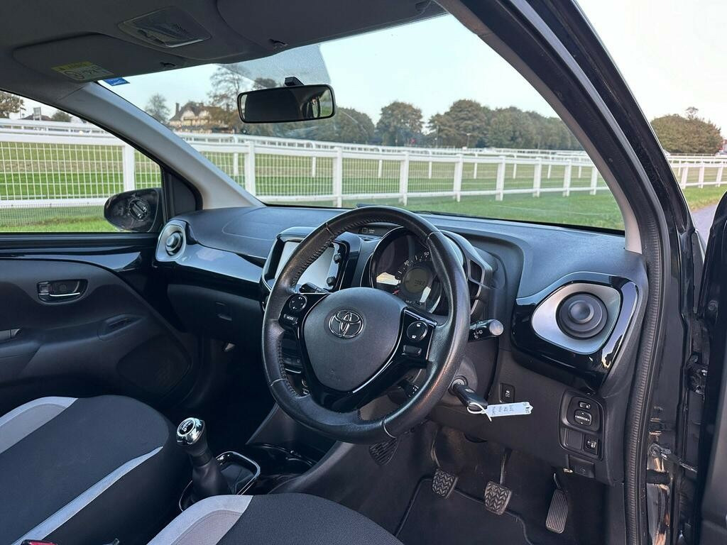 Toyota Aygo 1.0 VVT-i X-Clusiv 2016 (65) Finished in sleek Black with stylish Black & Grey interior and Diamond-Cut Alloy Wheels A superb example of the ever-popular Toyota Aygo, combining modern style, efficiency, and the legendary Toyota reliability.This 1.0L Petrol model is an ideal first car, daily commuter, or all-round city hatchback, offering low running costs and fantastic practicality. The Toyota Aygo has long been a favourite among drivers thanks to its bulletproof reliability, low insurance group, and excellent fuel economy. Its compact size makes it perfect for town driving, while its smart looks and well-equipped interior ensure every journey is enjoyable.Features & Specification 1.0L VVT-i Petrol Engine 5-Speed Manual Gearbox ULEZ Compliant,drive freely in all low emission zones Touchscreen Multimedia Display Bluetooth, USB & Auxiliary Connectivity Steering Wheel-Mounted Audio Controls Cruise Control Air Conditioning Electric Windows Remote Central Locking with 2 Keys Heated Rear Windscreen Spacious Boot with Split-Folding Rear Seats Isofix Child Seat Mounts 15-inch Diamond-Cut Alloy WheelsService & Ownership Full Service History 79,000 miles from new 2 Previous Keepers MOT until 08/12/2026 2 Keys The Toyota Aygo is one of the UK's most trusted small cars famous for its outstanding reliability, low ownership costs, and fun-to-drive nature.With road tax at just 20 per year, excellent fuel economy, and cheap insurance, it's a perfect choice for new drivers or anyone looking for affordable, dependable motoring.Toyota's reputation for long-lasting quality means this Aygo offers true peace of mind and effortless ownership and a fantastic example of a smart, reliable, and efficient hatchback ready to drive away and enjoy today. Perfect for new drivers or anyone seeking dependable and affordable motoring.Warranty options available of up to 48 months. Part exchange welcome. Up to 30 other cars with low insurance groups on site.For any additional information or to arrange a viewing at our Epsom based forecourt please call or text. in alloy wheels - 5 spoke - machine-faced black centre cap and chrome surround, body coloured door mirrors, chrome inside door handles, door handles - body coloured, electric and heated door mirrors, front power windows, front x-tension - super chrome, intermittent windscreen wipers, rear spoiler, rear window defogger, super chrome diffuser, super chrome front x, tyre repair kit, 3-spoke leather steering wheel, air vent surrounds - silver grey, automatic air conditioning, carpet mats, centre console - gloss black, chrome insert on gear shift, clean air filter, cupholders - front, cupholders - rear, driver and front passenger sun visors, front console box, gear shift surround - gloss black, gloss black dashboard, glovebox, instrument panel - piano black, interior light, leather gear shift knob, mirror on sun visors, rear headrests, reclining and sliding front seats, seats - 50-50 split folding rear, seats - drivers height adjustment, steering wheel - audio controls, steering wheel - manual tilt adjustment, steering wheel - multifunction, storage - door pockets, sunvisor - driver and passenger with cover and light, tonneau cover - retractable, abs - anti lock braking system, airbags - curtain, airbags - driver, airbags - front passenger, airbags - front passenger cut-off switch, airbags - front side, ebs - emergency brake signal, hac - hill start assist control, isofix child restraint system, immobiliser, remote central locking, seat belt warning - driver, seat belt warning - front passenger, seat belt warning - rear, vsc - vehicle stability control, am-fm radio, bluetooth connectivity, bluetooth music streaming, dab digital radio, front 12v power outlet, mirror link, speakers x4, usb and aux in, x-touch - 7in touch screen, daytime running lights - led, dusk sensor, front fog lights, headlights - halogen, high mounted rear brake light, electric power steering - eps, rear view camera, speed limiter, tachometer, tyre pressure warning system