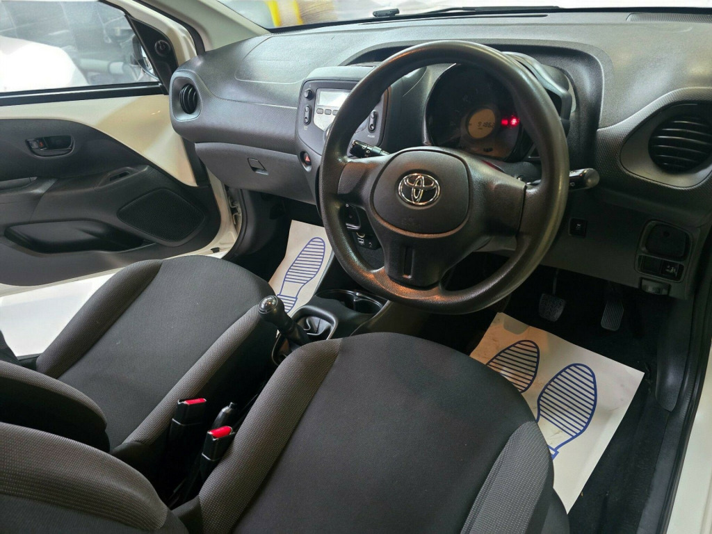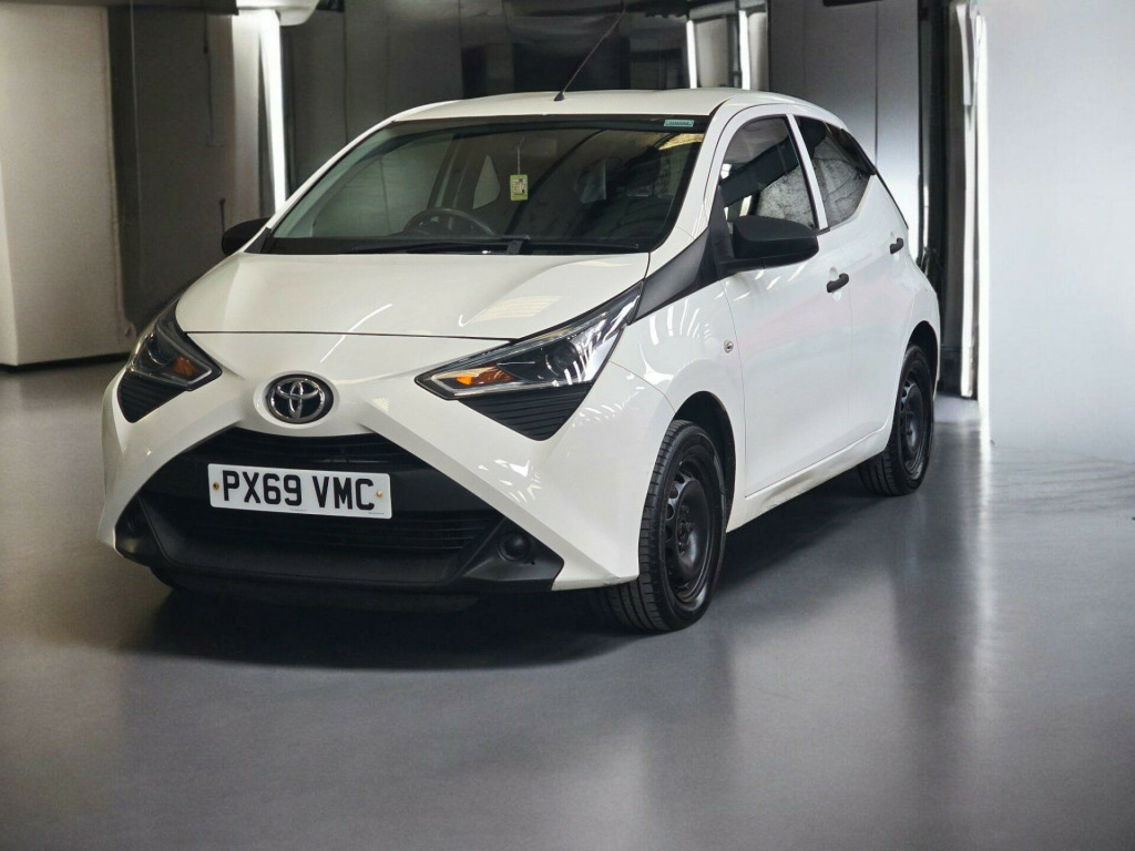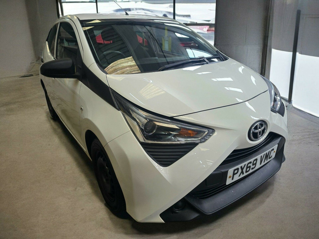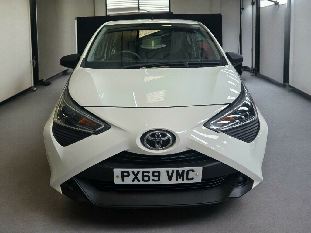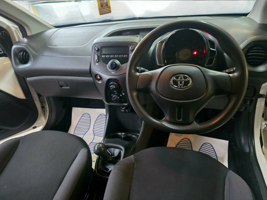 ***NEW SERVICE, MOT & FRONT BRAKES****One owner from new, this 2019 Toyota AYGO 1.0L VVT-i x is a smart choice. As a Euro 6 petrol, this AYGO comes in the x trim. You'll have peace of mind knowing it has a full service history and a long MOT, valid until November 2025. It also includes the Essential Protection Pack and the Protection Plus Pack.This AYGO stands out with its impressive fuel economy of 57 mpg, meaning fewer trips to the petrol station and more money in your pocket. It also falls into a low insurance group, which is great for keeping your premiums down. Furthermore, its low CO2 emissions mean you'll be contributing less to pollution. otection plus pack, 14in steel wheels, abs - anti lock braking system, black carbon textured diffuser, cupholder - front and rear, daytime running lights - led and rear leds, door handles - carbon effect, door mirrors - carbon textured, electric front windows, electric power steering - eps, emergency brake-light signal - ebs - hazard type, front 12v power outlet, front passenger airbag on-off switch, front seat belt reminder, glovebox, hac - hill start assist control, headlights - electronic levelling, isofix fixing points, integrated rear spoiler, manual rear view mirror, manual tilt steering wheel, projector halogen headlight with led tracer lights, rear seat belt reminder, rear window demister, recline and slide adjustment - driver and front passengers, seat belt - pre-tensioners and force limiters, space saver spare wheel, steering wheel - 3-spoke urethane, storage - front door pockets, storage - rear door pockets, storage pocket in central console, supplemental restraint system - srs - airbags - 6 airbags, tonneau cover, tyre pressure warning system, usb connection, unique design air vents with colour surround, urethane gear shift, vsc - vehicle stability control