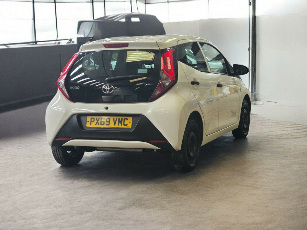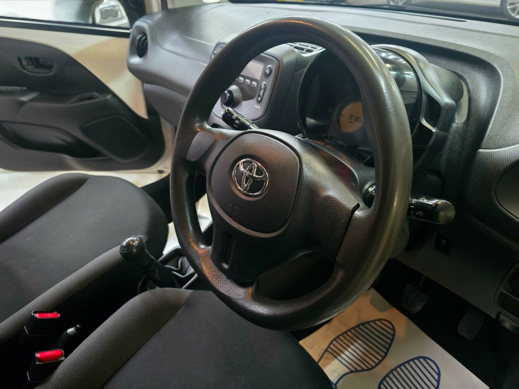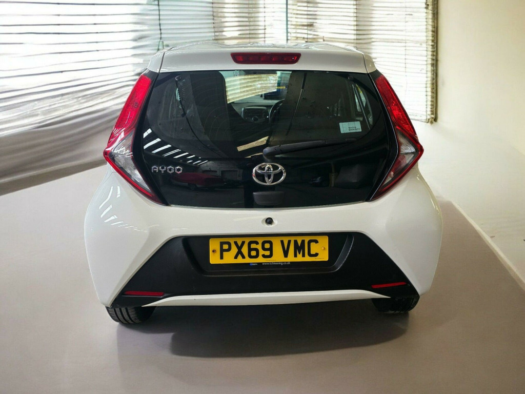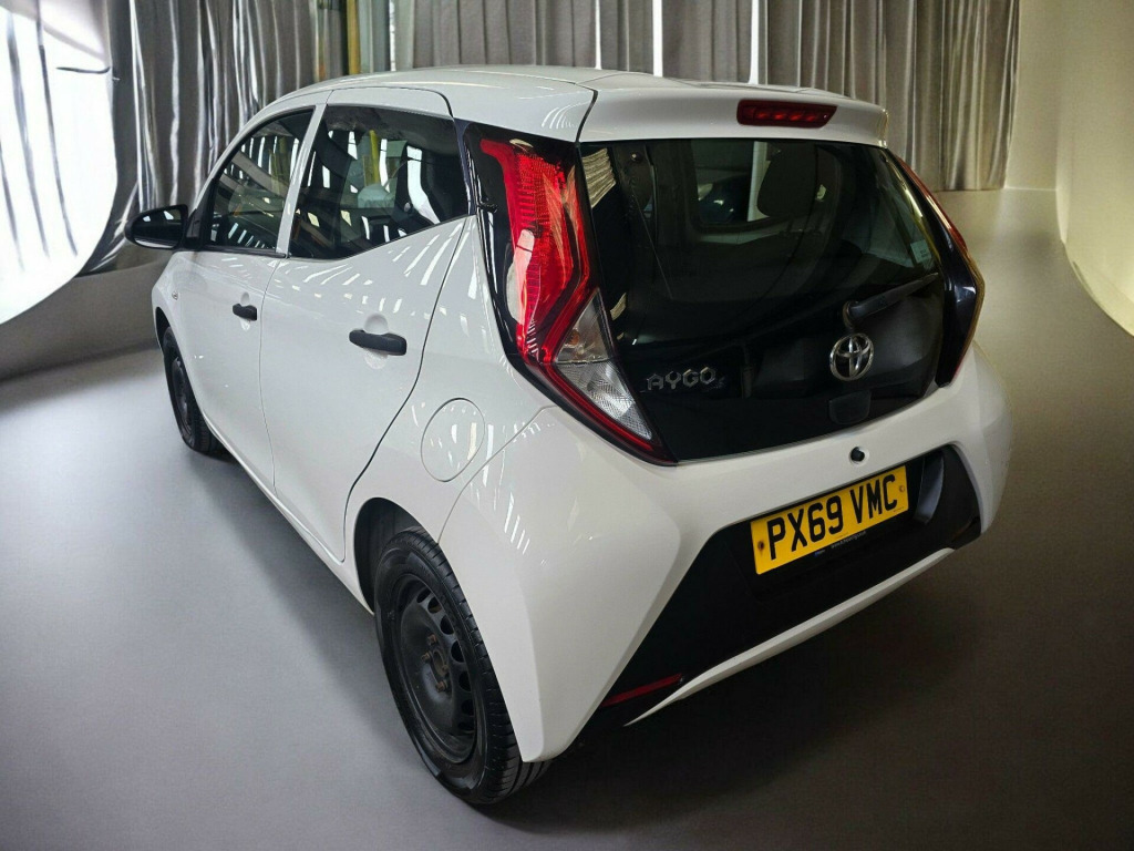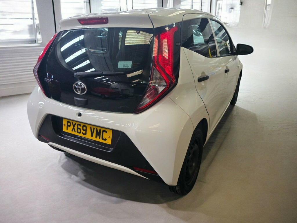 ***NEW SERVICE, MOT & FRONT BRAKES****One owner from new, this 2019 Toyota AYGO 1.0L VVT-i x is a smart choice. As a Euro 6 petrol, this AYGO comes in the x trim. You'll have peace of mind knowing it has a full service history and a long MOT, valid until November 2025. It also includes the Essential Protection Pack and the Protection Plus Pack.This AYGO stands out with its impressive fuel economy of 57 mpg, meaning fewer trips to the petrol station and more money in your pocket. It also falls into a low insurance group, which is great for keeping your premiums down. Furthermore, its low CO2 emissions mean you'll be contributing less to pollution. otection plus pack, 14in steel wheels, abs - anti lock braking system, black carbon textured diffuser, cupholder - front and rear, daytime running lights - led and rear leds, door handles - carbon effect, door mirrors - carbon textured, electric front windows, electric power steering - eps, emergency brake-light signal - ebs - hazard type, front 12v power outlet, front passenger airbag on-off switch, front seat belt reminder, glovebox, hac - hill start assist control, headlights - electronic levelling, isofix fixing points, integrated rear spoiler, manual rear view mirror, manual tilt steering wheel, projector halogen headlight with led tracer lights, rear seat belt reminder, rear window demister, recline and slide adjustment - driver and front passengers, seat belt - pre-tensioners and force limiters, space saver spare wheel, steering wheel - 3-spoke urethane, storage - front door pockets, storage - rear door pockets, storage pocket in central console, supplemental restraint system - srs - airbags - 6 airbags, tonneau cover, tyre pressure warning system, usb connection, unique design air vents with colour surround, urethane gear shift, vsc - vehicle stability control
