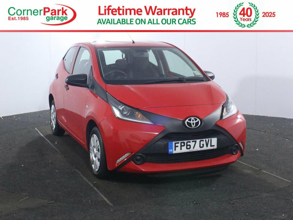 Service history with 3 services. Last serviced at 52,154 miles in January 2026. The 2017 Toyota Aygo 1.0 VVT-i "x" is the entry-level model in the Aygo range, offering a minimalist and highly affordable solution for city driving. Powered by Toyota's proven 1.0-litre three-cylinder VVT-i petrol engine, it produces 68 ps (69 bhp) and 95 Nm of torque, paired with a five-speed manual transmission. This Euro 6 compliant hatchback focuses on exceptional running costs, with an official combined fuel economy of 65.9 mpg and a top speed of 99 mph. Visually, the "x" grade is characterized by a "Carbon Textured" front X and front x-tension, as well as a black carbon textured rear diffuser. The interior of the Aygo "x" features a durable and simple design with "Carbon Effect" dashboard and centre console elements. Key features include electric front windows, a 3-spoke urethane steering wheel with manual tilt adjustment, and a urethane gear shift. For media and connectivity, the model is equipped with a USB connection and a 12V front power outlet. While it omits some of the higher-end tech like touchscreens, it provides all the essential functional equipment for reliable daily use. Safety is not compromised at the entry level, with the Aygo "x" featuring a comprehensive 6-airbag system (SRS), Hill Start Assist Control (HAC), and Vehicle Stability Control (VSC). The car is further equipped with ISOFIX child seat anchorage p 14in Steel Wheels, ABS - Anti Lock Braking System, Air Vent Surrounds - Carbon Effect, Black Carbon Textured Diffuser, Black Carbon Textured Front X, Carbon Effect Dashboard, Carbon Textured Front x-tension, Centre Console - Carbon Effect, Cupholder - Front and Rear, Daytime Running Lights - LED, Door Handles - Carbon Effect, Door Mirrors - Carbon Textured, EBS - Emergency Brake Signal, Electric Front Windows, Electric Power Steering - EPS, Front 12V Power Outlet, Front Passenger Airbag On-Off Switch, Front Seat Belt Reminder, Gear Shift Surround - Gloss Black, Glovebox, HAC - Hill Start Assist Control, Headlights - Electronic Levelling, Integrated Rear Spoiler, ISOFIX Fixing Points, Manual