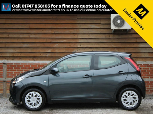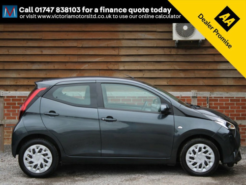 ***FOR VIEWINGS AND TEST DRIVES CALL US ON 01747 838103 TO BOOK AN APPOINTMENT***Well equipped and low mileage Aygo automatic fitted with Toyota's 1.0 litre petrol engine producing impressive power and economy finished in grey metallic with equipment including media system with apple carplay where you can mirror the apps from your phone onto the media screen of the car including Google maps and Spotify, rear parking camera, DAB radio, bluetooth, Bluetooth audio, media connections, air conditioning and more, 1 owner, only 12650 miles, service history***PART EXCHANGE AVAILABLE***USE THE FINANCE CALCULATOR ON OUR WEBSITE www.victoriamotorsltd.co.uk AND QUOTE YOURSELF A MONTHLY PAYMENT FIGURE TODAY WITH ZERO DEPOSITS AVAILABLE*** 15in Steel Wheels, 3-Spoke Leather Steering Wheel, 4 Seat Capacity, 7in x-touch Multimedia System, ABS - Anti Lock Braking System, Body Coloured Side Air Vent Surround, Chrome Insert on Gear Shift, Chrome Interior Door Handles, Clean Air Filter, Cupholder - Front and Rear, DAB Digital Radio, Daytime Running Lights - LED and Rear LE, Door Handles - Body Coloured, Door Mirrors - Body Colour, Electric Front Windows, Electric Power Steering - EPS, Electrically Adjustable Heated Door Mirr, Emergency Brake-Light Signal - EBS - Haz, Force Limiters on Rear Seatbelts, Front 12V Power Outlet, Front Passenger Airbag On-Off Switch, Front Seat Belt Reminder, Glovebox, HAC - Hill Start Assist Control, Hea