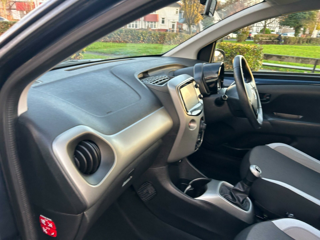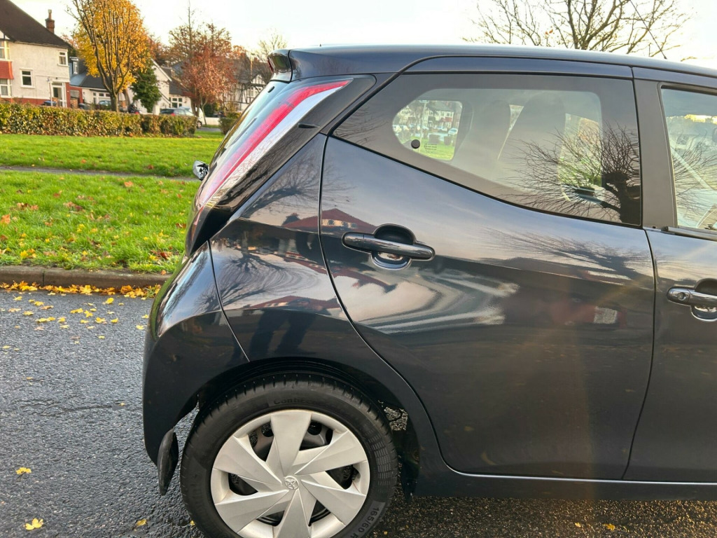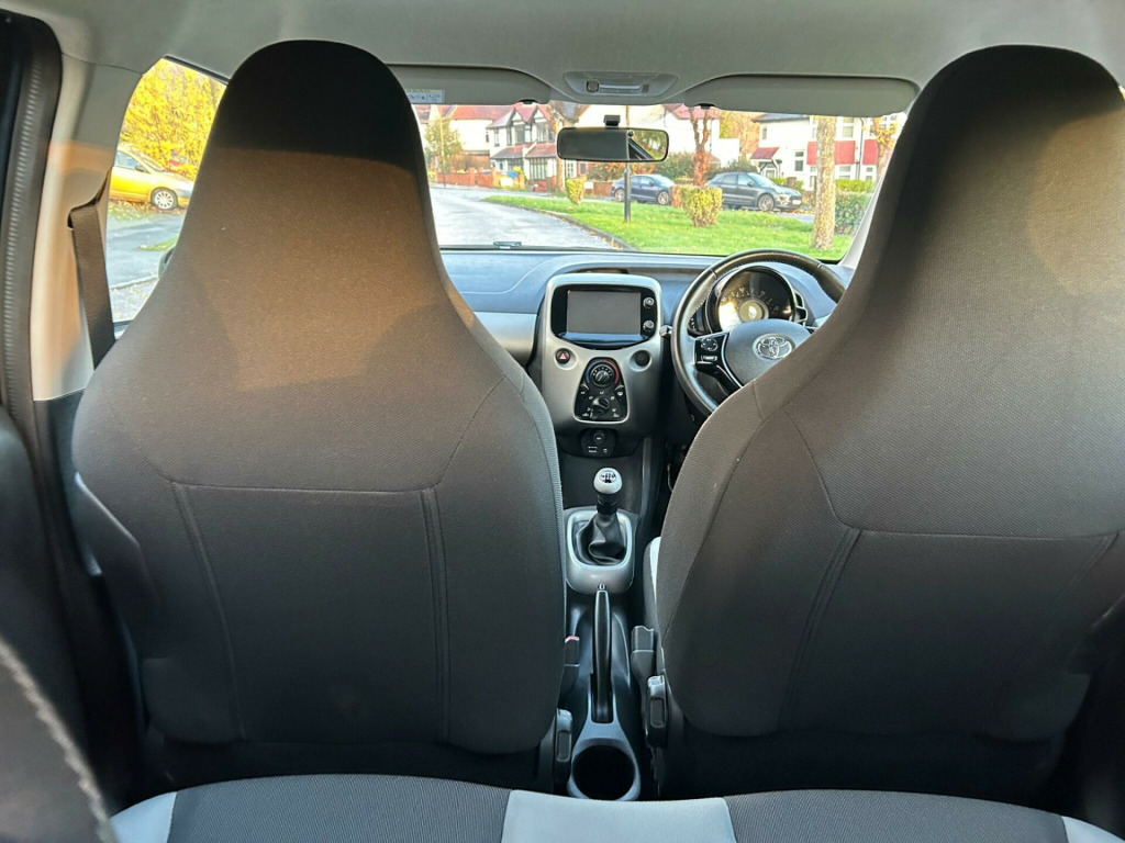 This 2016 Toyota AYGO VVT-i x-play boasts exceptionally low mileage, having covered just 6,000 miles, making it a truly remarkable find. This particular AYGO x-play is presented in a stylish grey interior, and features the x-touch infotainment system with a 7-inch touchscreen. For your convenience, it offers Bluetooth connectivity for hands-free calls and seamless Bluetooth music streaming. This vehicle comes with a clear vehicle history check and a full service history, ensuring peace of mind for its next owner.The appeal of this Toyota AYGO is further enhanced by its impressive fuel economy, achieving an outstanding 69 miles per gallon, which is significantly better than many other vehicles in its class. Its low CO2 emissions and low insurance group also contribute to making it a very economical choice for daily driving. With an MOT valid until October 2026, this AYGO x-play represents a smart and cost-effective motoring solution. in steel wheels - 6-spoke, 3-spoke leather steering wheel, abs - anti lock braking system, am-fm radio, air conditioning, air vent surrounds - carbon effect, airbags - curtain, airbags - driver, airbags - front passenger, airbags - front passenger cut-off switch, airbags - front side, black carbon effect diffuser, bluetooth connectivity, bluetooth music streaming, body coloured door mirrors, centre console - steel grey, clean air filter, cupholders - front, cupholders - rear, daytime running lights - led, door handles - body coloured, driver and front passenger sun visors, ebs - emergency brake signal, electric power steering - eps, electric and heated door mirrors, front 12v power outlet, front console box, front power windows, front x-tension - carbon effect, gear shift surround - steel grey, gloss black front x, glovebox, grey instrument panel, hac - hill start assist control, headlights - halogen, high mounted rear brake light, isofix child restraint system, immobiliser, interior light, intermittent windscreen wipers, leather gear shift knob, mirror on sun visors, rear headrests, rear spoiler, rear window defogger, reclining and sliding front seats, remote central locking, seat belt warning - driver, seat belt warning - front passenger, seat belt warning - rear, seats - 50-50 split folding rear, seats - drivers height adjustment, speakers x4, speed limiter, steel grey dashboard, steering wheel - audio controls, steering wheel - manual tilt adjustment, steering wheel - multifunction, storage - door pockets, sunvisor - driver and passenger with cover and light, tachometer, tonneau cover - retractable, tyre pressure warning system, tyre repair kit, usb and aux in, vsc - vehicle stability control, x-touch - 7in touch screen, outstand - grey, roof decals - full roof grey, gleam fabric - dark grey with light grey and white accents