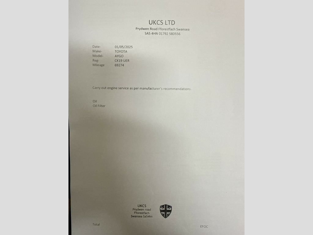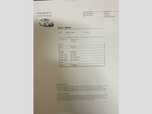 The 2019 Toyota AYGO x-play is a city car that combines practicality with modern technology. Equipped with a 1.0L petrol engine and manual air conditioning, this AYGO VVT-i x-play trim offers a comfortable and efficient driving experience. The integrated 7in x-touch multimedia system, complete with Bluetooth connectivity, ensures you stay connected and entertained on the go. Manoeuvring is made easy with the reversing camera, providing additional assistance when parking.LOOKING FOR CAR FINANCE? Take a look on our website for a free finance check that wont affect your credit score.This AYGO stands out with its impressive fuel economy of 57 mpg, meaning fewer trips to the petrol station and more money in your pocket. It also falls into a low insurance group, offering peace of mind with potentially lower premiums. Furthermore, its low CO2 emissions mean you can drive with a smaller carbon footprint, making it a responsible choice for the environment.. 15in Steel Wheels, 3-Spoke Leather Steering Wheel, 7in x-touch Multimedia System, ABS - Anti Lock Braking System, Adjustable Rear Headrests, Bluetooth Connectivity, Chrome Insert on Gear Shift, Chrome Inside Door Handles, Clean Air Filter, Cupholder - Front and Rear, DAB Digital Radio, Daytime Running Lights - LED and Rear LEDs, Door Handles - Body Coloured, Door Mirrors - Body Colour, Electric Front Windows, Electric Power Steering - EPS, Electrically Adjustable Heated Door Mirrors, Emergency Brake-Light Signal - EBS - Hazard Type, Front 12V Power Outlet, Front Passenger Airbag On-Off Switch, Front Seat Belt Reminder, Glovebox, HAC - Hill Start Assist Control, Headlights - Electronic Levelling, ISOFIX Fixing Points, Integrated Rear Spoiler, Leather Gear Shift, Manual Air Conditioning, Manual Rear View Mirror, Manual Tilt Steering Wheel, Projector Halogen Headlight with LED Tracer Lights, Rear Headrests x2, Rear Seat Belt Reminder, Rear Window Demister, Recline and Slide Adjustment - Driver and Front Passengers, Reversing Camera, Seat Belt - Pre-Tensioners and Force Limiters, Seats - 50-50 Split Folding Rear, Seats - Drivers Height Adjustment, Steering Wheel - Audio and Telephone Controls, Storage - Front Door Pockets, Storage - Rear Door Pockets, Storage Pocket in Central Console, Supplemental Restraint System - SRS - Airbags - 6 Airbags, Tonneau Cover, Tyre Pressure Warning System, Tyre Repair Kit, USB Connection, VSC - Vehicle Stability Control.