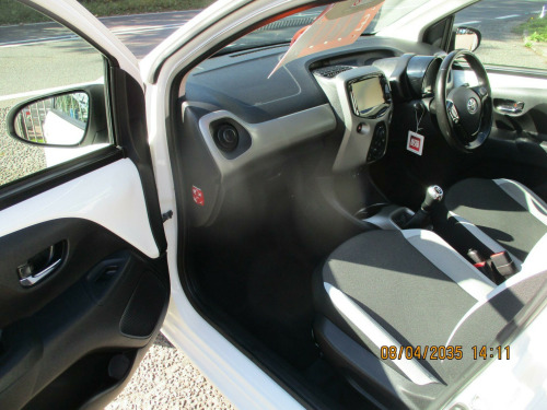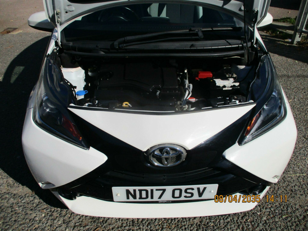 AIRCON+CRUISE+REAR CAMERA,this is a lovely looking very well cared for aygo thats in very good condition throughout and drives great.there are 6 recorded services and will have a new mot test on sale.good extras pack.finance arranged,rac warranty. in steel wheels, 15in wheel caps, 3-spoke leather steering wheel, abs - anti lock braking system, am-fm radio, air conditioning, air vent surrounds - carbon effect, airbags - curtain, airbags - driver, airbags - front passenger, airbags - front passenger cut-off switch, airbags - front side, black carbon effect diffuser, bluetooth connectivity, body coloured door mirrors, centre console - steel grey, chrome insert on gear shift, chrome inside door handles, clean air filter, cupholders - front, cupholders - rear, dab digital radio, daytime running lights - led, door handles - body coloured, driver and passenger sun visors with mirror, ebs - emergency brake signal, electric power steering - eps, electric and heated door mirrors, front 12v power outlet, front power windows, front x-tension - carbon effect, gear shift surround - steel grey, gloss black front x, glovebox, hac - hill start assist control, headlights - electronic levelling, high mounted rear brake light, isofix child restraint system, immobiliser, interior light, intermittent windscreen wipers, leather gear shift knob, projector halogen headlight with led tracer lights, rear headrests, rear spoiler, reclining front seats, remote central locking, seat belt - pre-tensioners and force limiters, seat belt reminder - front and rear, seats - 50-50 split folding rear, seats - drivers height adjustment, seats - sliding front, speed limiter, steel grey dashboard, steering wheel - audio controls, steering wheel - manual tilt adjustment, storage - central console, storage - front door pockets, storage - rear door pockets, tonneau cover - retractable, tyre pressure warning system, tyre repair kit, usb and aux in, vsc - vehicle stability control