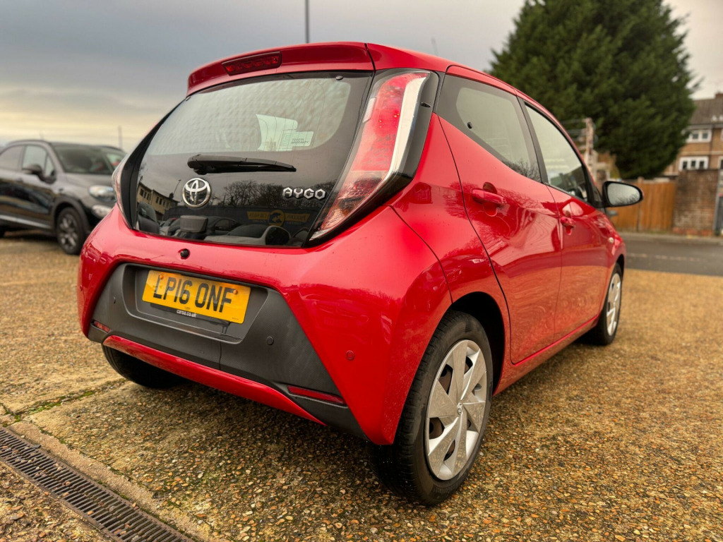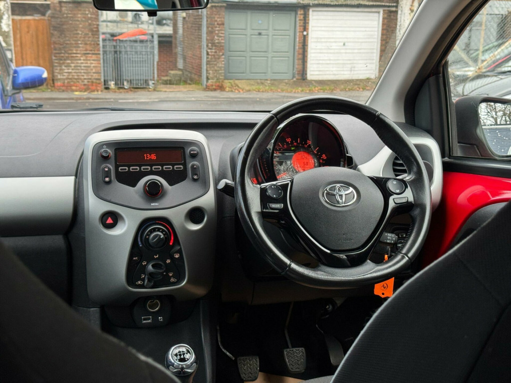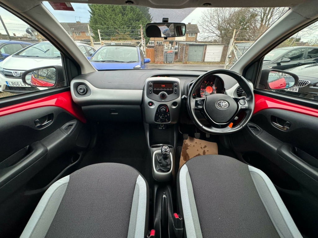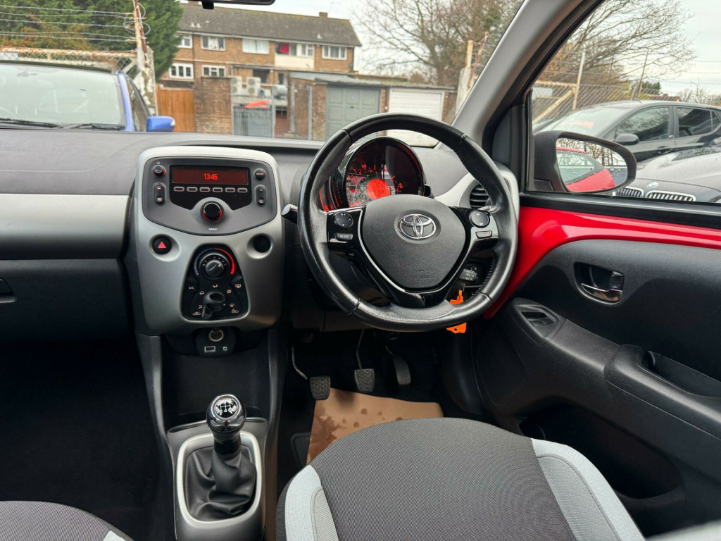 |||| THE USED CAR: |||| Pavillion Car Sales is pleased to offer an excellent example of a Toyota AYGO 1.0 VVT-i x-play Euro 6 in the x-play Trim!This sleek Red / stylish city car is well equipped with lots of great features including air conditioning, Bluetooth connectivity for handsfree calls and music streaming, rear parking sensors, steering wheel audio controls, LED daytime running lights, USB & Aux input, and more. The responsive 1.0 litre petrol engine delivers an impressive 68.9–69mpg, boasting 69 horsepower. With just £20 annual road tax (Paid till December 2026) and ULEZ compliance, this ultra-economical and practical choice is perfect for city driving and first-time drivers alike.|||| THE HISTORY: |||| Well MaintainedHaving only 2 former keepers, this used car has been well maintained inside and out. A thorough mechanical inspection has been carried out and a clear report is provided. It comes with a FULL SERVICE HISTORY as follows (6 Total Services): 1st at 9440, 2nd at 21932, 3rd at 28945, 4th at 40211, 5th at 45250, 6th at 64147. It also had it's clutch replaced in 2022.|||| WHAT'S INCLUDED: |||| Benefits & Peace of MindExperience peace of mind with a LONG MOT till 20/09/2026, 12 months complimentary AA breakdown cover, and a 3-month warranty extendable to a nationwide 36 months with the AA. 5-day Drive away cover is available, and we can assist with road tax. 2 Keys.|||| ABOUT US: |||| The Family Run & Award-Winning Used Car DealershipWelcome to Pavillion Car Sales – a multi-award-winning, family-run car dealership with over a decade of expertise we have used cars for sale in Brighton & Crawley. As an AA-authorized & Trading Standards-approved used car dealership, we're committed to offering high-quality second-hand vehicles for sale at competitive prices. Each car undergoes a meticulous selection process to meet our high standards, finding you a perfect balance between quality, reliability, and value. PAVILION CAR SALES – CRAWLEY - READY TO GO. 15in Steel Wheels, 15in Wheel Caps, 3-Spoke Leather Steering Wheel, ABS - Anti Lock Braking System, AM-FM Radio, Air Conditioning, Air Vent Surrounds - Carbon Effect, Airbags - Curtain, Airbags - Driver, Airbags - Front Passenger, Airbags - Front Passenger Cut-Off Switch, Airbags - Front Side, Black Carbon Effect Diffuser, Bluetooth Connectivity, Body Coloured Door Mirrors, Centre Console - Steel Grey, Clean Air Filter, Cupholders - Front, Cupholders - Rear, Daytime Running Lights - LED, Door Handles - Body Coloured, Driver and Passenger Sun Visors with Mirror, EBS - Emergency Brake Signal, Electric Power Steering - EPS, Electric and Heated Door Mirrors, Front 12V Power Outlet, Front Power Windows, Front x-tension - Carbon Effect, Gear Shift Surround - Steel Grey, Gloss Black Front X, Glovebox, HAC - Hill Start Assist Control, Headlights - Electronic Levelling, High Mounted Rear Brake Light, ISOFIX Child Restraint System, Immobiliser, Interior Light, Intermittent Windscreen Wipers, Leather Gear Shift Knob, Projector Halogen Headlight with LED Tracer Lights, Rear Headrests, Rear Spoiler, Reclining Front Seats, Remote Central Locking, Seat Belt - Pre-Tensioners and Force Limiters, Seat Belt Reminder - Front and Rear, Seats - 50-50 Split Folding Rear, Seats - Drivers Height Adjustment, Seats - Sliding Front, Speakers x4, Speed Limiter, Steel Grey Dashboard, Steering Wheel - Audio Controls, Steering Wheel - Manual Tilt Adjustment, Storage - Front Door Pockets, Storage - Rear Door Pockets, Tonneau Cover - Retractable, Tyre Pressure Warning System, Tyre Repair Kit, USB and Aux In, VSC - Vehicle Stability Control. Full service history