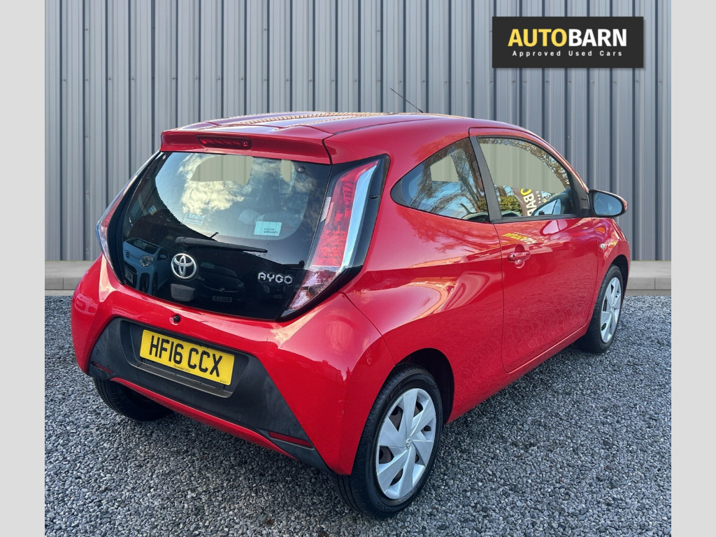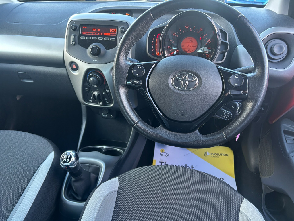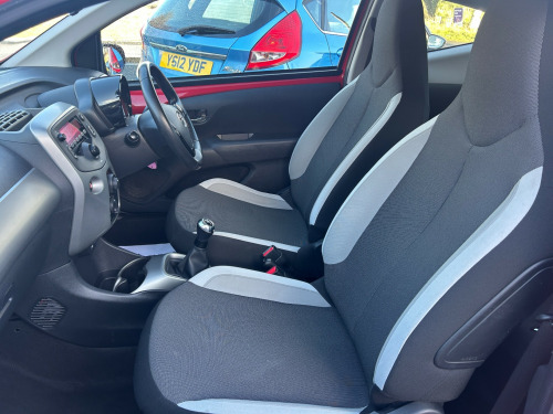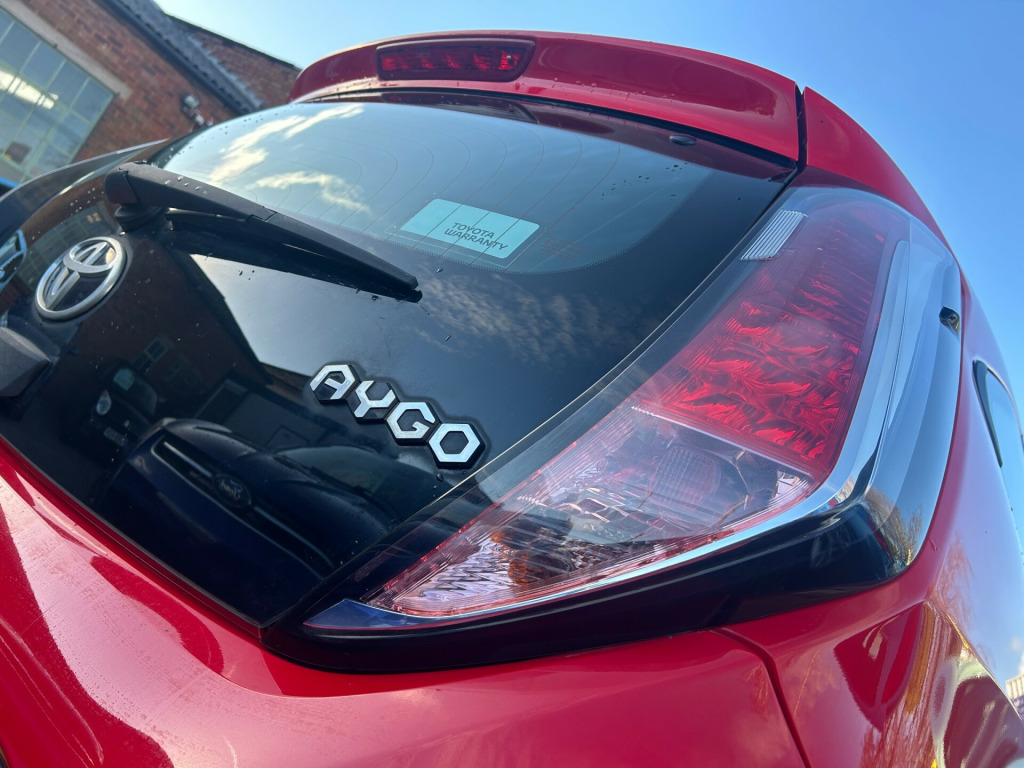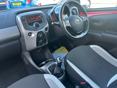 This 2016 Toyota Aygo 1.0 VVT-i x-play Hatchback with only 28000 miles on the clock is a compact, fuel-efficient vehicle perfect for city driving. Powered by a 68 ps petrol engine and equipped with a manual transmission, this 3-door, 4-seat hatchback is ULEZ compliant, making it an environmentally friendly choice. Its sleek design features 15in steel wheels with wheel caps, a black carbon effect diffuser, body-coloured door mirrors, and chrome inside door handles. With its practicality and reliability, this Toyota Aygo is the ideal urban runaround, offering style and efficiency in one affordable package. in steel wheels, 15in wheel caps, black carbon effect diffuser, body coloured door mirrors, chrome inside door handles, door handles - body coloured, electric and heated door mirrors, front power windows, front x-tension - carbon effect, gloss black front x, intermittent windscreen wipers, rear spoiler, tyre repair kit, 3-spoke leather steering wheel, air conditioning, air vent surrounds - carbon effect, centre console - steel grey, chrome insert on gear shift, clean air filter, cupholders - front, cupholders - rear, driver and passenger sun visors with mirror, gear shift surround - steel grey, glovebox, interior light, leather gear shift knob, rear headrests, reclining front seats, seats - 50-50 split folding rear, seats - drivers height adjustment, seats - sliding front, steel grey dashboard, steering wheel - audio controls, steering wheel - manual tilt adjustment, storage - central console, storage - front door pockets, tonneau cover - retractable, abs - anti lock braking system, airbags - curtain, airbags - driver, airbags - front passenger, airbags - front passenger cut-off switch, airbags - front side, ebs - emergency brake signal, hac - hill start assist control, isofix child restraint system, immobiliser, remote central locking, seat belt - pre-tensioners and force limiters, seat belt reminder - front and rear, vsc - vehicle stability control, am-fm radio, bluetooth connectivity, dab digital radio, front 12v power outlet, usb and aux in, daytime running lights - led, headlights - electronic levelling, high mounted rear brake light, projector halogen headlight with led tracer lights, electric power steering - eps, speed limiter, tyre pressure warning system