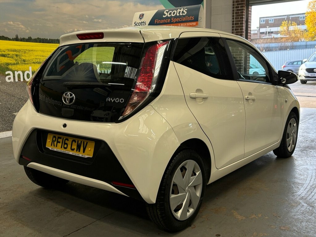 Scott's of Leeds used Car Sales are pleased to offer this TOYOTA AYGO 1.0 VVT-i x-play Hatchback 5 Door Petrol Manual in White. The car is in good condition throughout, in the best colour combination and a great specification including Bluetooth, DAB digital radio, USB point, Aux point, Speed limiter, Electric front windows, Isofix, and much much more. The car will be supplied with an up to date service record including 9 services, an MOT until December 2026 and 2 Keys ready to drive away. £20 Road Tax and great MPG. 3 MONTH NATIONWIDE WARRANTY provided with all vehicles. NATIONWIDE DELIVERY also available. A guaranteed 12 Months MOT can be added for an extra £100. DISCLAIMER: The above specification is true and correct. Any other specification listed elsewhere can sometimes be incorrect. Please check with Sales Executive to clarify this if needed prior to purchase. 15in Steel Wheels, 15in Wheel Caps, 3-Spoke Leather Steering Wheel, ABS - Anti Lock Braking System, AM-FM Radio, Air Conditioning, Air Vent Surrounds - Carbon Effect, Airbags - Curtain, Airbags - Driver, Airbags - Front Passenger, Airbags - Front Passenger Cut-Off Switch, Airbags - Front Side, Black Carbon Effect Diffuser, Bluetooth Connectivity, Body Coloured Door Mirrors, Centre Console - Steel Grey, Chrome Insert on Gear Shift, Chrome Inside Door Handles, Clean Air Filter, Cupholders - Front, Cupholders - Rear, DAB Digital Radio, Daytime Running Lights - LED, Door Handles - Body Coloured, Driver and Passenger Sun Visors with Mir, EBS - Emergency Brake Signal, Electric Power Steering - EPS