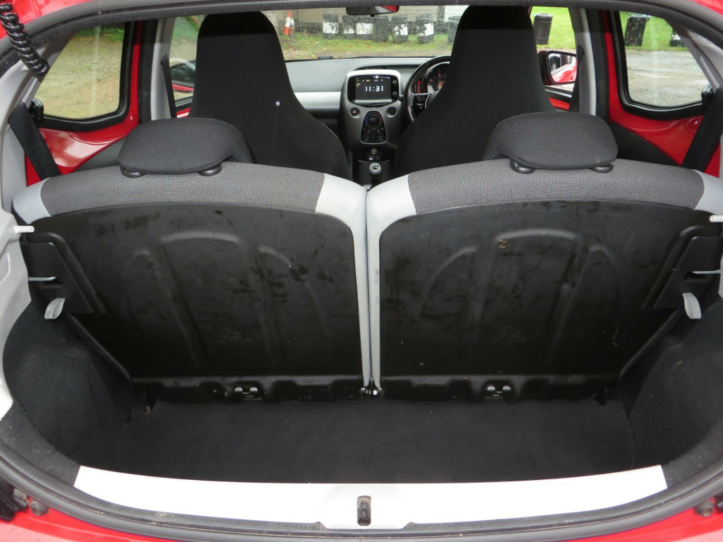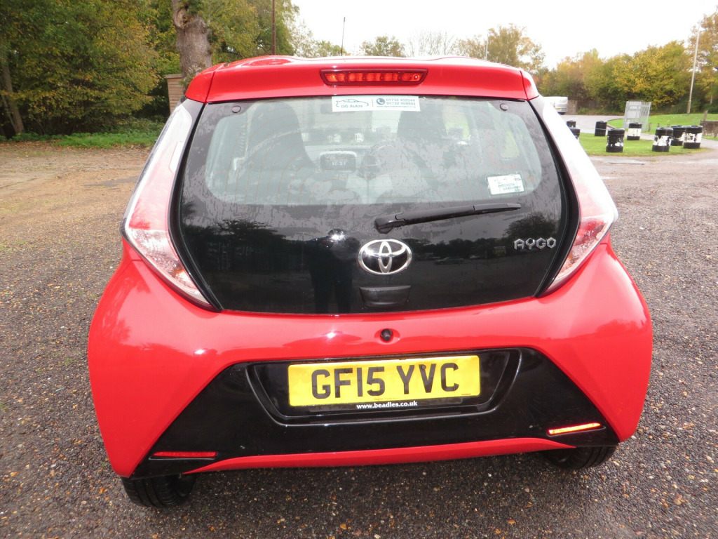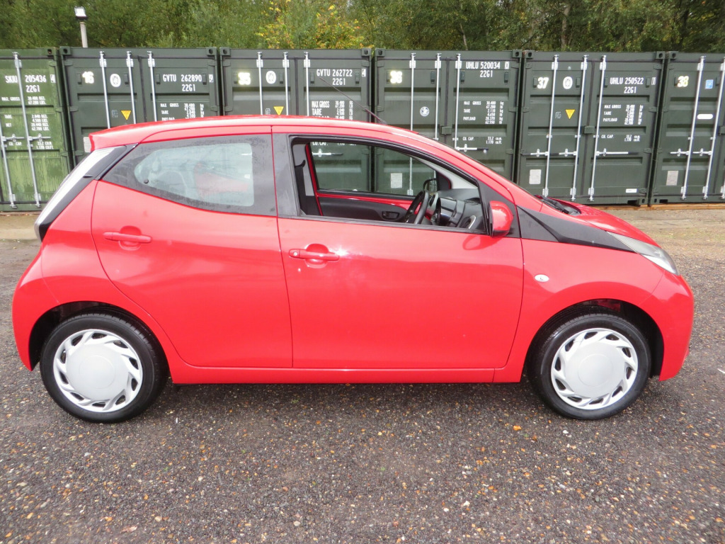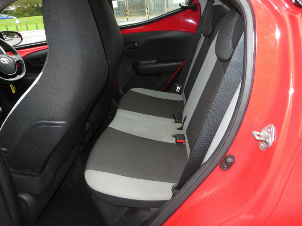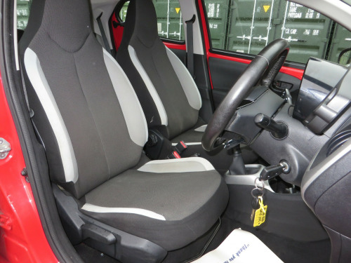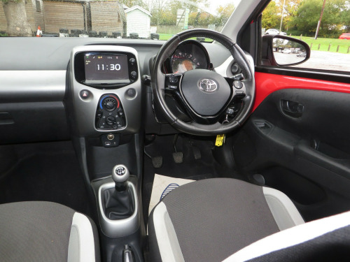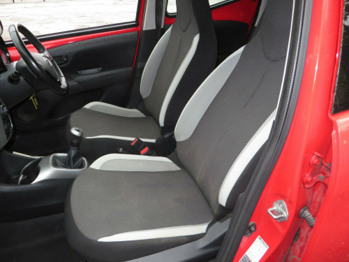 This 2015 Toyota Aygo 1.0 VVT-i x-play Hatchback with just 117976 miles is the perfect city car. Its compact size and 5 doors make it easy to drive through urban streets, while the 4 seats ensure you can bring along some friends. Powered by a reliable petrol engine, this car is ULEZ compliant and its MOT is valid until 08/10/2026. The manual transmission gives you full control on the road, while the 15in steel wheels and black carbon effect diffuser add a sporty touch to the exterior. Other features such as body coloured door mirrors and handles, as well as electric and heated door mirrors, make this Aygo both stylish and practical. Whether you're navigating the city or hitting the open road, this Toyota Aygo has got you covered. in steel wheels - 6-spoke, black carbon effect diffuser, body coloured door mirrors, door handles - body coloured, electric and heated door mirrors, front power windows, front x-tension - carbon effect, gloss black front x, intermittent windscreen wipers, rear spoiler, rear window defogger, tyre repair kit, 3-spoke leather steering wheel, air conditioning, air vent surrounds - carbon effect, centre console - steel grey, clean air filter, cupholders - front, cupholders - rear, driver and front passenger sun visors, front console box, gear shift surround - steel grey, glovebox, grey instrument panel, interior light, leather gear shift knob, mirror on sun visors, rear headrests, reclining and sliding front seats, seats - 50-50 split folding rear, seats - drivers height adjustment, steel grey dashboard, steering wheel - audio controls, steering wheel - manual tilt adjustment, steering wheel - multifunction, storage - door pockets, sunvisor - driver and passenger with cover and light, tonneau cover - retractable, abs - anti lock braking system, airbags - curtain, airbags - driver, airbags - front passenger, airbags - front passenger cut-off switch, airbags - front side, ebs - emergency brake signal, hac - hill start assist control, isofix child restraint system, immobiliser, remote central locking, seat belt warning - driver, seat belt warning - front passenger, seat belt warning - rear, vsc - vehicle stability control, am-fm radio, bluetooth connectivity, bluetooth music streaming, front 12v power outlet, speakers x4, usb and aux in, daytime running lights - led, headlights - halogen, high mounted rear brake light, electric power steering - eps, speed limiter, tachometer, tyre pressure warning system