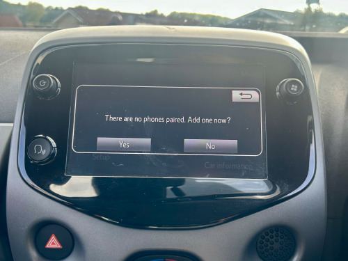 This 2021 Toyota Aygo 1.0 VVT-i x-play Hatchback with only 35000 miles is a reliable and efficient car perfect for city driving. With its ULEZ compliance and MOT expiring on 09/06/2026, you can rest assured that this petrol-powered hatchback meets all the necessary qualifications for urban use. The 5-door vehicle offers ample space for 4 passengers and comes equipped with Electric Front Windows, 15in Steel Wheels, Chrome Interior Door Handles, and Body Coloured Door Handles and Mirrors. This Euro 6 car with Safety Sense technology delivers 71 ps power, making it a safe and enjoyable ride for daily commutes. in steel wheels, chrome interior door handles, door handles - body coloured, door mirrors - body colour, electric front windows, electrically adjustable heated door mirrors, integrated rear spoiler, rear window demister, space saver spare wheel, 3-spoke leather steering wheel, 4 seat capacity, body coloured side air vent surround, chrome insert on gear shift, clean air filter, cupholder - front and rear, glovebox, leather gear shift, manual air conditioning, manual rear view mirror, manual tilt steering wheel, rear headrests x2, recline and slide adjustment - driver and front passengers, seats - 50-50 split folding rear, seats - drivers height adjustment, steering wheel - audio and telephone controls, storage - front door pockets, storage - rear door pockets, storage pocket in central console, tonneau cover, unique design air vents with colour surround, vanity mirror on driver and passengers sun visor, 7in x-touch multimedia system, dab digital radio, front 12v power outlet, smartphone integration - powered by pioneer, usb and aux connection, abs - anti lock braking system, emergency brake-light signal - ebs - hazard type, force limiters on rear seatbelts, front passenger airbag on-off switch, front seat belt reminder, hac - hill start assist control, isofix fixing points, rear seat belt reminder, seat belt - pre-tensioners and force limiters, supplemental restraint system - srs - airbags - 6 airbags, toyota safety sense, vsc - vehicle stability control, daytime running lights - led and rear leds, headlights - electronic levelling, led rear brake lights, projector halogen headlight with led tracer lights, electric power steering - eps, reversing camera, tyre pressure warning system