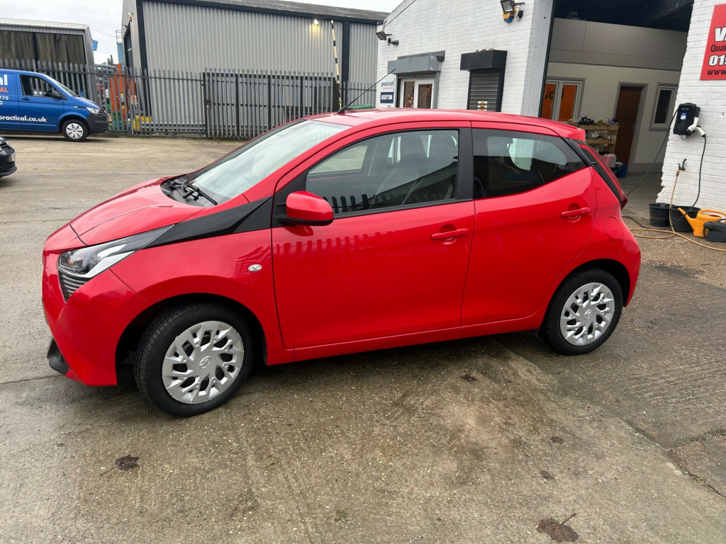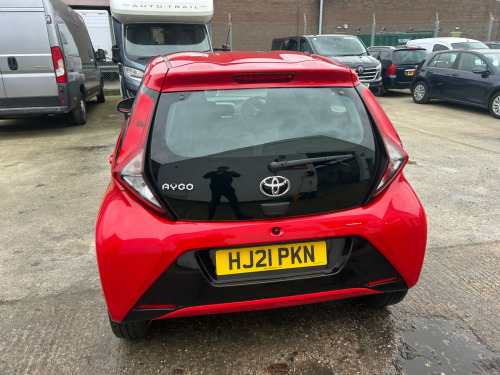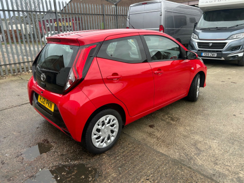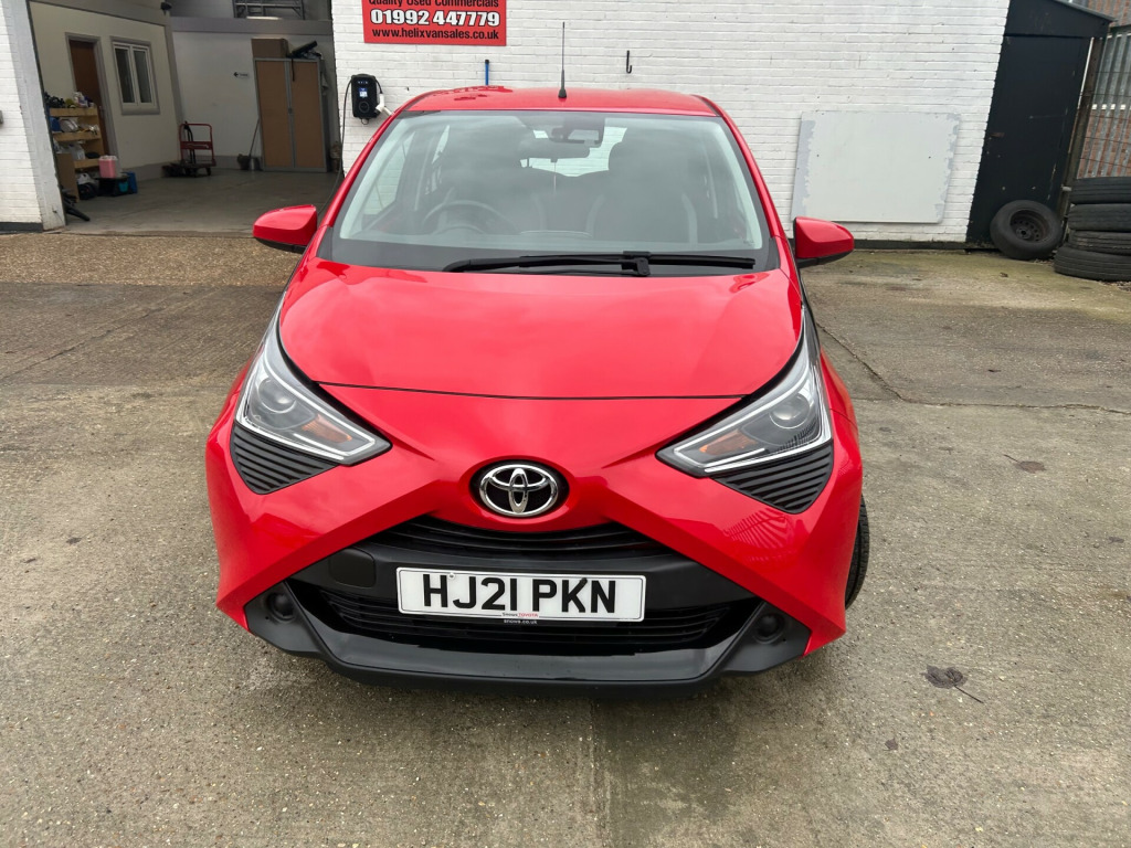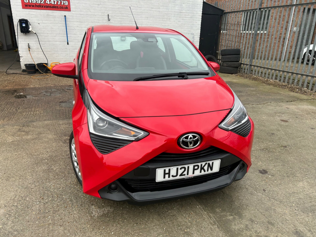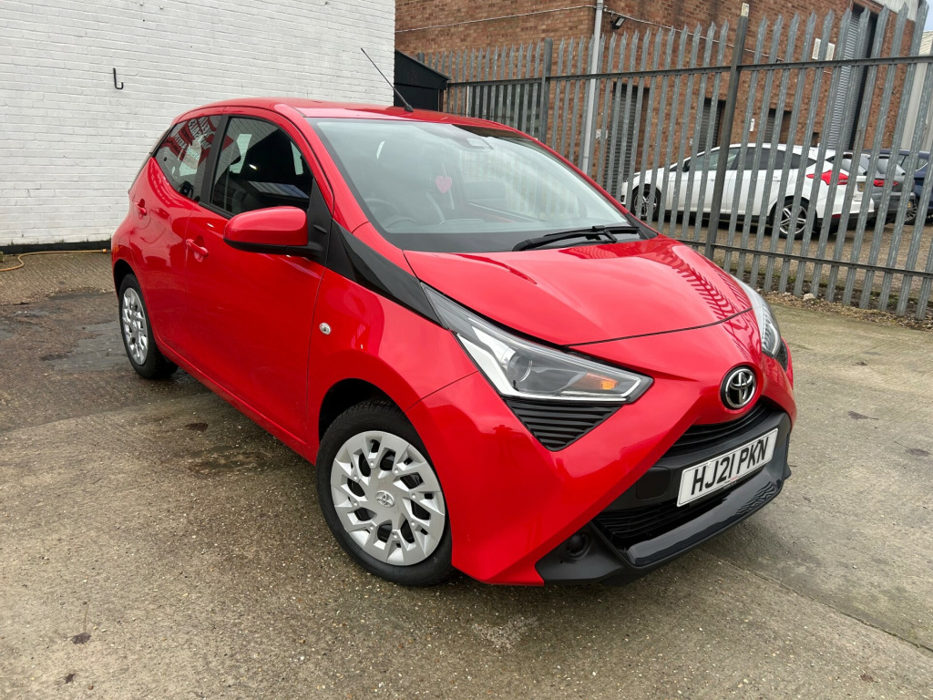 oyota AYGO 1.0 VVT-i x-play 2021 (21) ULEZ CompliantMileage: 26,000 milesColour: RedFuel: PetrolTransmission: ManualOwners: 3This 2021 Toyota AYGO x-play is a smart, economical hatchback that's ideal for city driving and new drivers alike. Powered by Toyota's reliable 1.0 VVT-i petrol engine (71 ps), it delivers excellent fuel efficiency while remaining cheap to run and insure.The car benefits from a full service history and will be supplied with 12 months MOT for complete peace of mind. As a Euro 6 / ULEZ-compliant vehicle, it's perfect for driving in low-emission zones without extra charges.Key Features:Toyota Safety SenseTouchscreen infotainment systemBluetooth connectivityAir conditioningReversing cameraLane departure alertPre-collision systemElectric windowsISOFIX child seat pointsA well-maintained, modern hatchback with low mileage and strong reliability credentials. Enquire today to arrange a viewing or test drive. in steel wheels, chrome interior door handles, door handles - body coloured, door mirrors - body colour, electric front windows, electrically adjustable heated door mirrors, integrated rear spoiler, rear window demister, space saver spare wheel, 3-spoke leather steering wheel, 4 seat capacity, body coloured side air vent surround, chrome insert on gear shift, clean air filter, cupholder - front and rear, glovebox, leather gear shift, manual air conditioning, manual rear view mirror, manual tilt steering wheel, rear headrests x2, recline and slide adjustment - driver and front passengers, seats - 50-50 split folding rear, seats - drivers height adjustment, steering wheel - audio and telephone controls, storage - front door pockets, storage - rear door pockets, storage pocket in central console, tonneau cover, unique design air vents with colour surround, vanity mirror on driver and passengers sun visor, 7in x-touch multimedia system, dab digital radio, front 12v power outlet, smartphone integration - powered by pioneer, usb and aux connection, abs - anti lock braking system, emergency brake-light signal - ebs - hazard type, force limiters on rear seatbelts, front passenger airbag on-off switch, front seat belt reminder, hac - hill start assist control, isofix fixing points, rear seat belt reminder, seat belt - pre-tensioners and force limiters, supplemental restraint system - srs - airbags - 6 airbags, toyota safety sense, vsc - vehicle stability control, daytime running lights - led and rear leds, headlights - electronic levelling, led rear brake lights, projector halogen headlight with led tracer lights, electric power steering - eps, reversing camera, tyre pressure warning system
