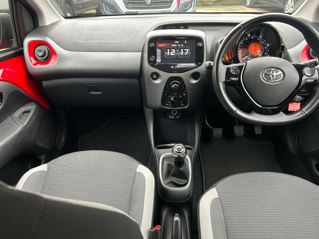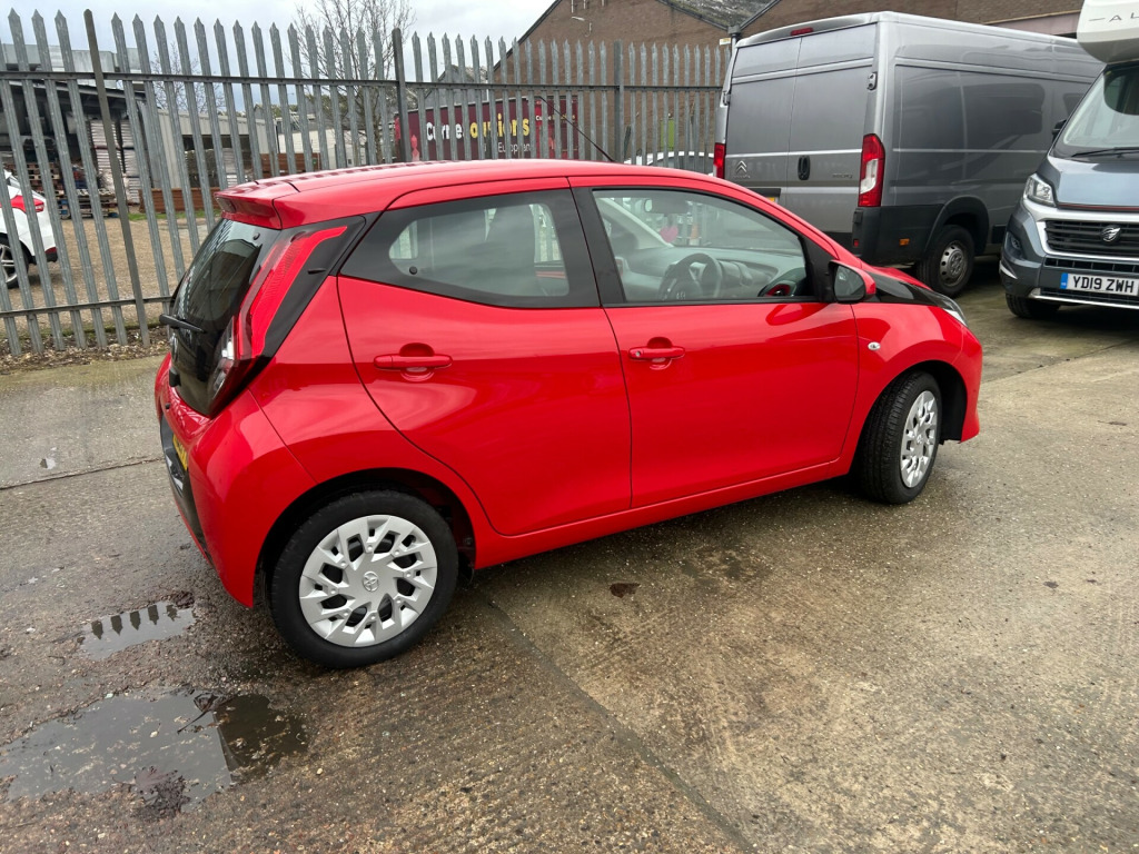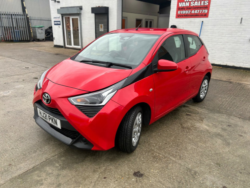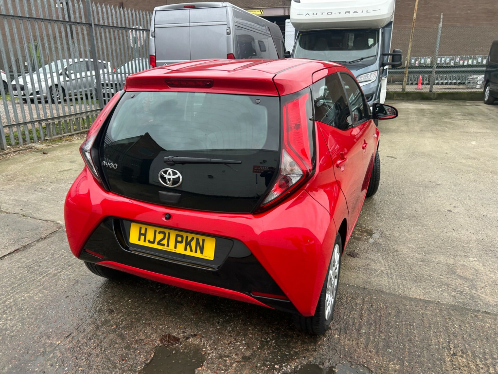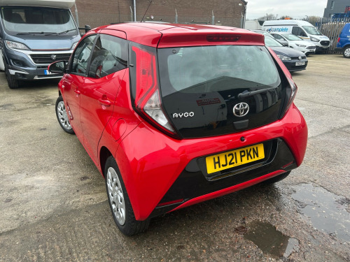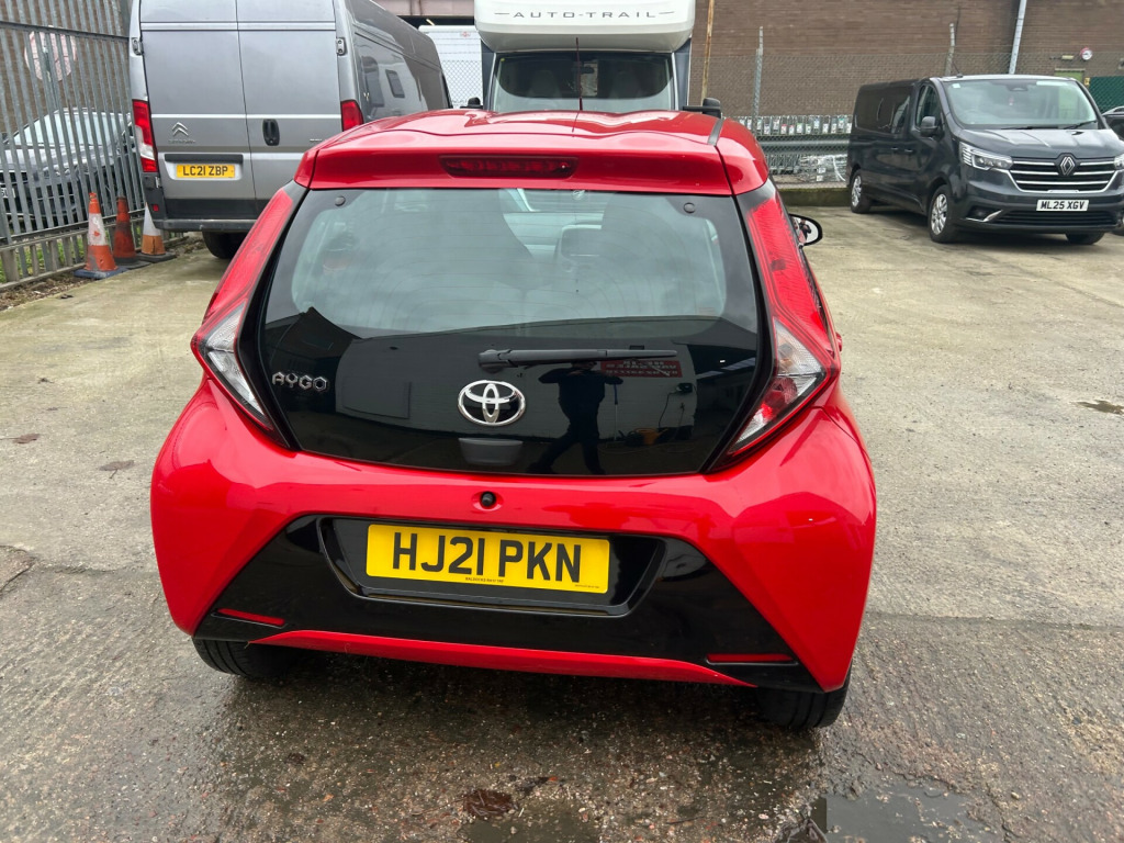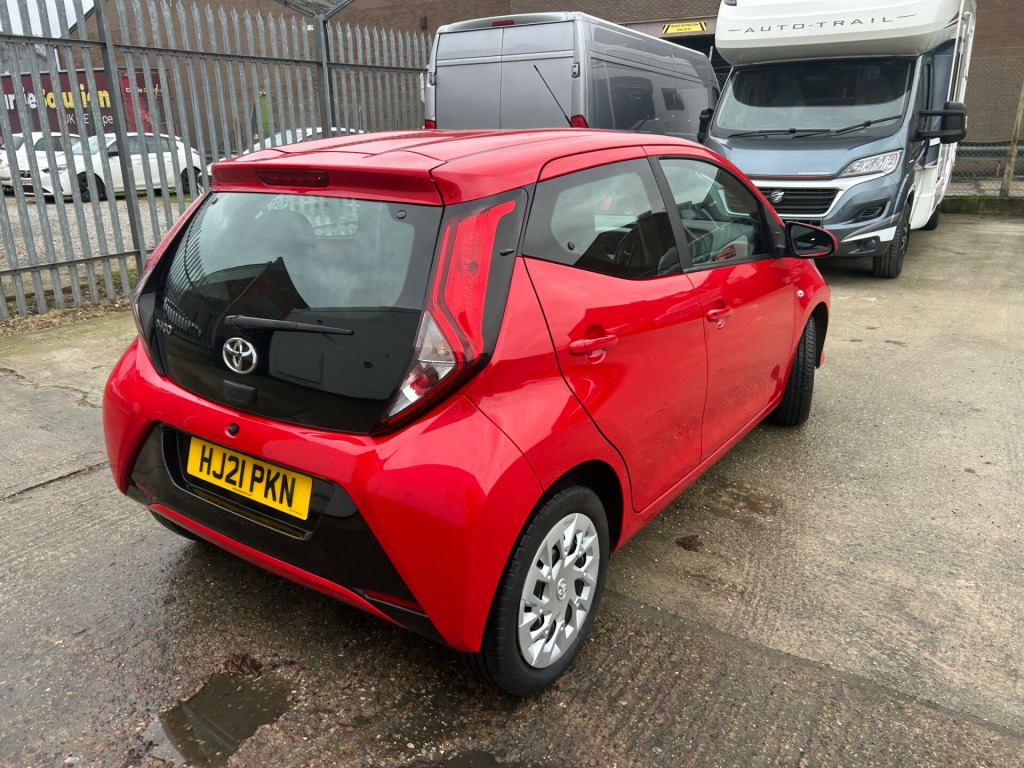 oyota AYGO 1.0 VVT-i x-play 2021 (21) ULEZ CompliantMileage: 26,000 milesColour: RedFuel: PetrolTransmission: ManualOwners: 3This 2021 Toyota AYGO x-play is a smart, economical hatchback that's ideal for city driving and new drivers alike. Powered by Toyota's reliable 1.0 VVT-i petrol engine (71 ps), it delivers excellent fuel efficiency while remaining cheap to run and insure.The car benefits from a full service history and will be supplied with 12 months MOT for complete peace of mind. As a Euro 6 / ULEZ-compliant vehicle, it's perfect for driving in low-emission zones without extra charges.Key Features:Toyota Safety SenseTouchscreen infotainment systemBluetooth connectivityAir conditioningReversing cameraLane departure alertPre-collision systemElectric windowsISOFIX child seat pointsA well-maintained, modern hatchback with low mileage and strong reliability credentials. Enquire today to arrange a viewing or test drive. in steel wheels, chrome interior door handles, door handles - body coloured, door mirrors - body colour, electric front windows, electrically adjustable heated door mirrors, integrated rear spoiler, rear window demister, space saver spare wheel, 3-spoke leather steering wheel, 4 seat capacity, body coloured side air vent surround, chrome insert on gear shift, clean air filter, cupholder - front and rear, glovebox, leather gear shift, manual air conditioning, manual rear view mirror, manual tilt steering wheel, rear headrests x2, recline and slide adjustment - driver and front passengers, seats - 50-50 split folding rear, seats - drivers height adjustment, steering wheel - audio and telephone controls, storage - front door pockets, storage - rear door pockets, storage pocket in central console, tonneau cover, unique design air vents with colour surround, vanity mirror on driver and passengers sun visor, 7in x-touch multimedia system, dab digital radio, front 12v power outlet, smartphone integration - powered by pioneer, usb and aux connection, abs - anti lock braking system, emergency brake-light signal - ebs - hazard type, force limiters on rear seatbelts, front passenger airbag on-off switch, front seat belt reminder, hac - hill start assist control, isofix fixing points, rear seat belt reminder, seat belt - pre-tensioners and force limiters, supplemental restraint system - srs - airbags - 6 airbags, toyota safety sense, vsc - vehicle stability control, daytime running lights - led and rear leds, headlights - electronic levelling, led rear brake lights, projector halogen headlight with led tracer lights, electric power steering - eps, reversing camera, tyre pressure warning system