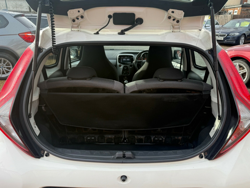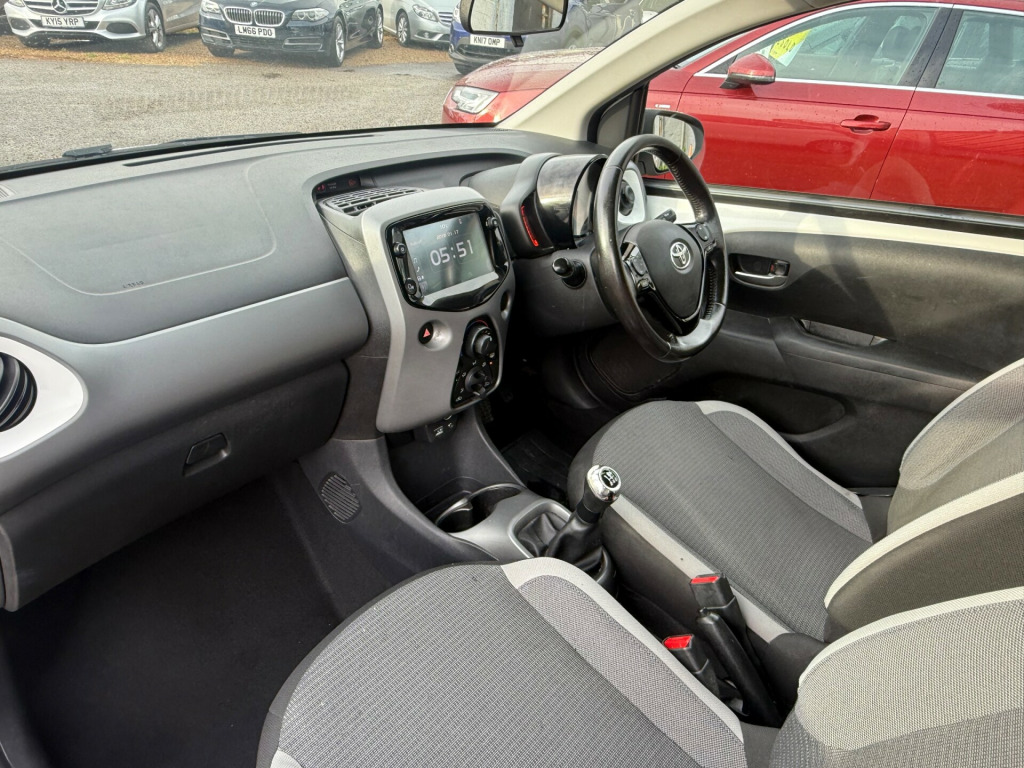 Sussex Vehicle Solutions Ltd are delighted to present this Toyota Aygo 1.0 VVT-i x-play Hatchback 5dr (Safety Sense). Across all our stock, we ensure servicing is up to date, that there is at least 6 months MOT remaining, and we provide warranty options of 3/6/12 months. As an AA Approved dealership, all vehicles come with 12 months AA breakdown cover free of charge. We can offer bespoke finance packages to suit all deal sizes and credit profiles, with rates starting from 8.9% APR. Sussex Vehicle Solutions is a family run business and we pride ourselves on giving excellent customer service in a pressure-free environment. If you have any questions, please do not hesitate to get in touch. in steel wheels, chrome interior door handles, door handles - body coloured, door mirrors - body colour, electric front windows, electrically adjustable heated door mirrors, integrated rear spoiler, rear window demister, space saver spare wheel, 3-spoke leather steering wheel, 4 seat capacity, body coloured side air vent surround, chrome insert on gear shift, clean air filter, cupholder - front and rear, glovebox, leather gear shift, manual air conditioning, manual rear view mirror, manual tilt steering wheel, rear headrests x2, recline and slide adjustment - driver and front passengers, seats - 50-50 split folding rear, seats - drivers height adjustment, steering wheel - audio and telephone controls, storage - front door pockets, storage - rear door pockets, storage pocket in central console, tonneau cover, unique design air vents with colour surround, vanity mirror on driver and passengers sun visor, 7in x-touch multimedia system, dab digital radio, front 12v power outlet, smartphone integration - powered by pioneer, usb and aux connection, abs - anti lock braking system, emergency brake-light signal - ebs - hazard type, force limiters on rear seatbelts, front passenger airbag on-off switch, front seat belt reminder, hac - hill start assist control, isofix fixing points, rear seat belt reminder, seat belt - pre-tensioners and force limiters, supplemental restraint system - srs - airbags - 6 airbags, toyota safety sense, vsc - vehicle stability control, daytime running lights - led and rear leds, headlights - electronic levelling, led rear brake lights, projector halogen headlight with led tracer lights, electric power steering - eps, reversing camera, tyre pressure warning system